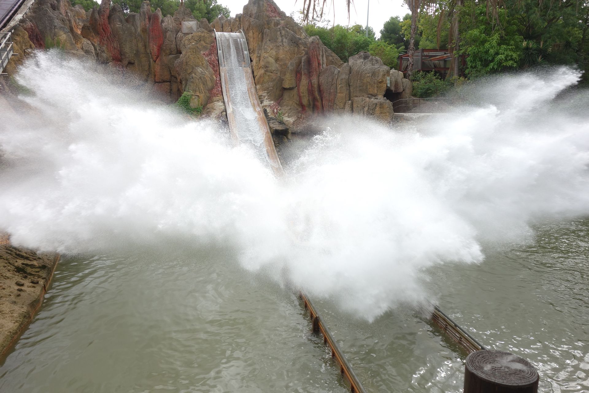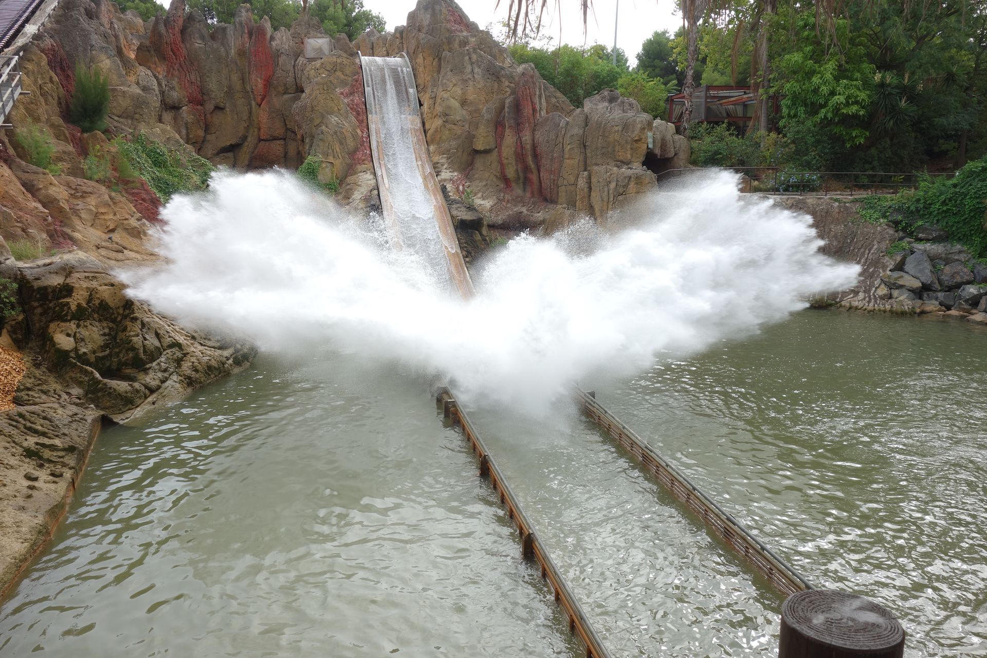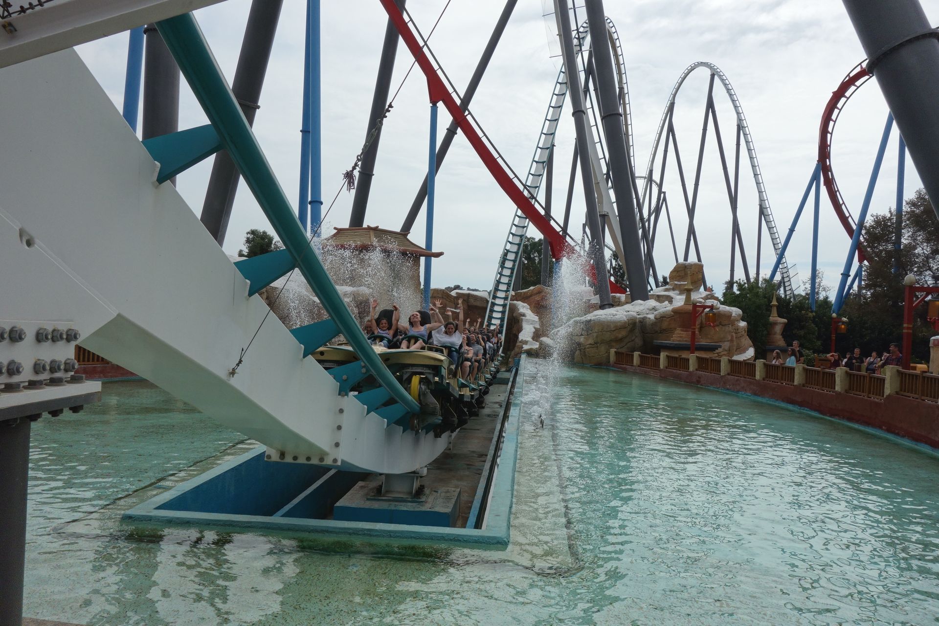 Unter den First Drops der beiden B&Ms hindurch nähert sich die Strecke einem kleinen See, der mit einem externen Splash-Effekt versehen wurde.