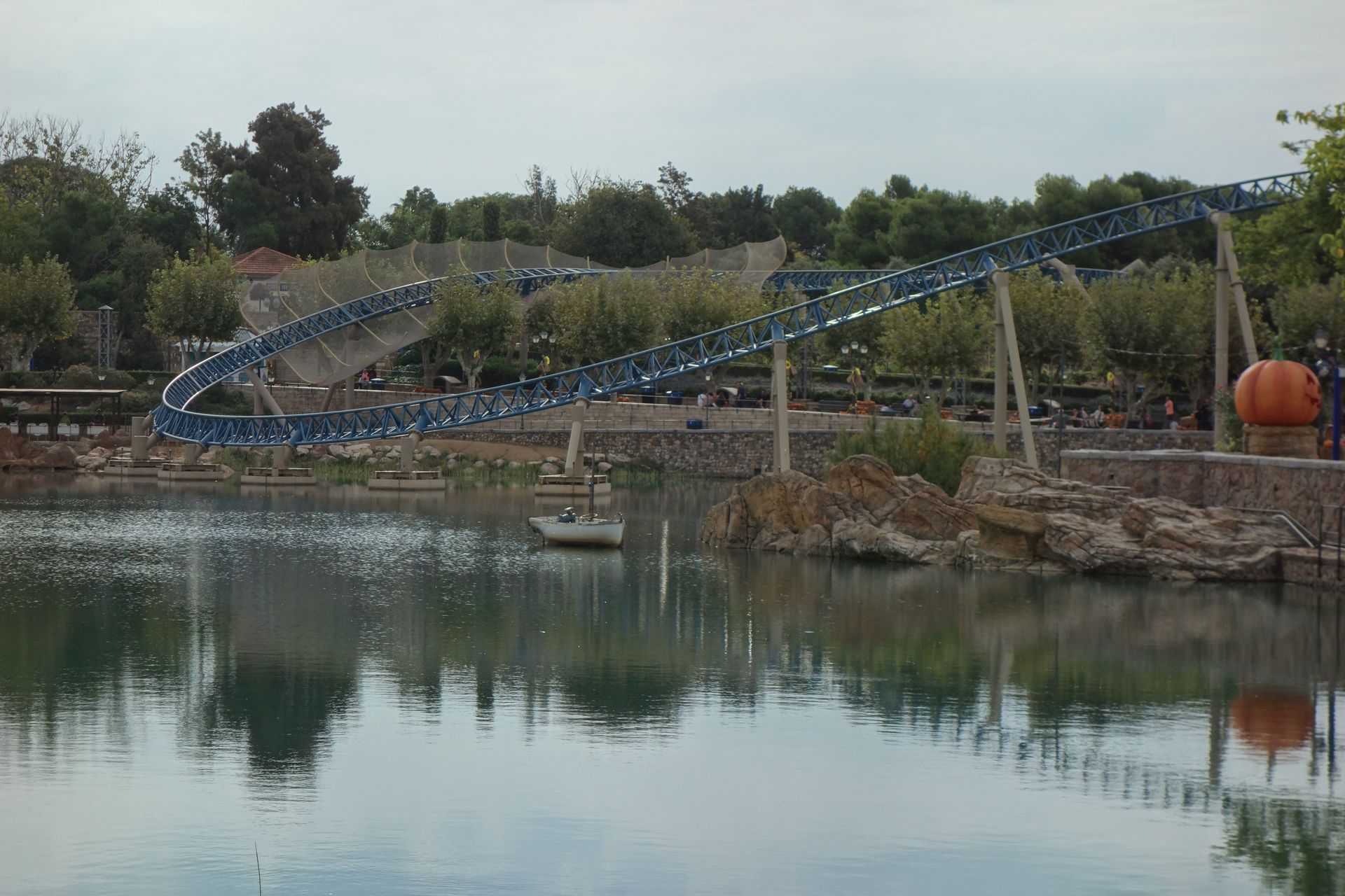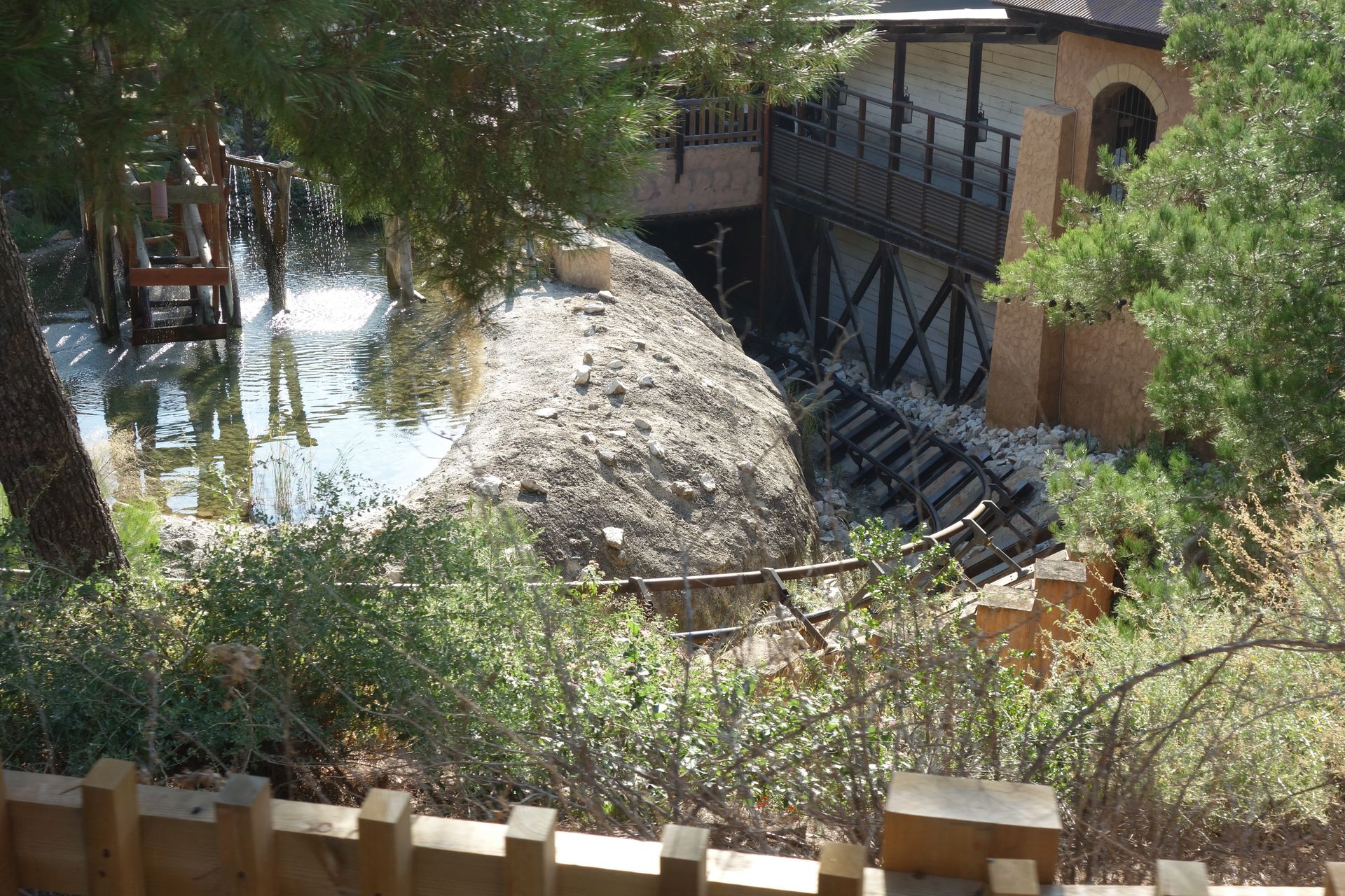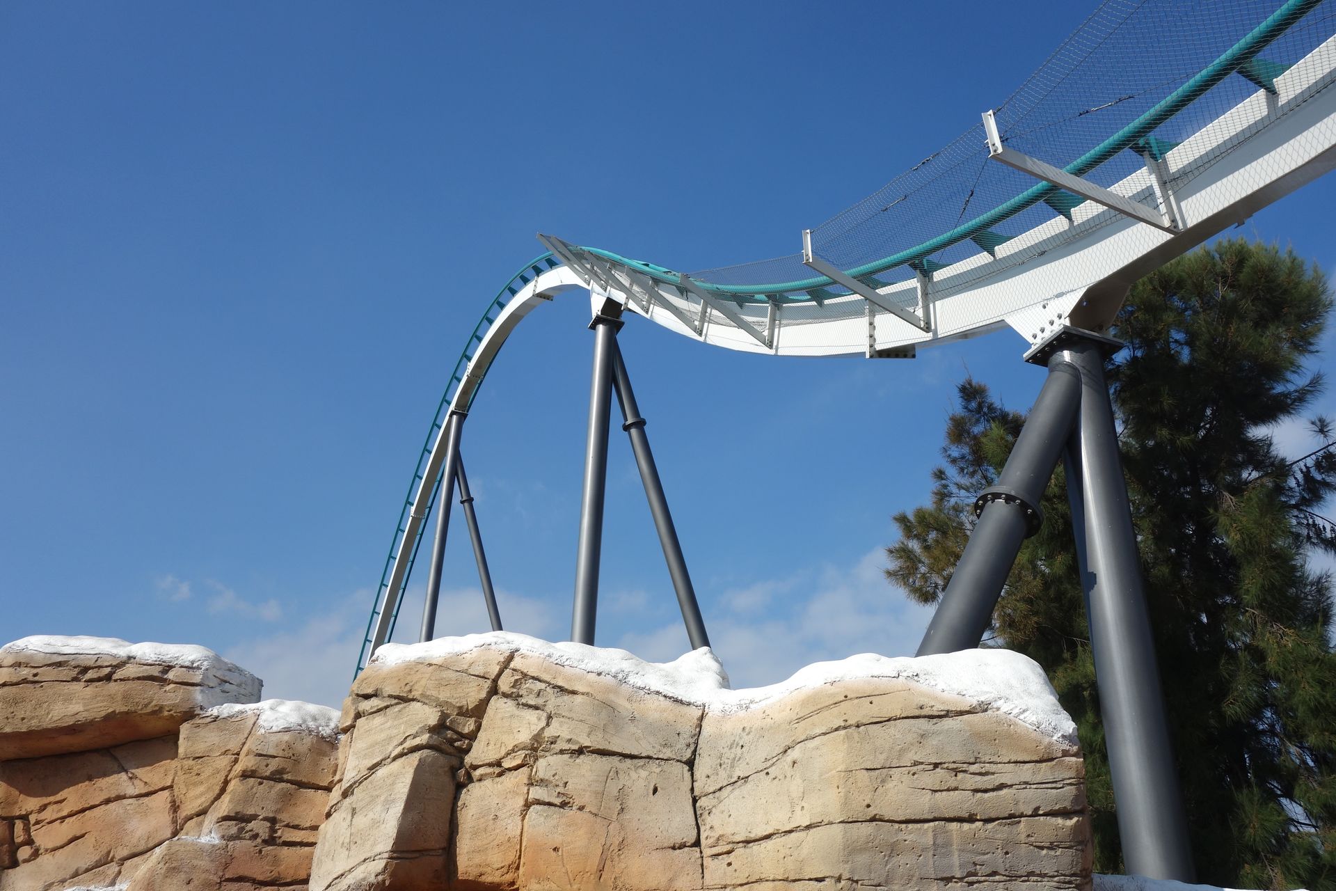 Unter den First Drops der beiden B&Ms hindurch nähert sich die Strecke einem kleinen See, der mit einem externen Splash-Effekt versehen wurde.