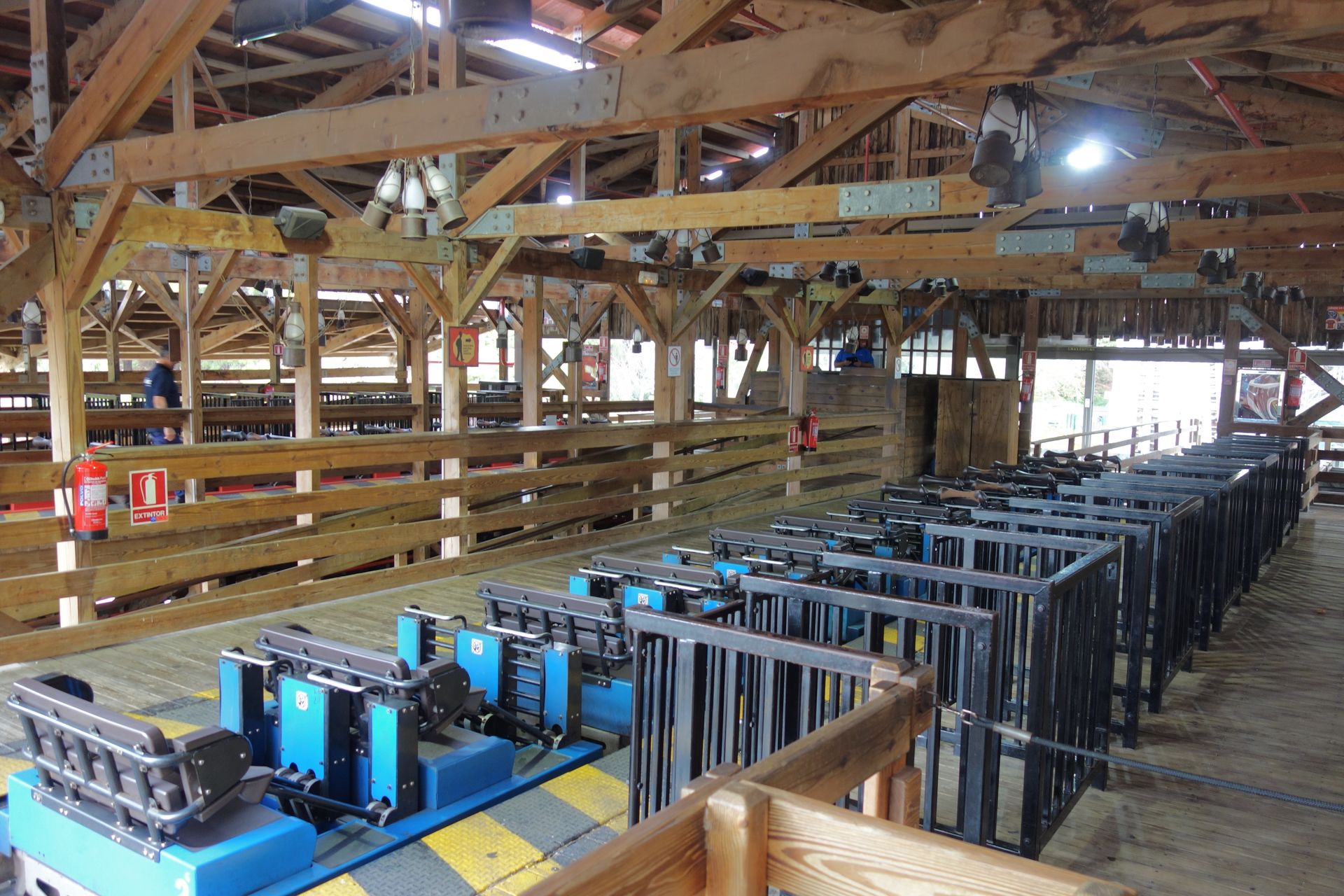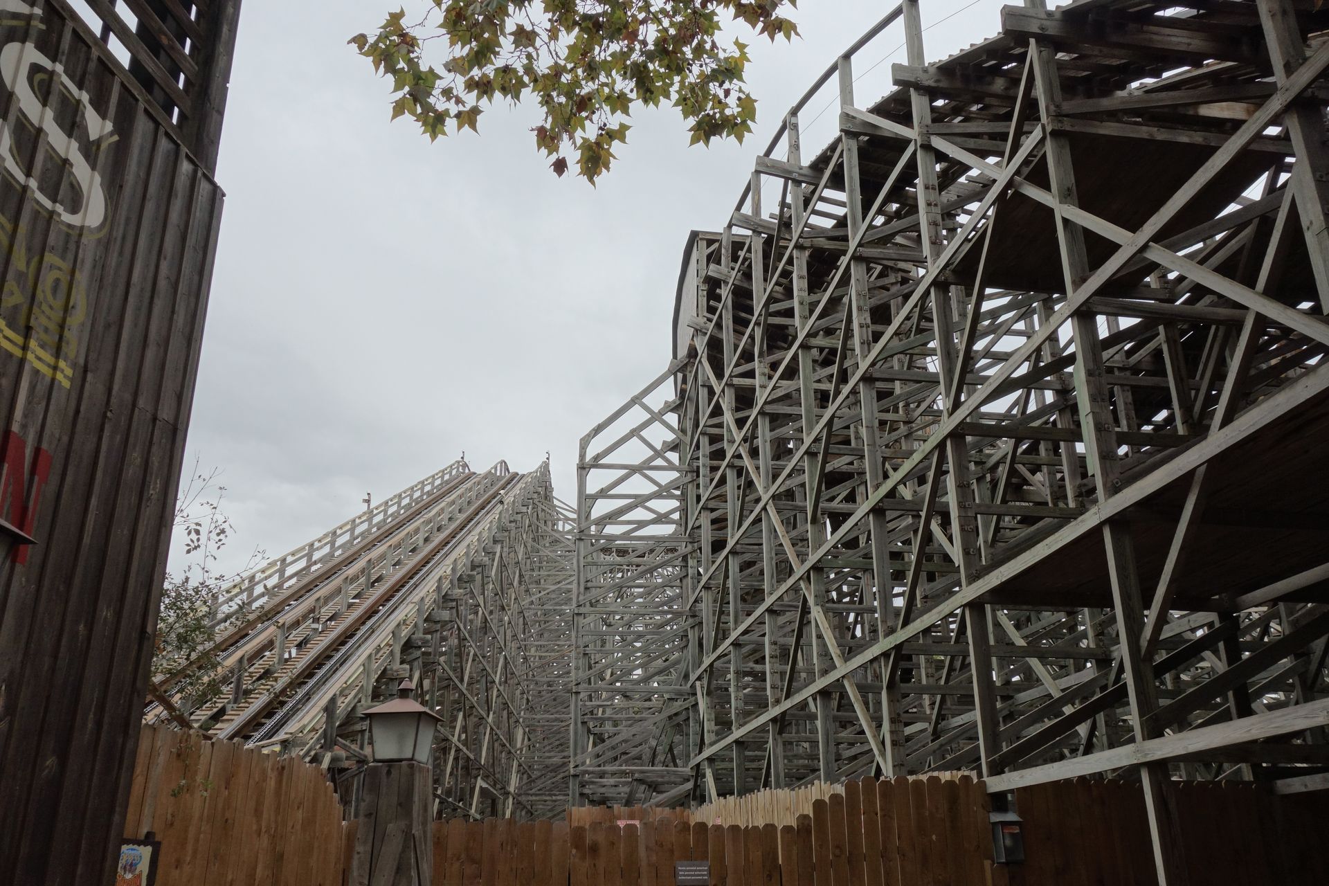Die kleinere Holzachterbahn Tomahawk hatten wir ja in der Dunkelheit schon abgehakt, nun fanden wir auch den Zugang zum Racing-Woodie Stampida.