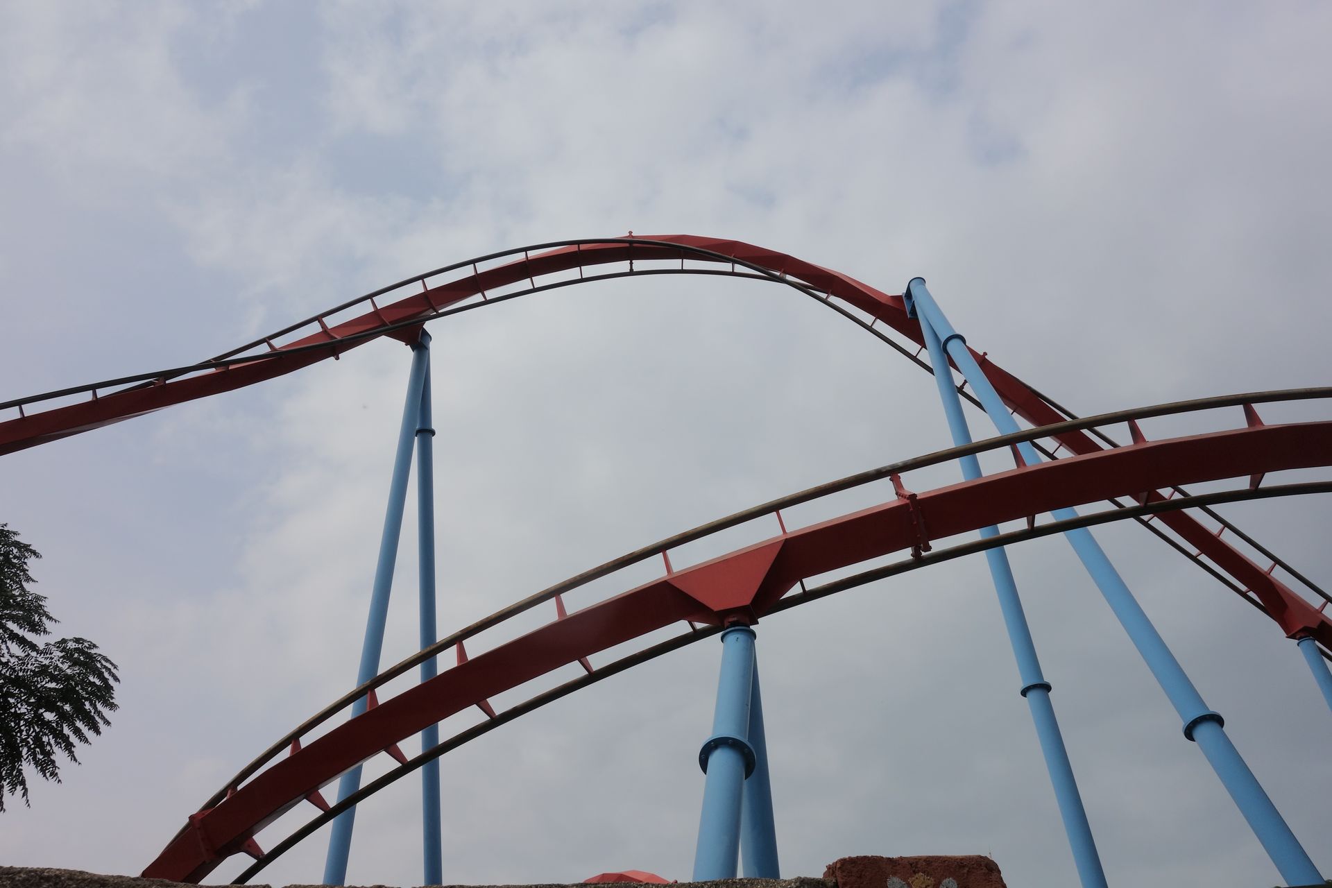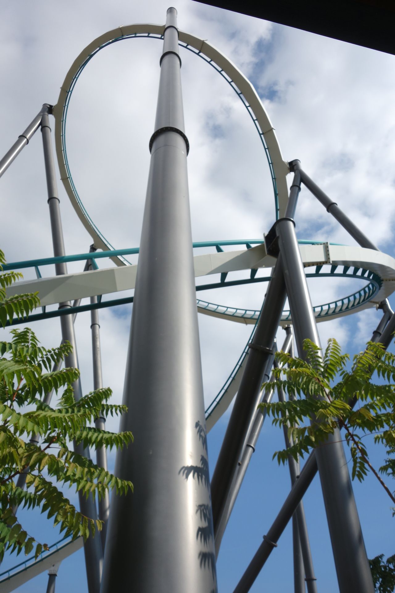 Mit einer leichten Kurve taucht man unter dem ersten Looping hindurch zum zweiten klassischen Looping.