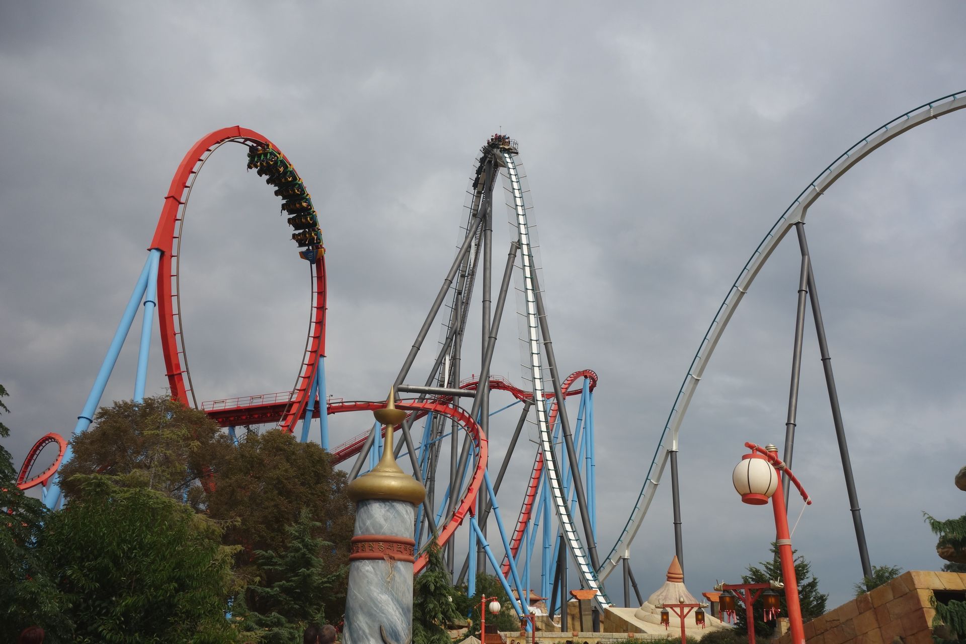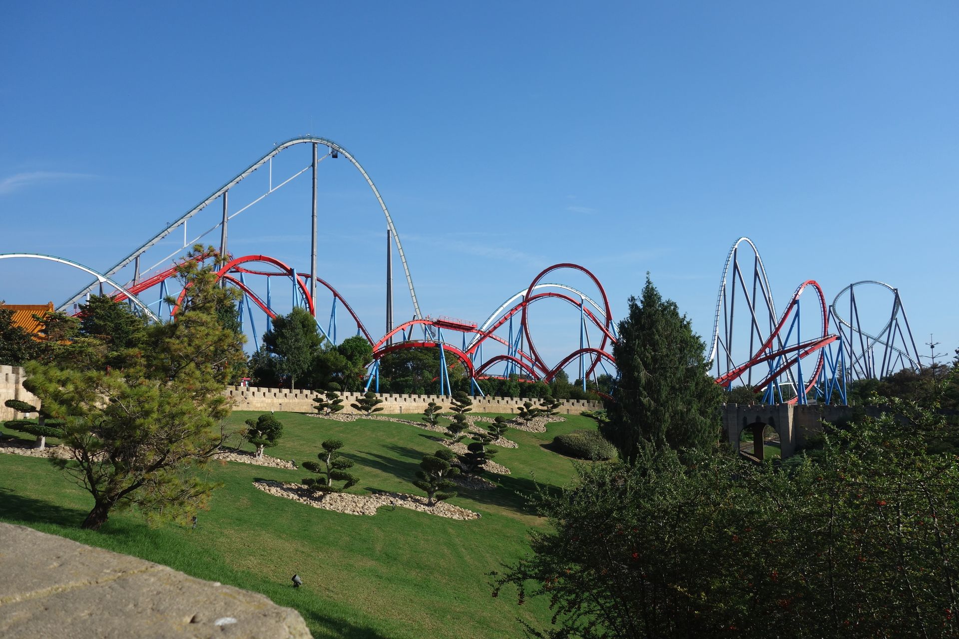 Über die Chinesische Mauer gingen wir weiter nach China zu den beiden größten Achterbahnen von PortAventura.