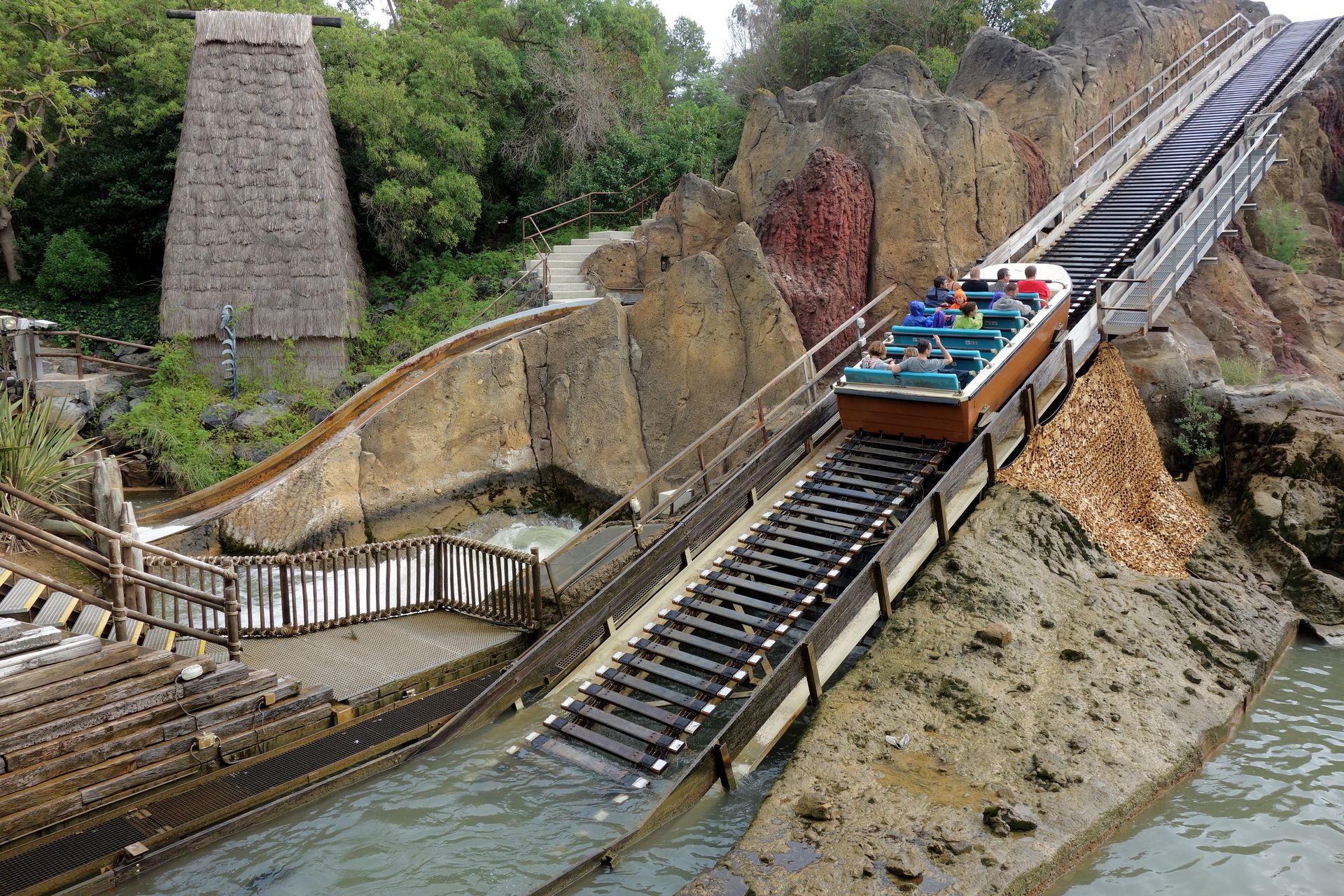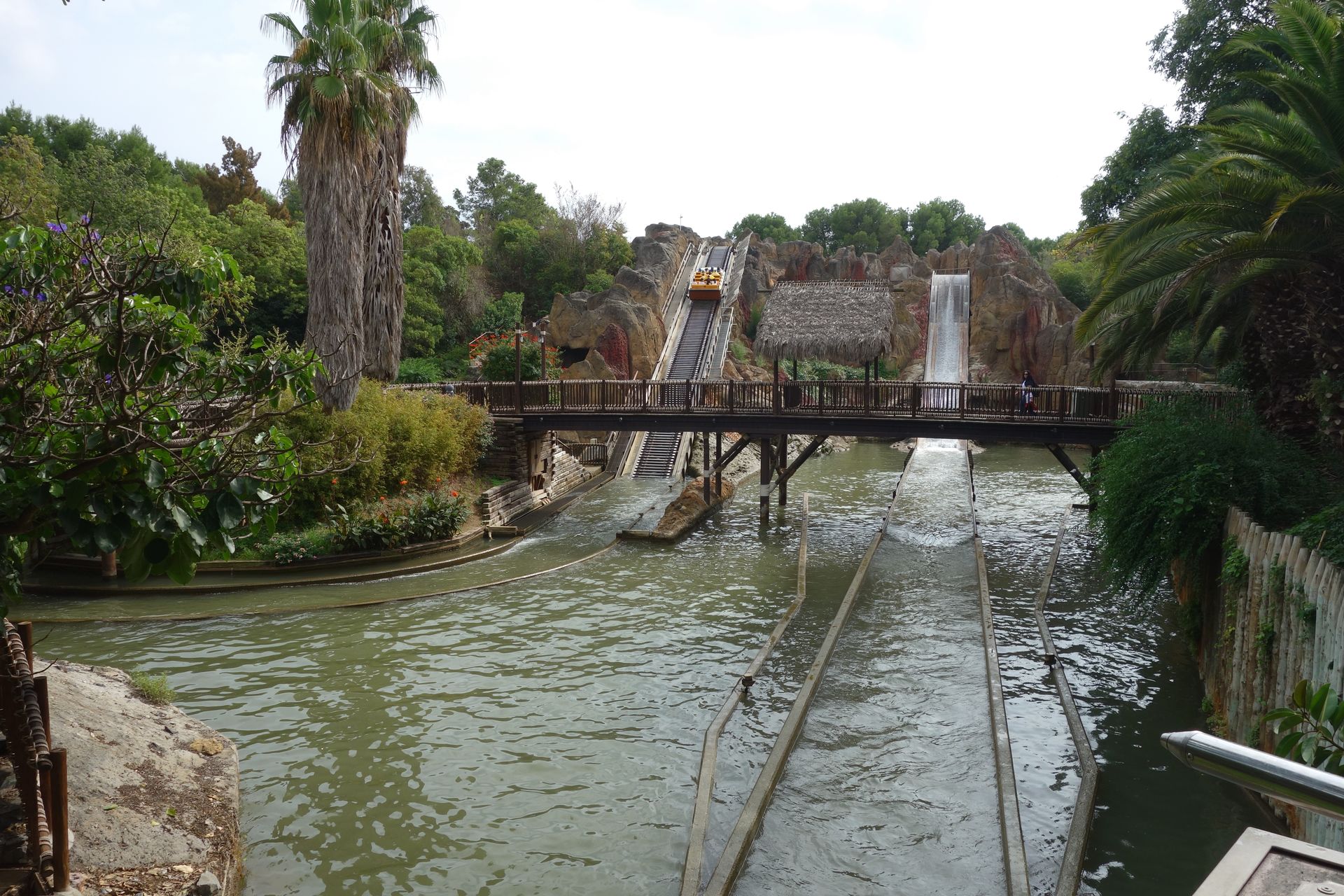 Wir sparten uns das Geld aber und gingen weiter zum Tutuki Splash. Ein Shoot-the-Chutes von Intamin, eröffnet 1996.