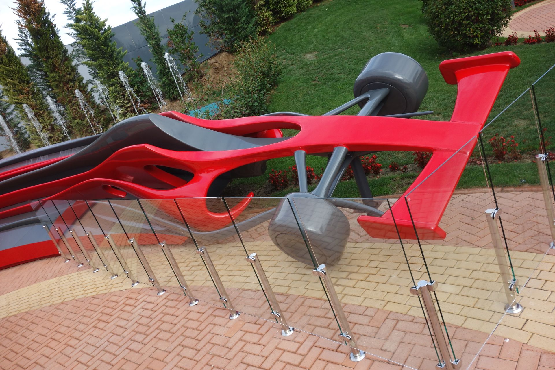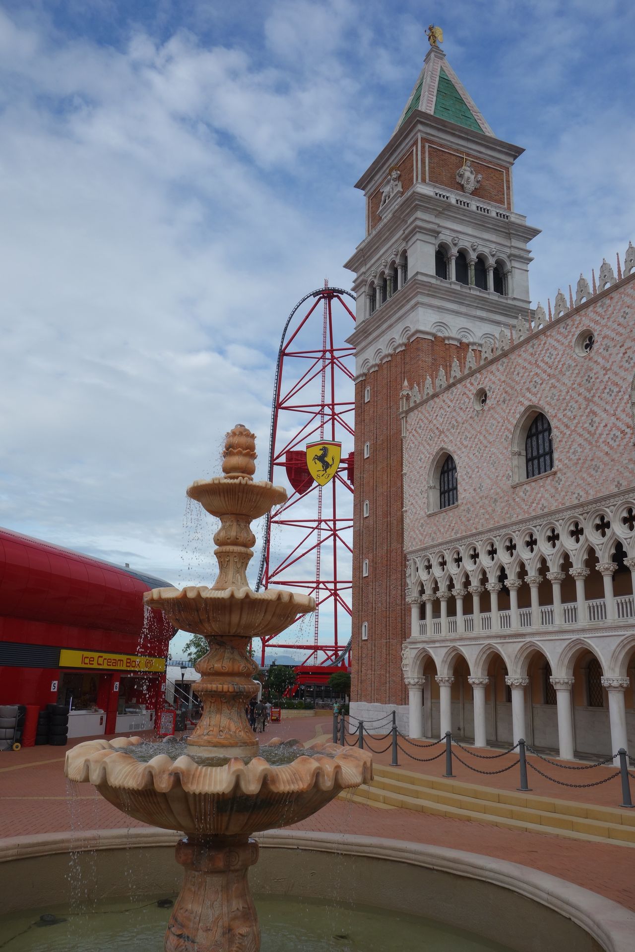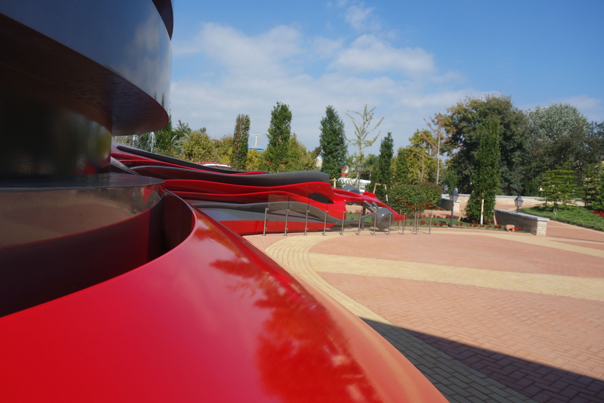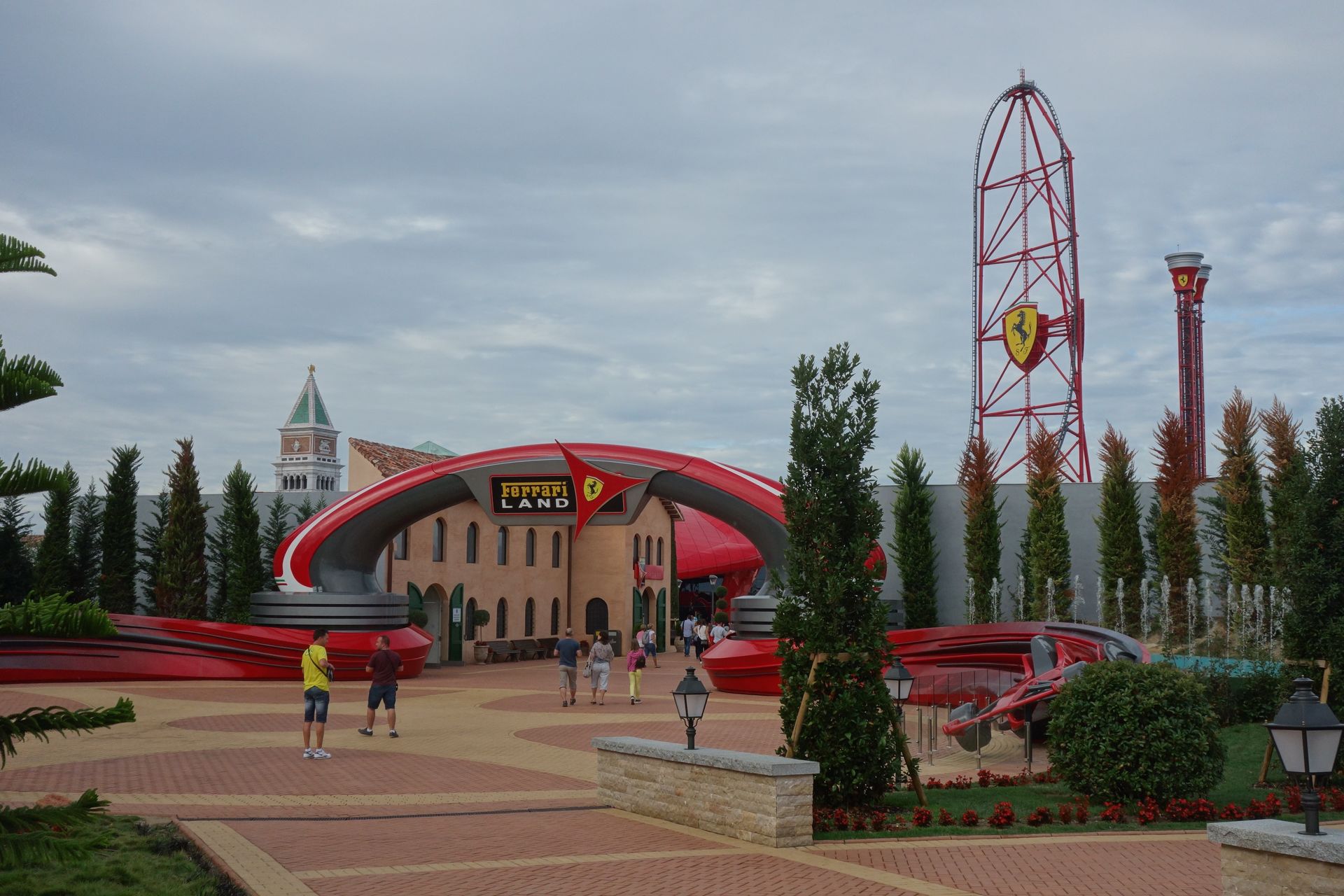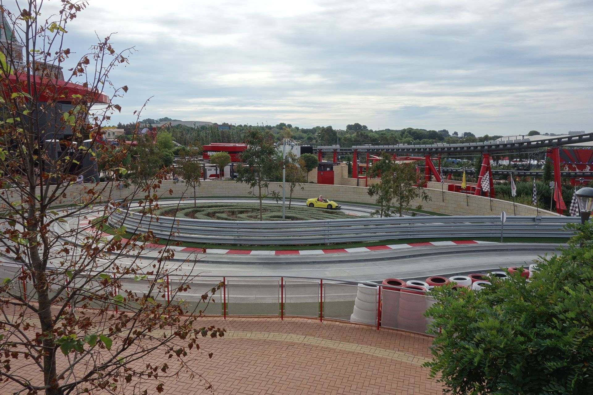 Fazit: Das Ferrari Land hatte im Vorfeld etwas in der Kritik gestanden, weil es vom Angebot eigentlich nur ein etwas ausgeprägterer Themenbereich ist. Dass die Eintrittspreise für Hotelgäste im Laufe des Jahres drastisch gesenkt wurden, lässt vermuten, dass auch die normalen Besucher diesen Eindruck hatten. Trotzdem muss ich sagen, dass mir der Park an sich durchaus gefallen hat. Hier und da noch etwas kahl, aber gerade die italienischen Fassaden sind gelungen. Die Mischung mit dem modernen Glastempel und den übrigen rot/ weißen Plastik-Bauten ist dagegen Geschmackssache. Ganz überzeugen konnte mich das nicht. Auch muss man sich natürlich ein bisschen auf die Marke Ferrari einlassen. Wer mit Ferrari oder zumindest Motorsport im Allgemeinen nichts anfangen kann, für den ist der Park eher weniger geeignet. Und mit dem jetzt folgenden Kinderbereich kann man da doch schon fast einen ganzen Tag verbringen. Wir haben uns immerhin fast 5 Stunden dort aufgehalten, wenn auch vorwiegend aufgrund der reduzierten Kapazitäten. Ab etwa 13 Uhr war der Park ja dann wie ausgestorben und man hätte für alles vielleicht höchstens 2 Stunden gebraucht. Meine Empfehlung wäre daher, nicht wie alle anderen am Morgen ins Ferrari Land zu gehen, sondern sich bis zum Nachmittag zu gedulden, wenn der Großteil der Besucher schon wieder im Hauptpark ist.