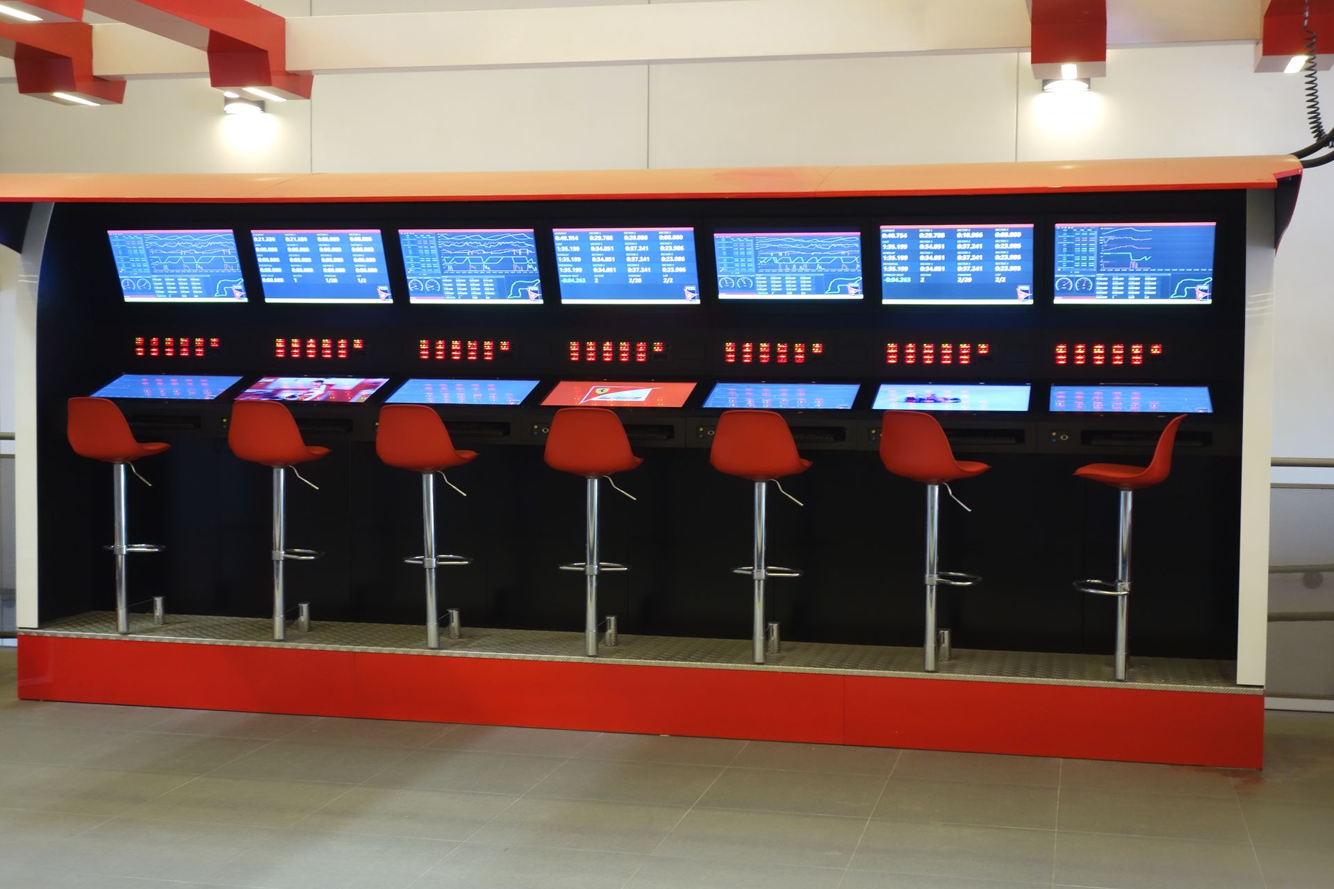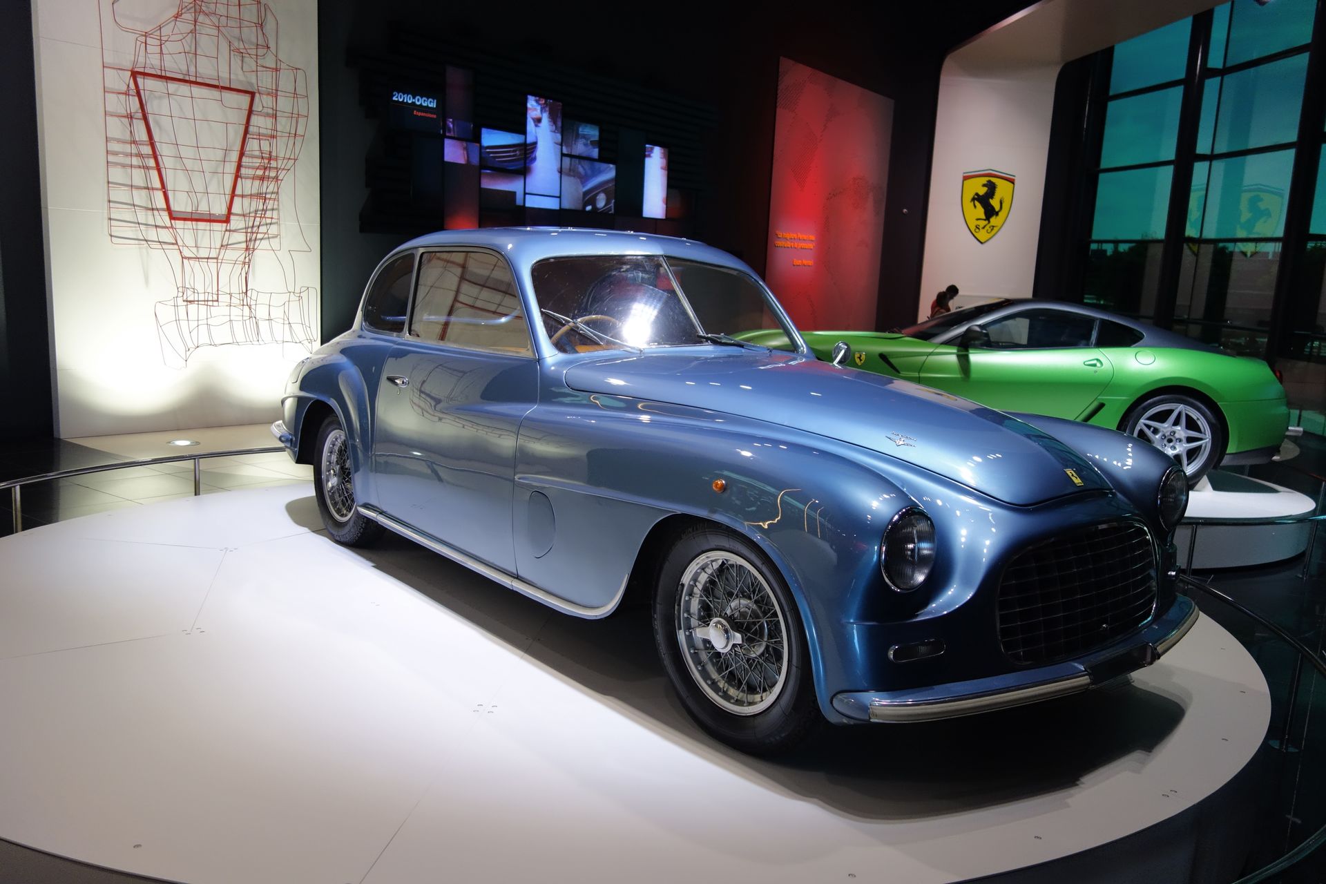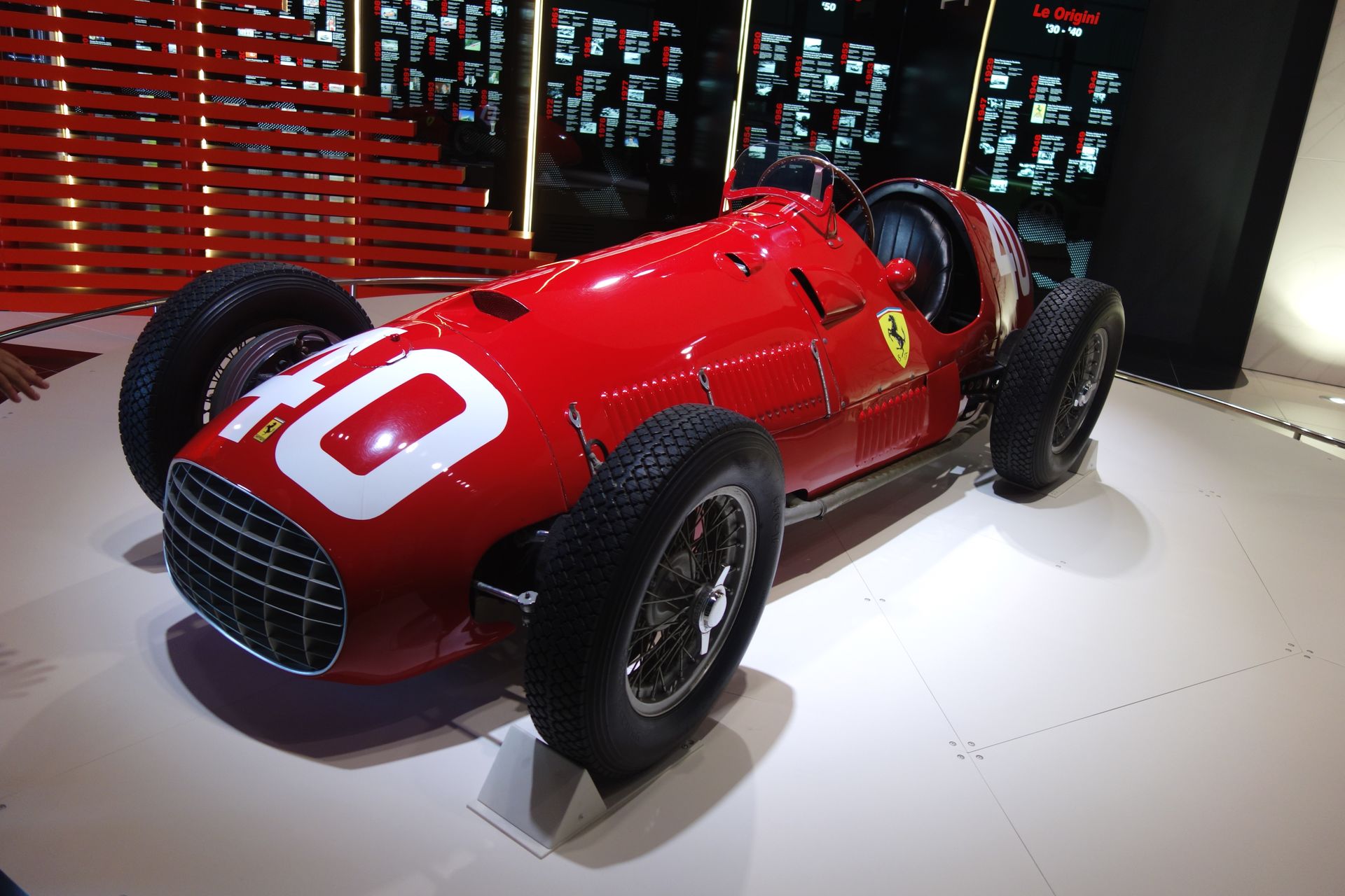 Ansonsten sollen diverse interaktive Bildschirme und mit Texten vollgeschriebene Wände den Mythos Ferrari vermitteln.
