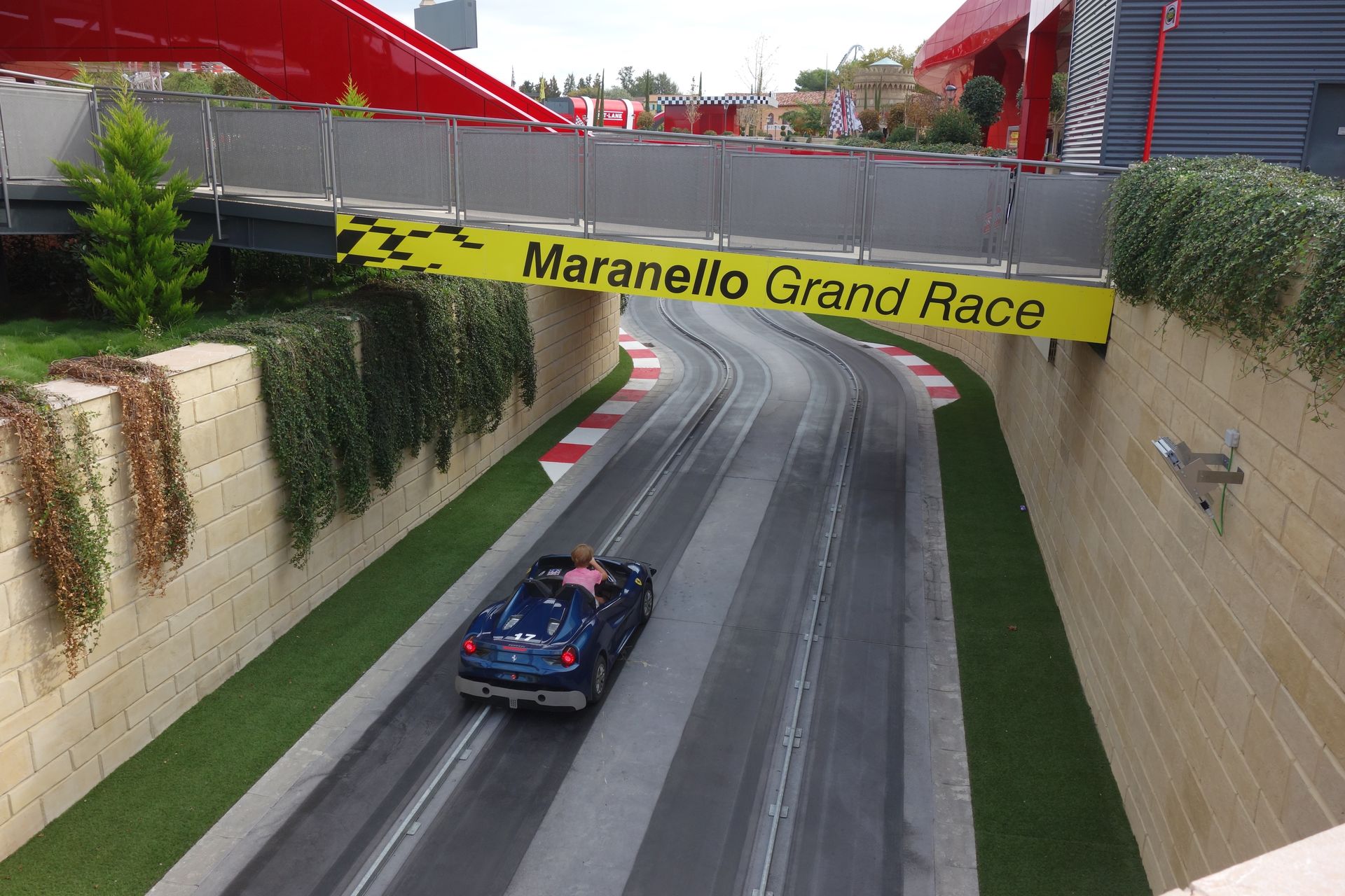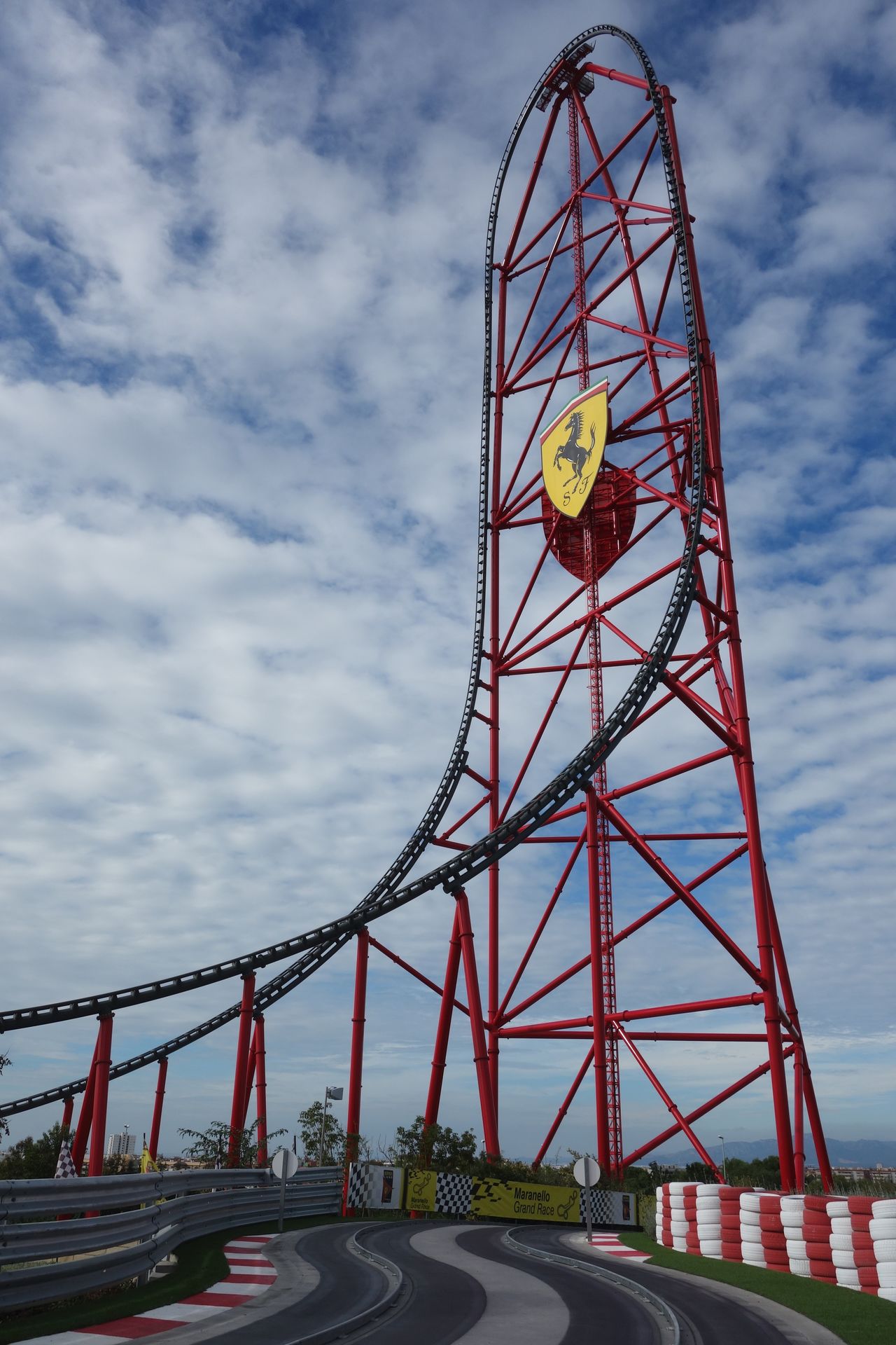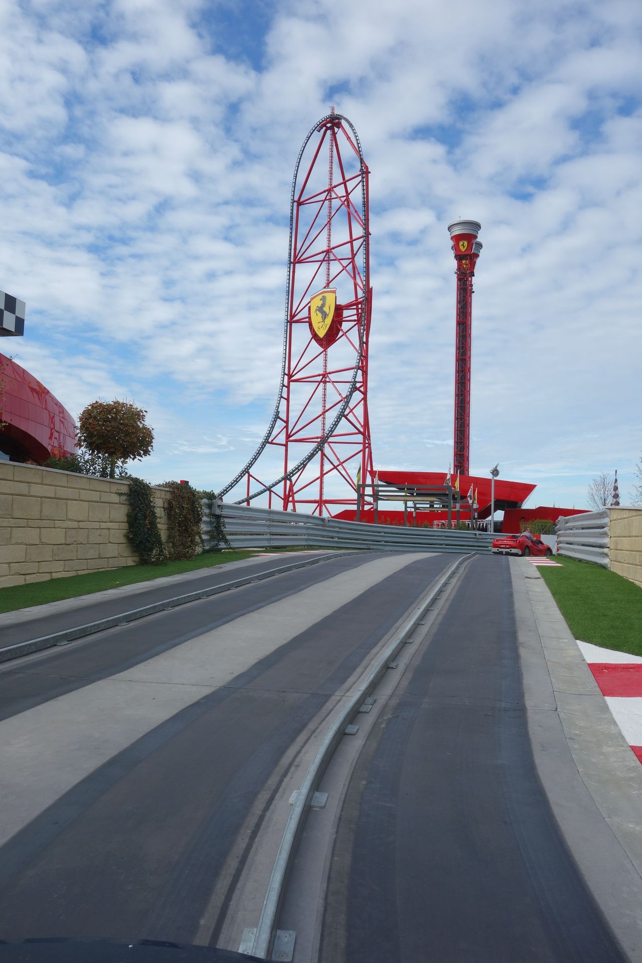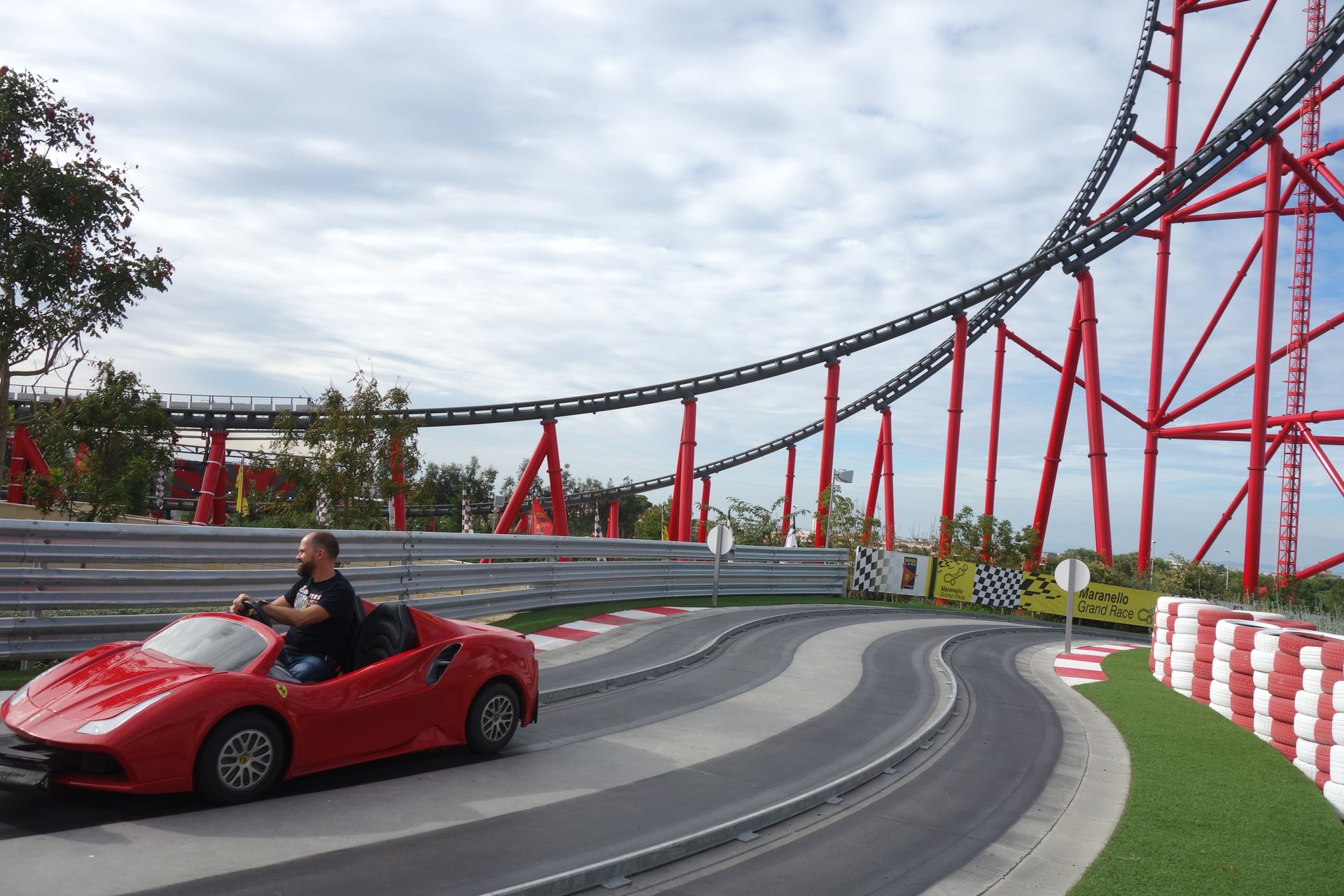 Rund um die Türme am Fuße der Achterbahn windet sich die Strecke des Maranello Grand Race.