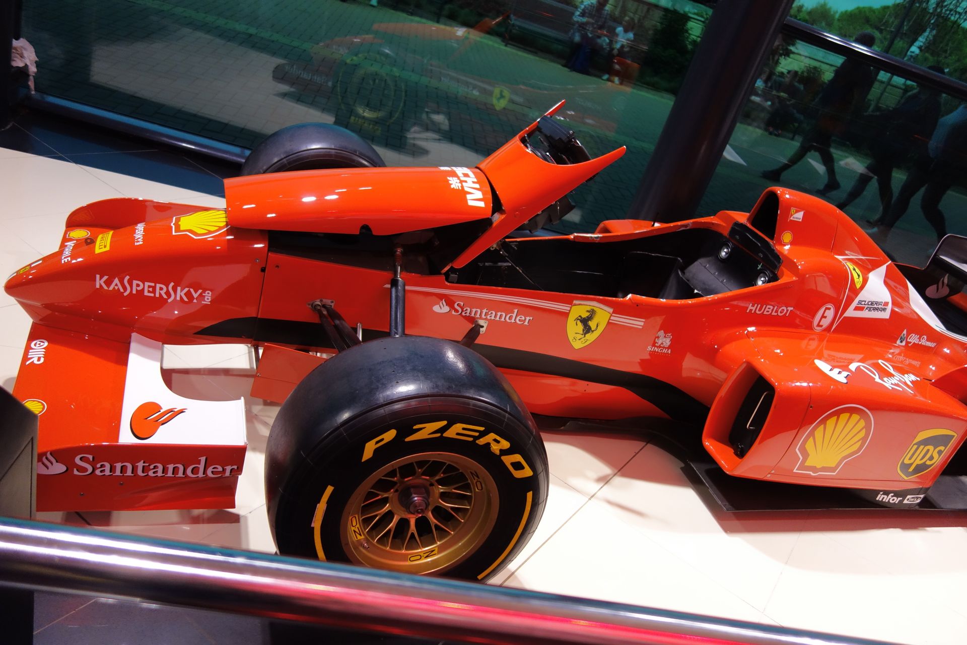 Die übrigen Ferraris hängen als Modelle an der Decke. Aber zu hoch, um sie näher betrachten zu können.