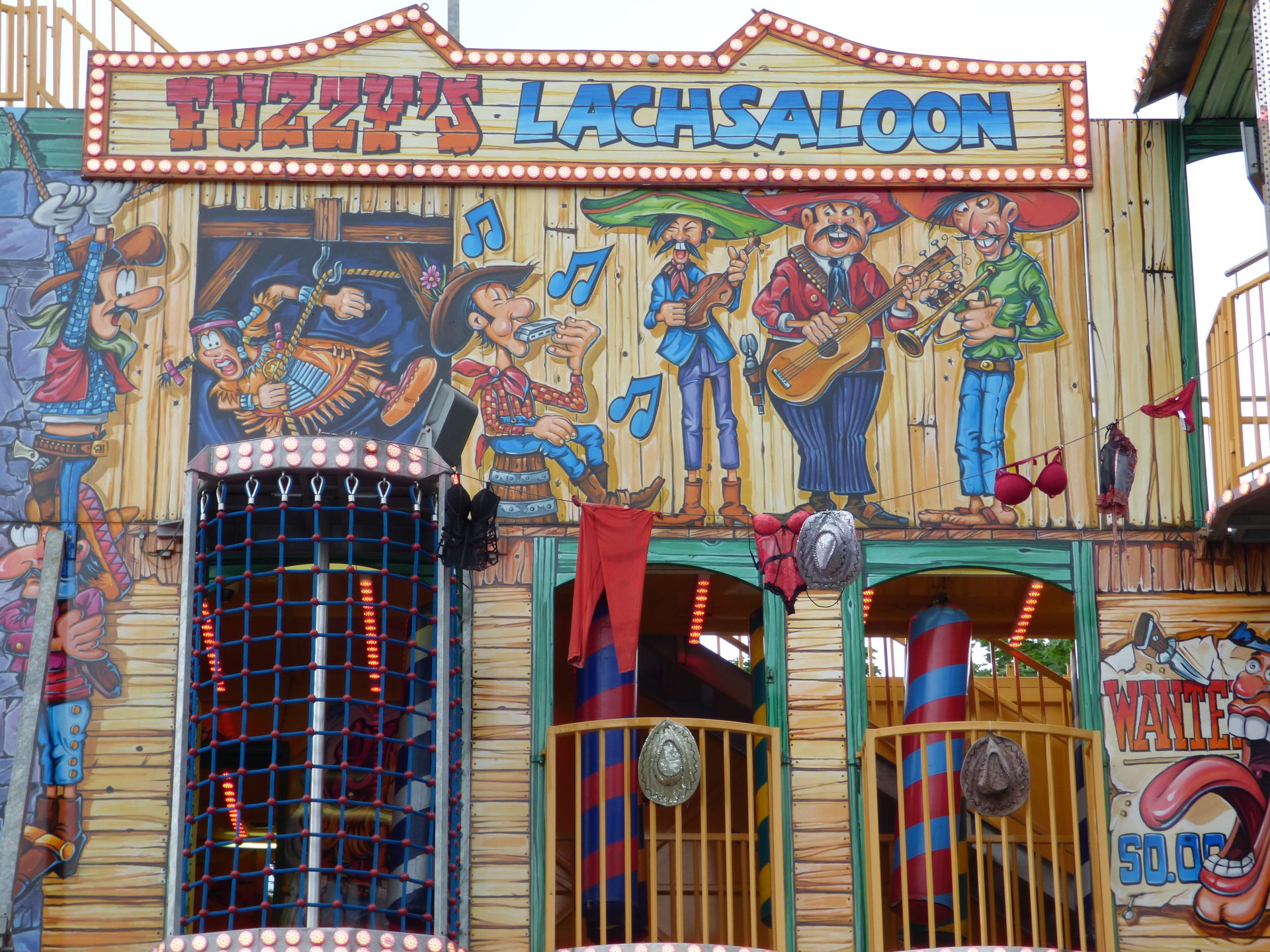 Angekommen auf dem großen Platz war die Freude dann riesengroß, den hier stand Rico Rasch`s Fuzzy's Lach Saloon, ein Premierenbesuch für uns.