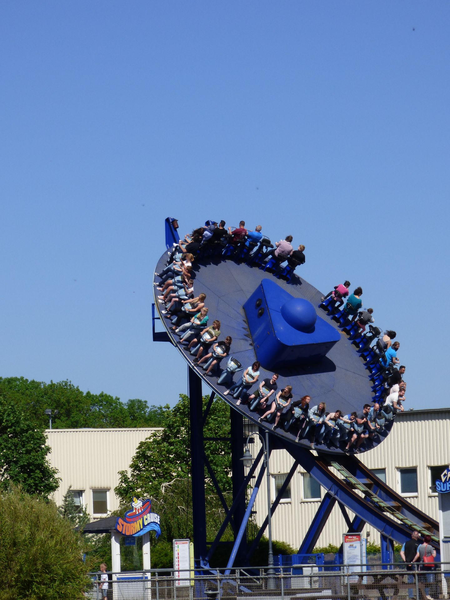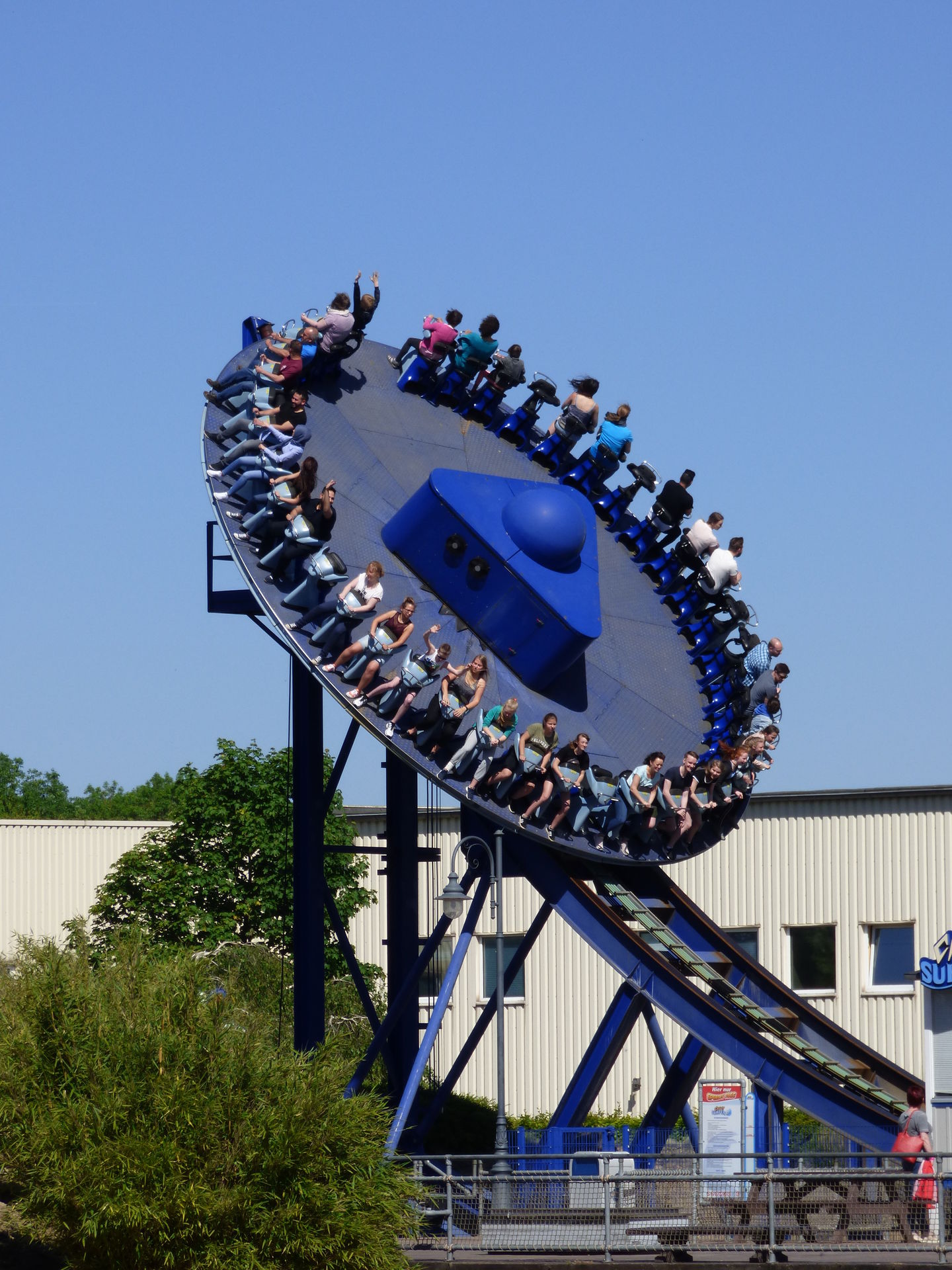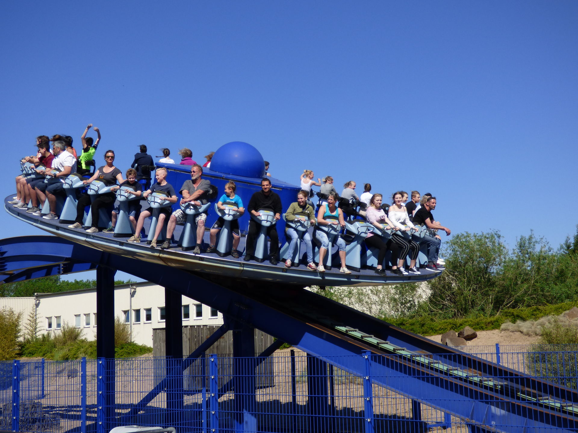 Auf der drehenden Scheibe finden 40 Personen Platz, die dann mit einer Geschwindigkeit von 70 km/h und 9 Umdrehungen pro Minute über die knapp 82 Meter lange Strecke fahren. Die beiden Enden haben eine Höhe von 15,5 Metern, der Hügel in der Mitte misst gute 8 Meter.