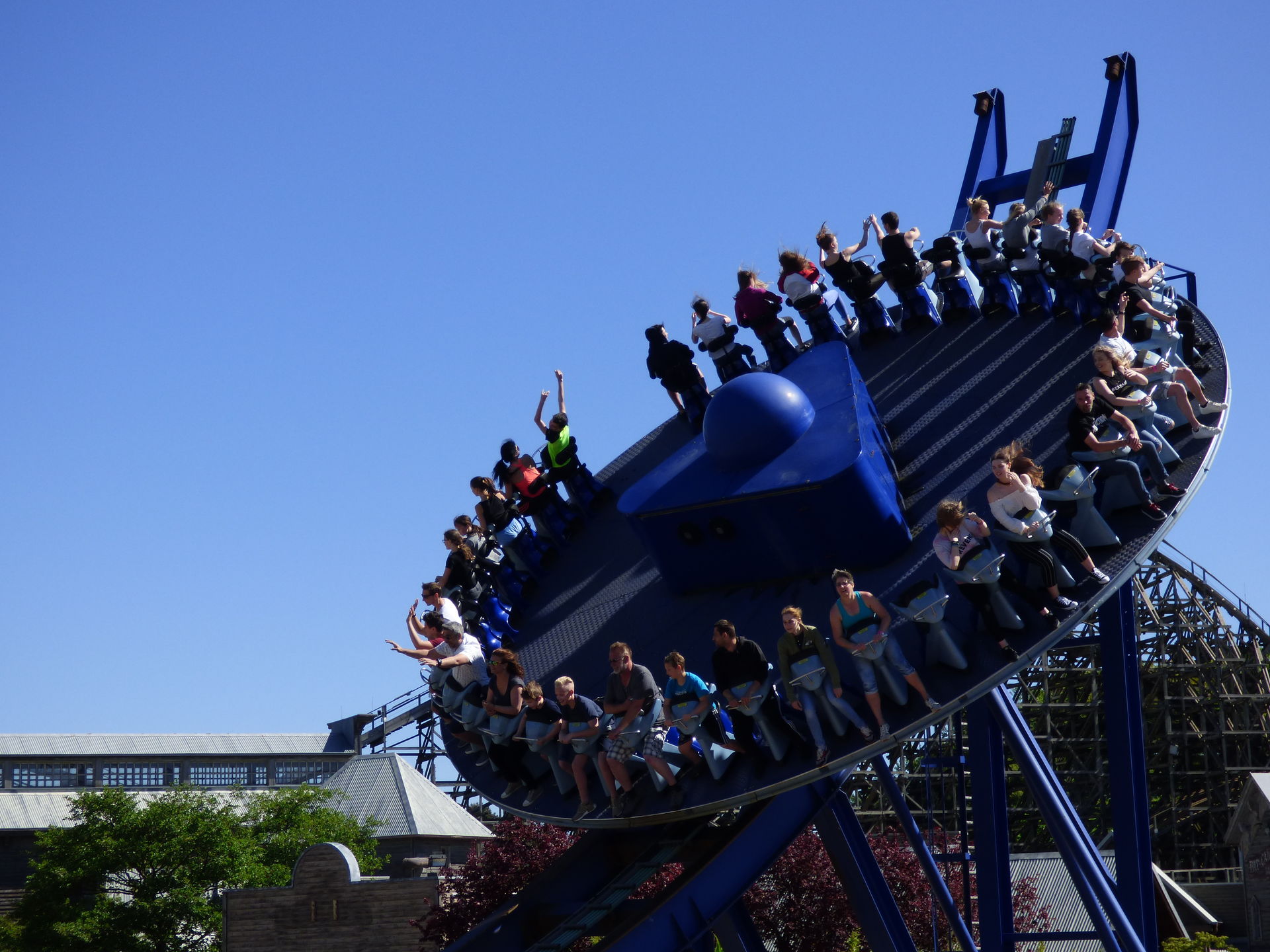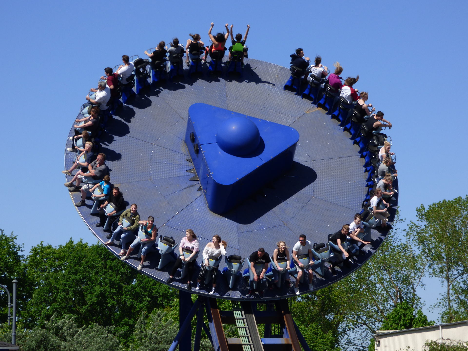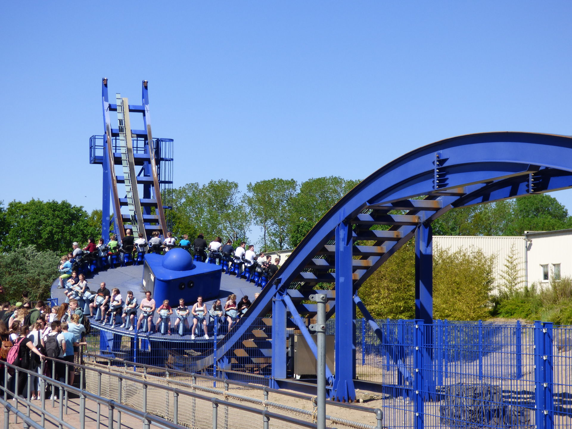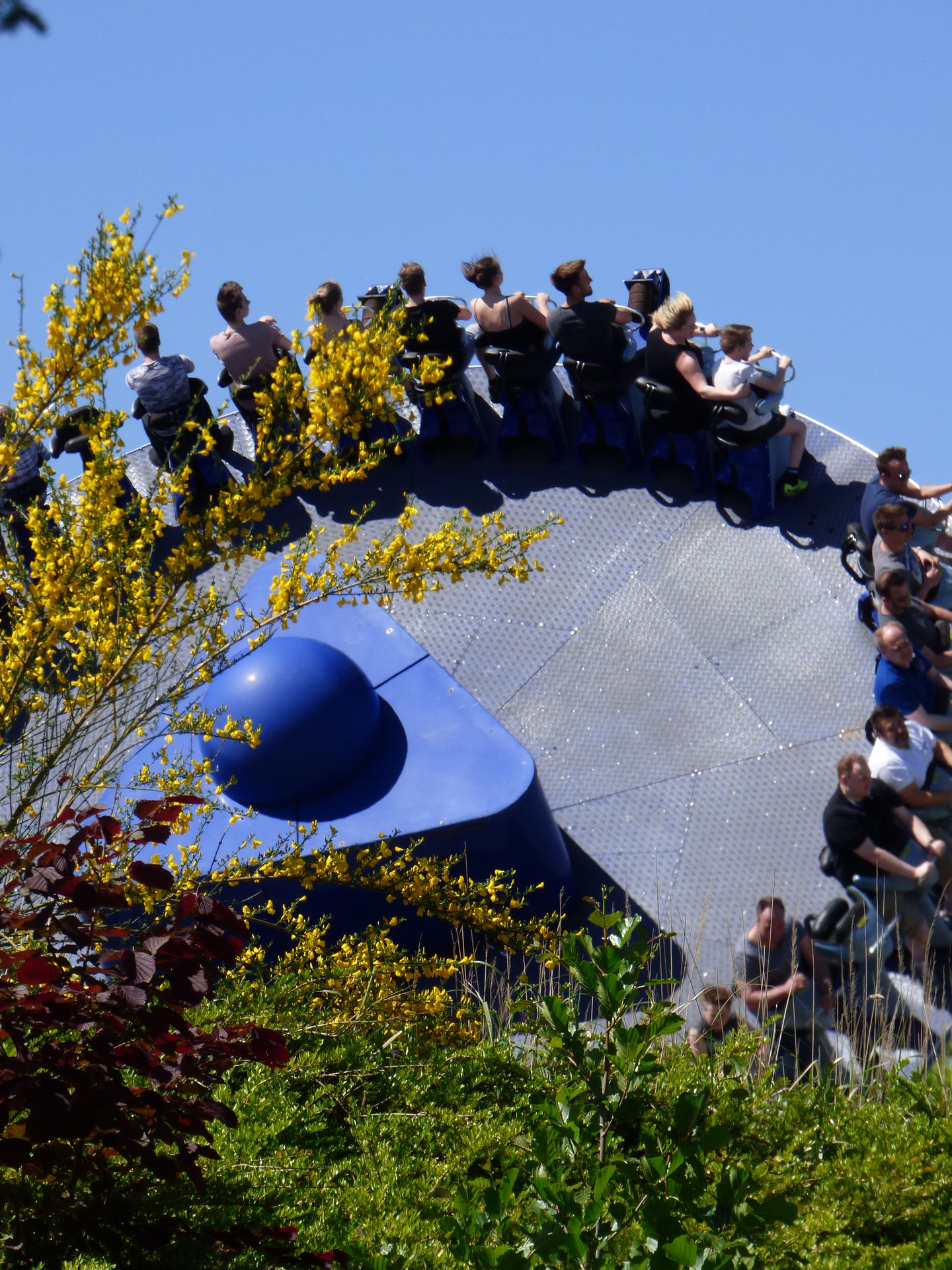 Auf der drehenden Scheibe finden 40 Personen Platz, die dann mit einer Geschwindigkeit von 70 km/h und 9 Umdrehungen pro Minute über die knapp 82 Meter lange Strecke fahren. Die beiden Enden haben eine Höhe von 15,5 Metern, der Hügel in der Mitte misst gute 8 Meter.