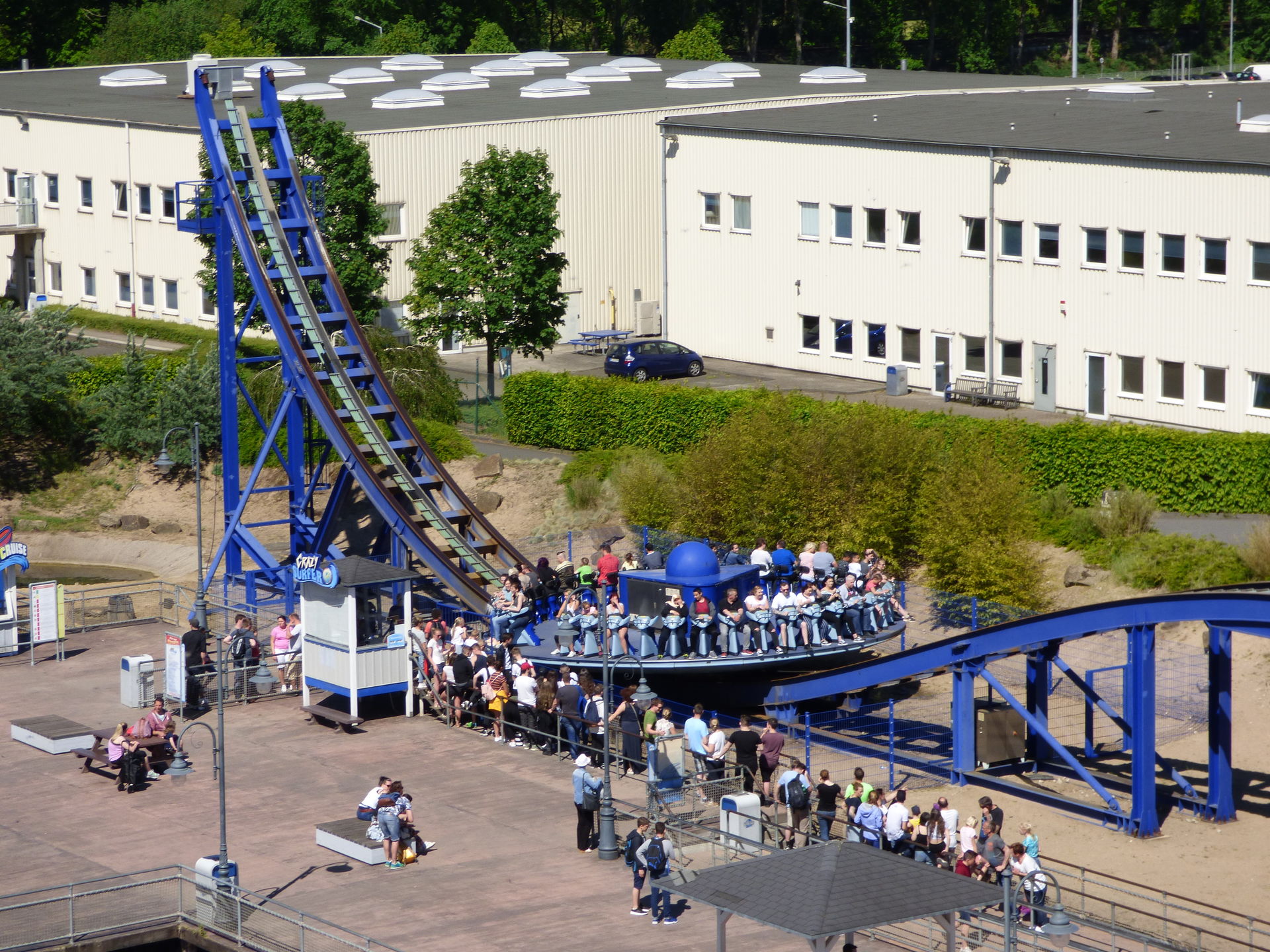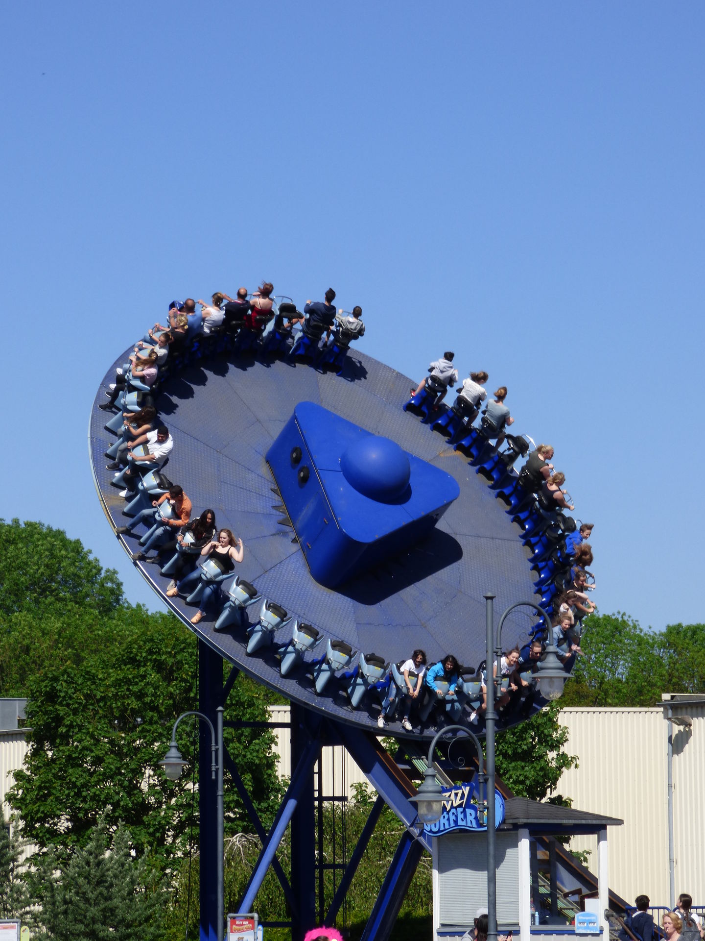 Kommen wir zu den Attraktionen am Pier. Auffälligste, größte und auch meine persönliche Lieblingsattraktion in diesem Themenbereich ist der Crazy Surfer. Hierbei handelt es sich um den ersten stationären Disc'O Coaster in einem deutschen Freizeitpark aus dem Hause Zamperla.