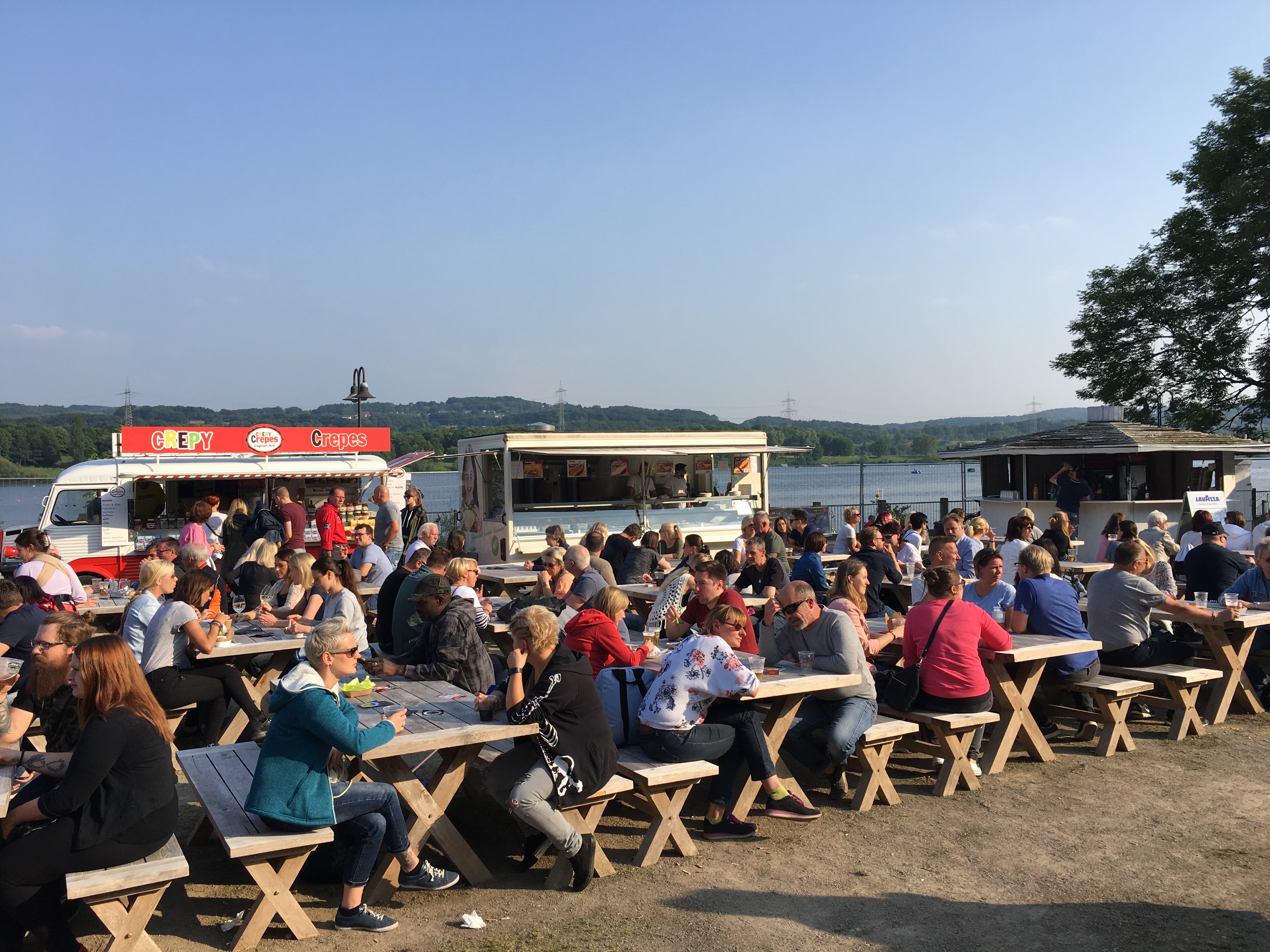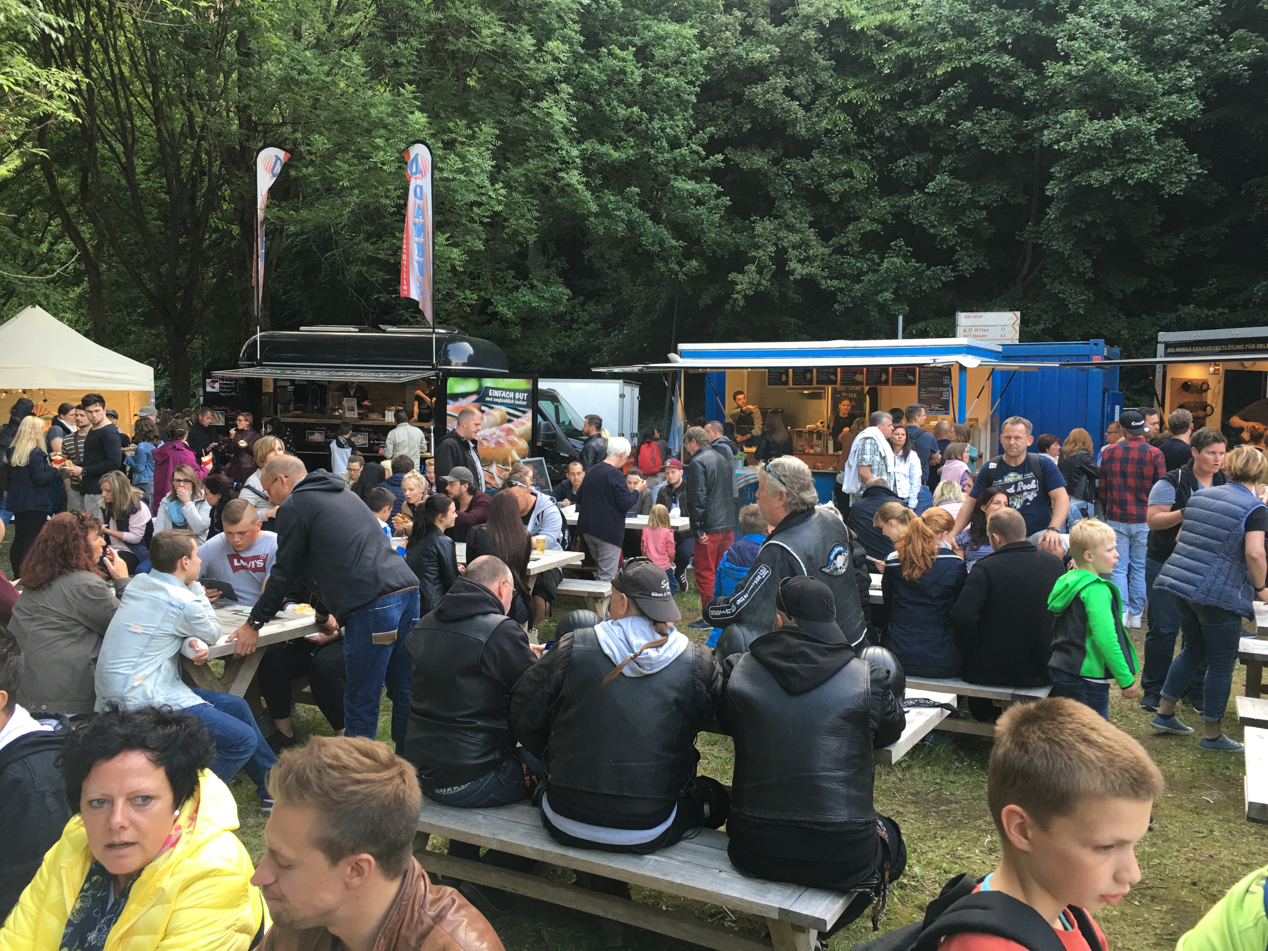 Bei den beiden Zugängen zum Gelände werden Taschen kontrolliert und sämtlich Getränke wandern wie beim Flughafen-Check in die Mülltonne.