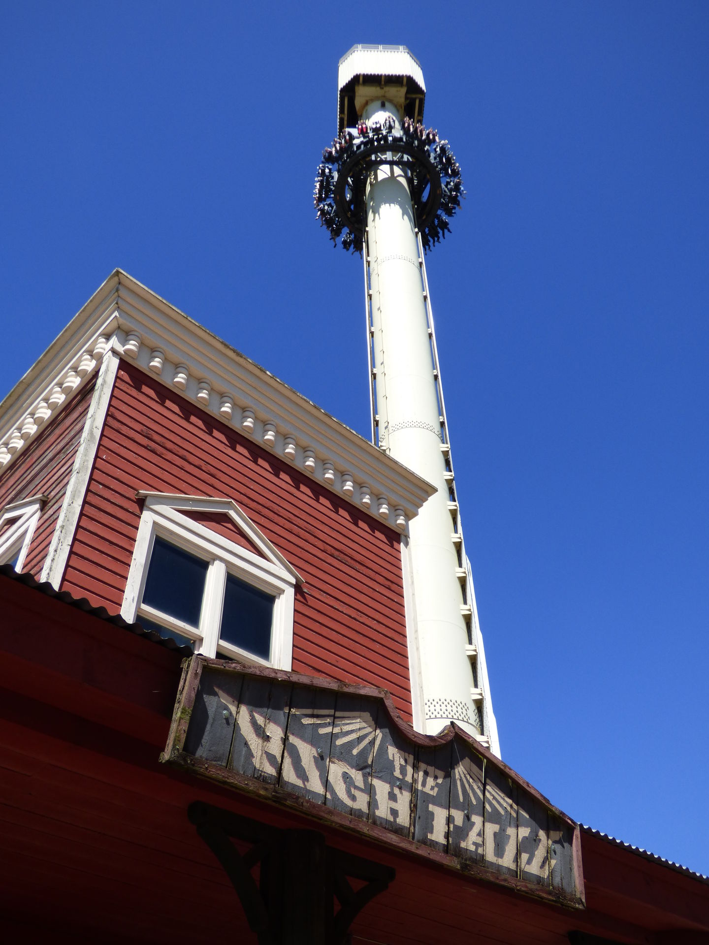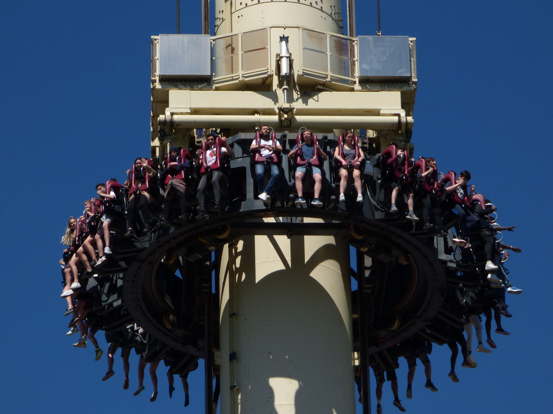 Das Besondere an diesem Turm sind die kippenden Sitze, wobei diese wohl technisch sehr anfällig sind und mittlerweile nur selten funktionieren. Einen aktuellen Stand weiß ich leider nicht, da ich den Turm auch schon viele Jahre nicht mehr gefahren bin.