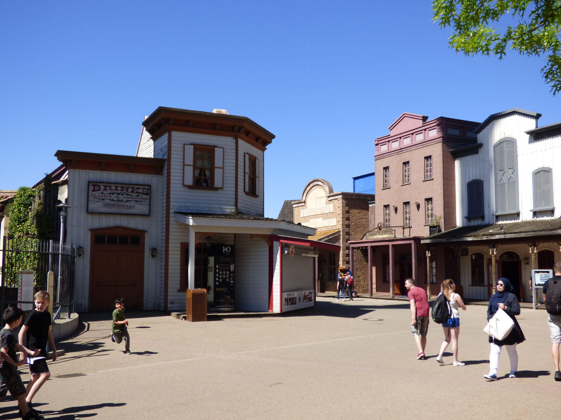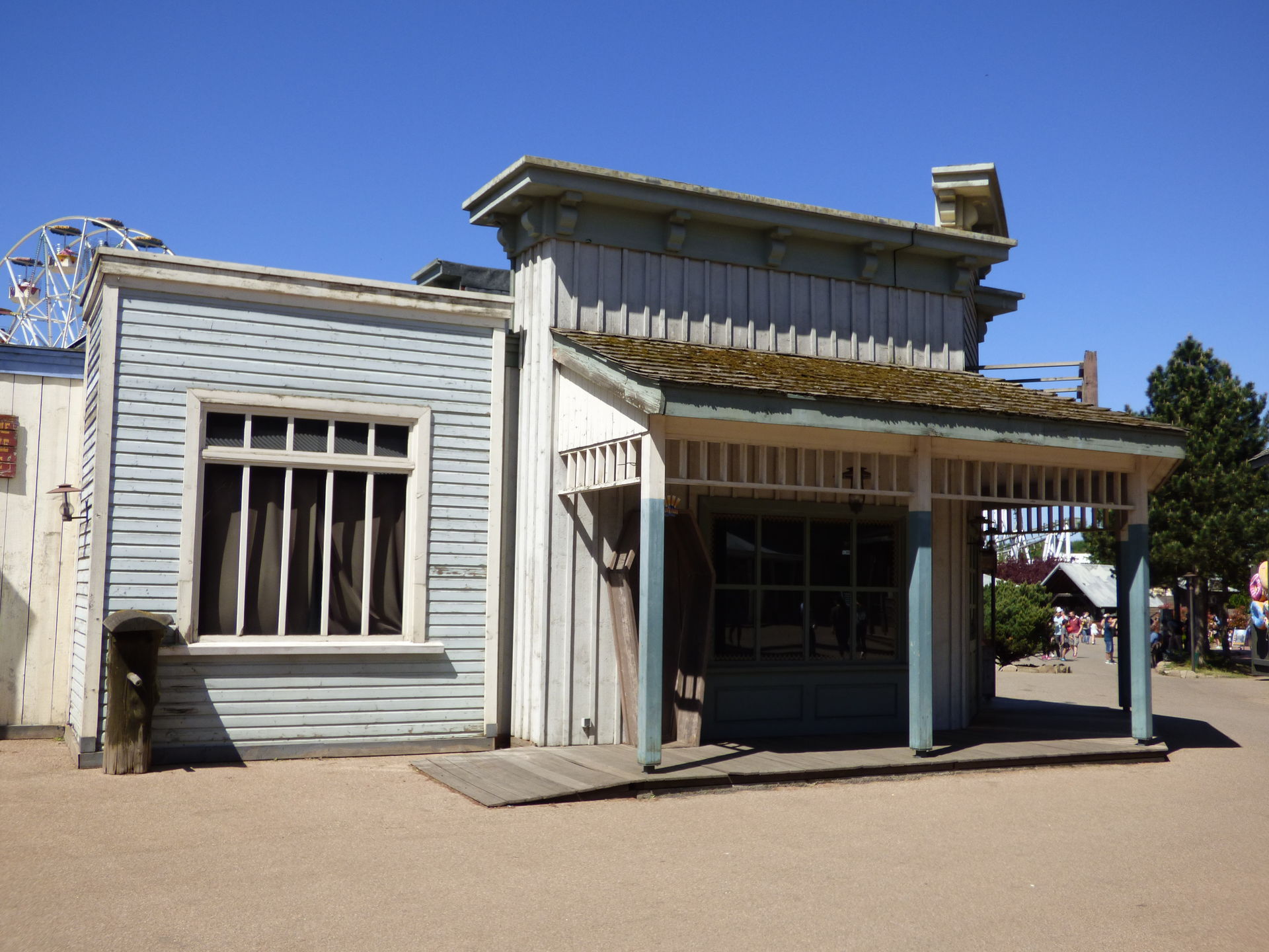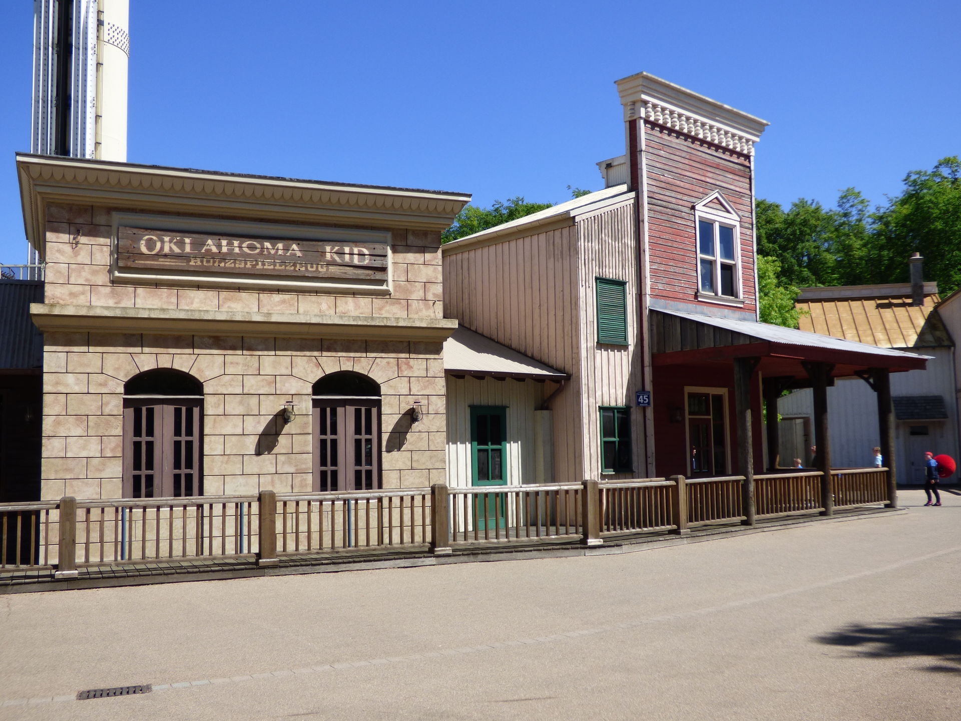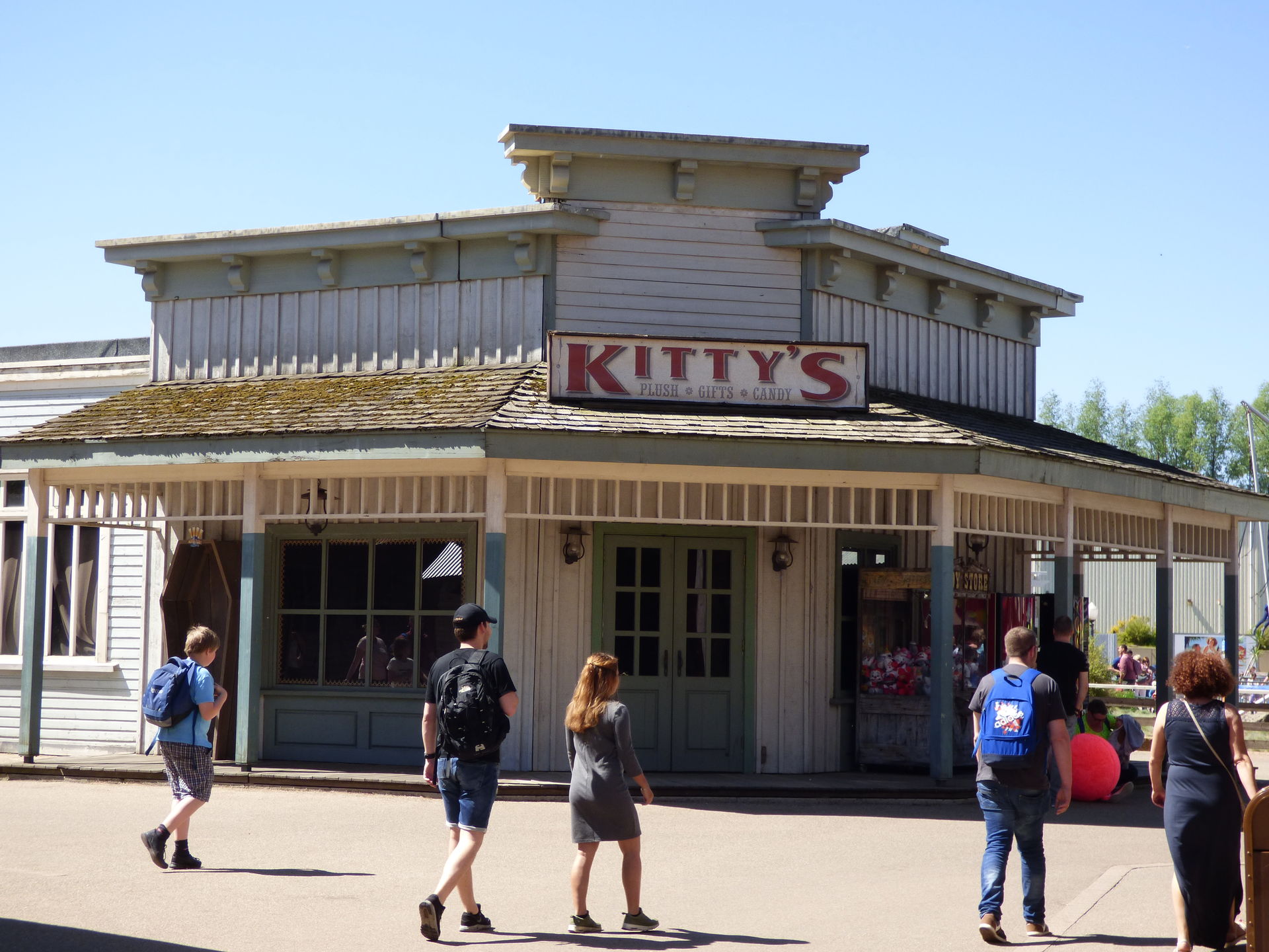 Wie man auf den folgenden Fotos sieht, zerstören die eigentlich gar nichts, weil sie halt komprimiert an einer Stelle auftreten. Ich habe mich mittlerweile dran gewöhnt. Und den Rest des Themenbereichs genieße ich einfach. Ich mag dieses Western Theming einfach und bin über jede Westernstadt froh, die in den Parks noch erhalten bleibt.