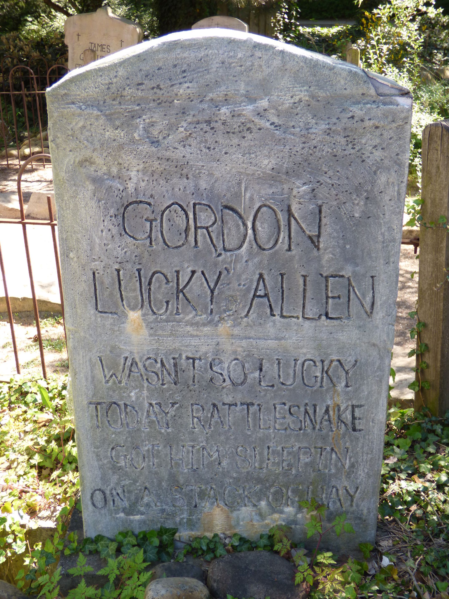 Direkt nach überqueren der Brücke findet man auf der rechten Seite einen kleinen Friedhof mit Grabsteinen. Wie schon erwähnt, war dieser Friedhof zu Warner Zeiten größer und man konnte quasi an den einzelnen Steinen vorbeigehen. Dabei ertönten gruselige Geräusche und die Steine bewegten sich auf unterschiedliche Weise.