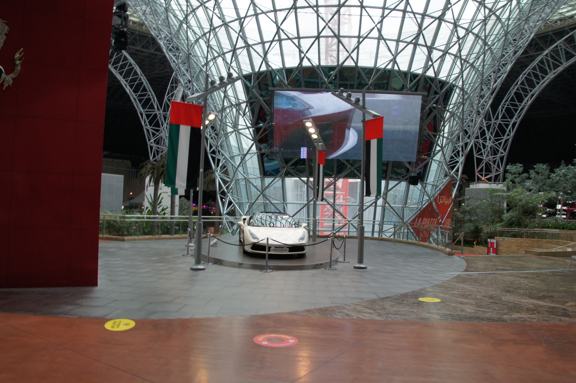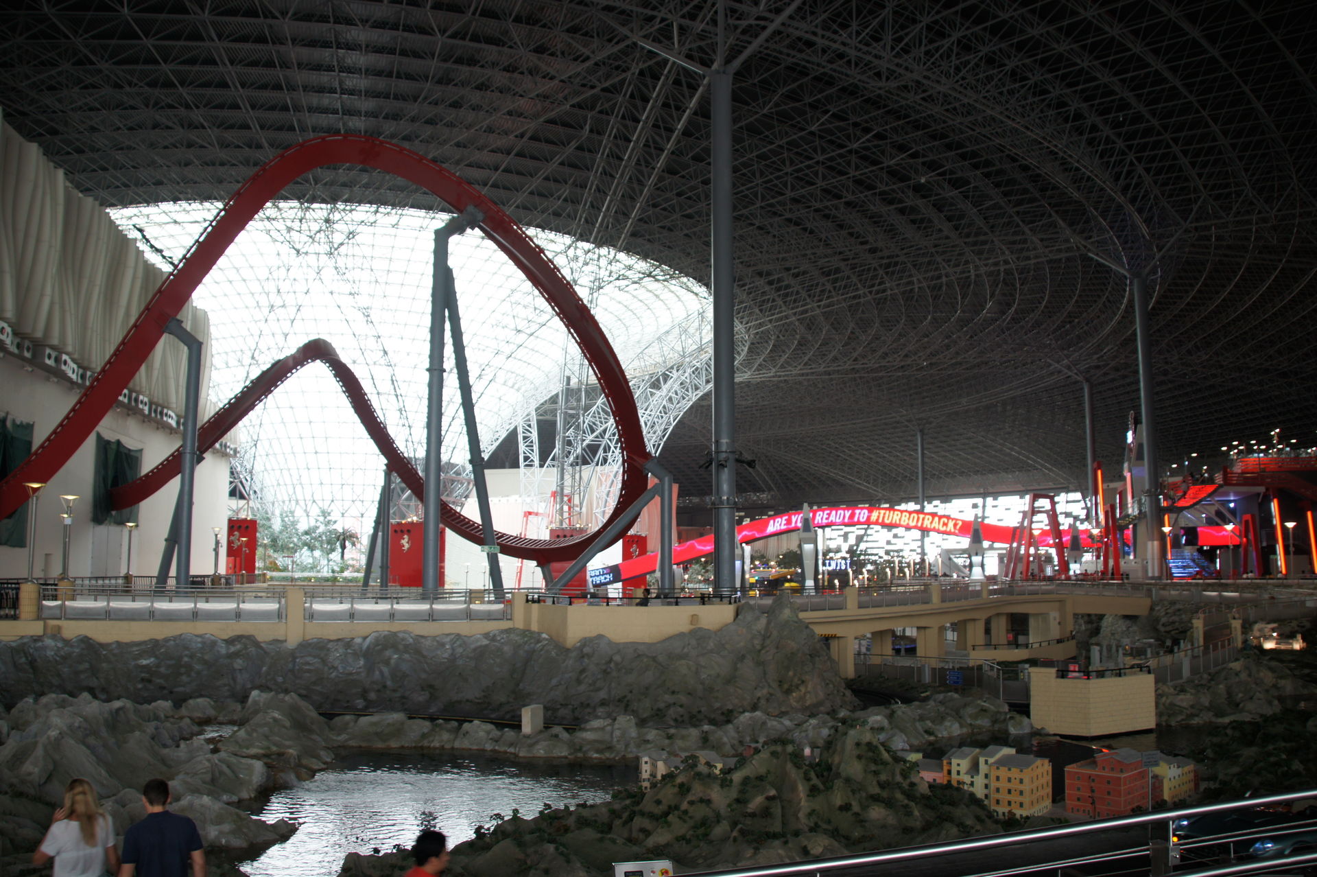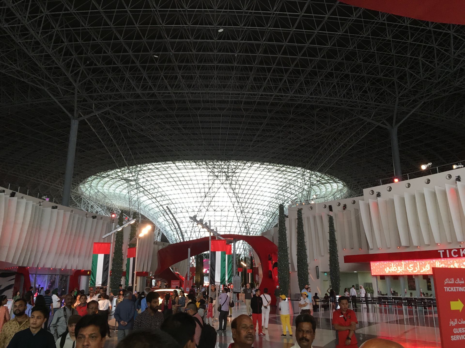 Trotz eines immensen Sandsurmes haben wir es fast püktlich geschaft, kurz nach 10 sind haben wir unser Auto im Parkhaus der Mall abgestellt und sind gleich zur Ferrari-World gegangen. Eines was gleich als erstes auffällt: RIESIG, wirklich groß das ganze.