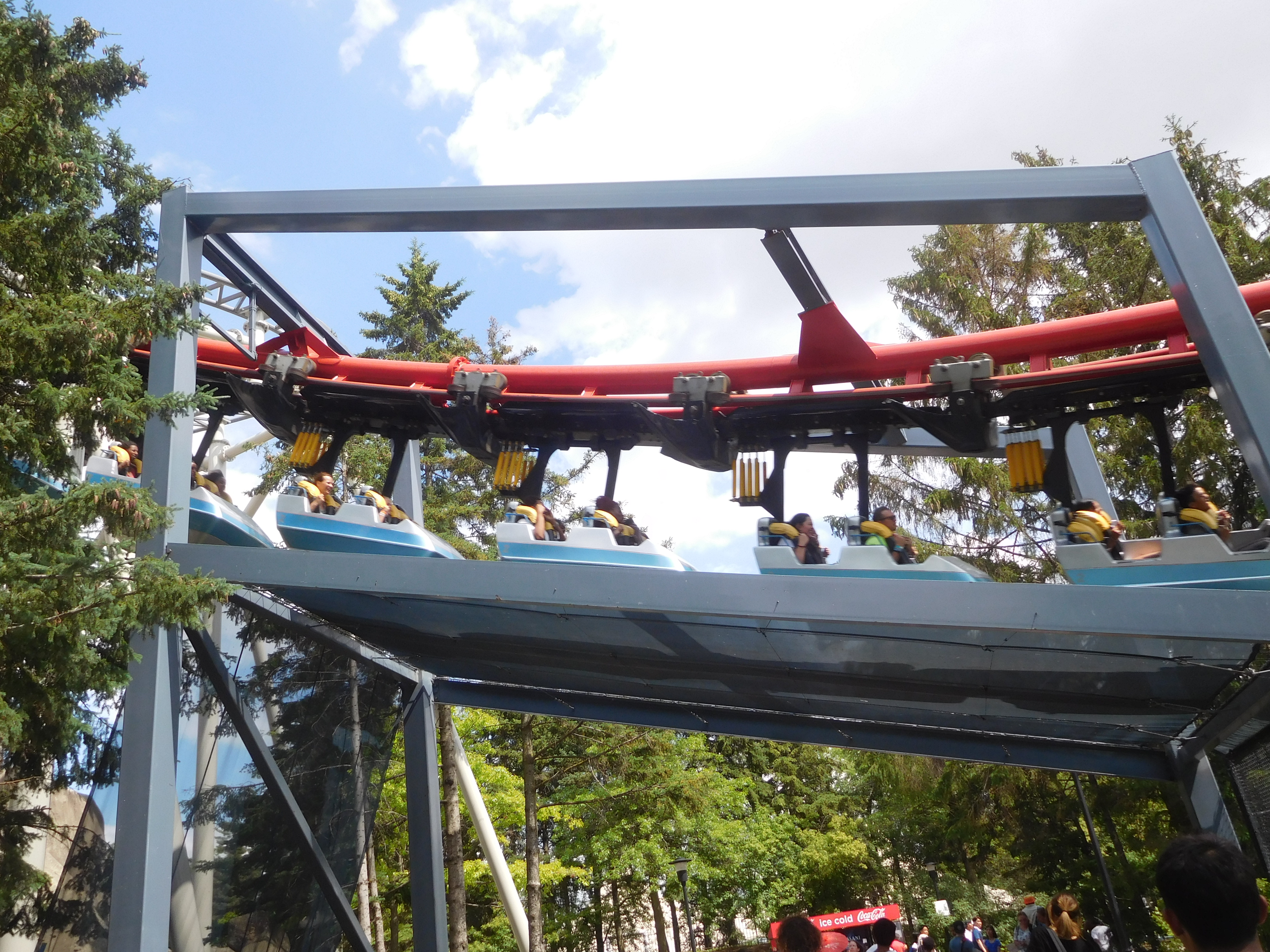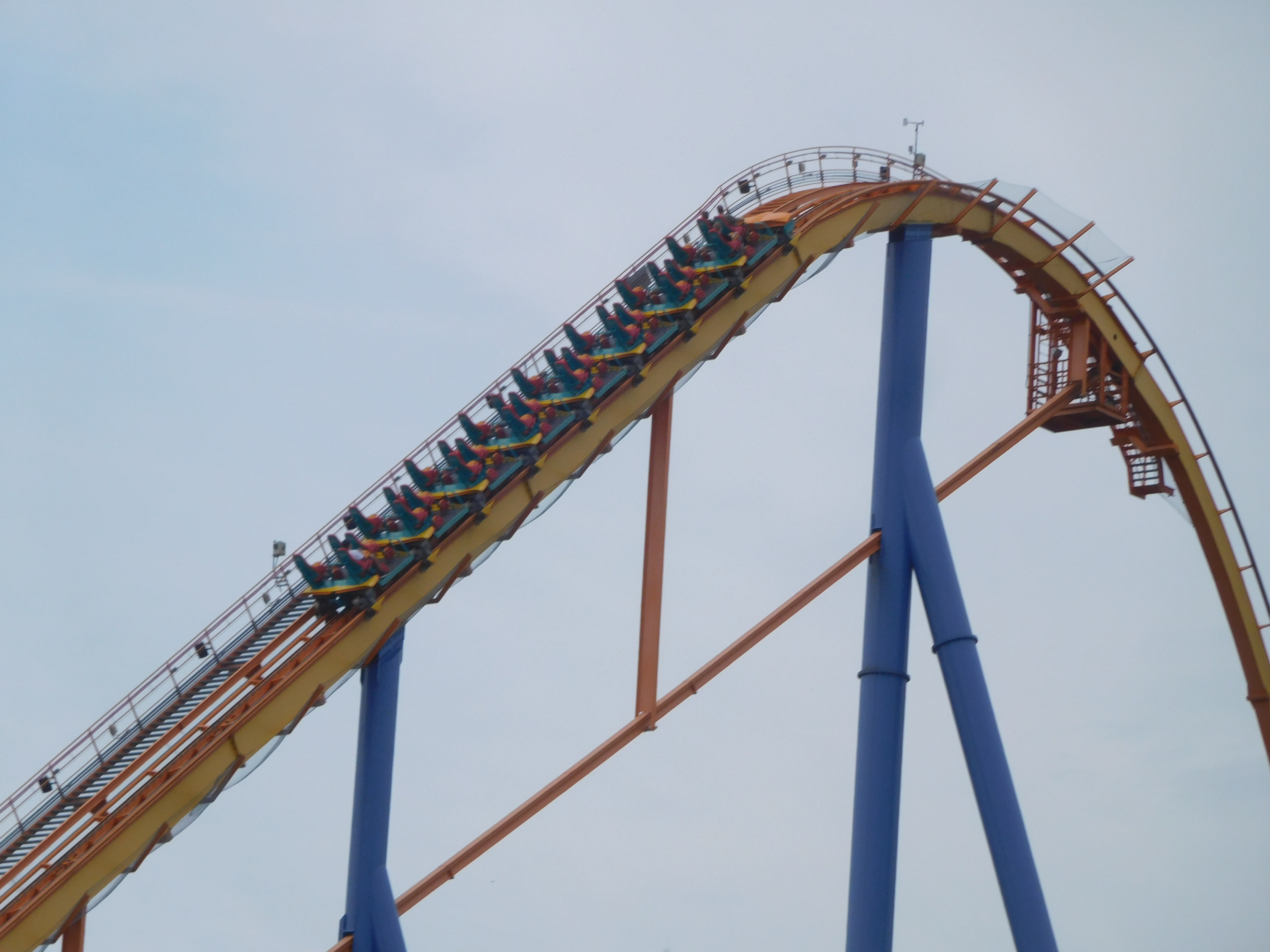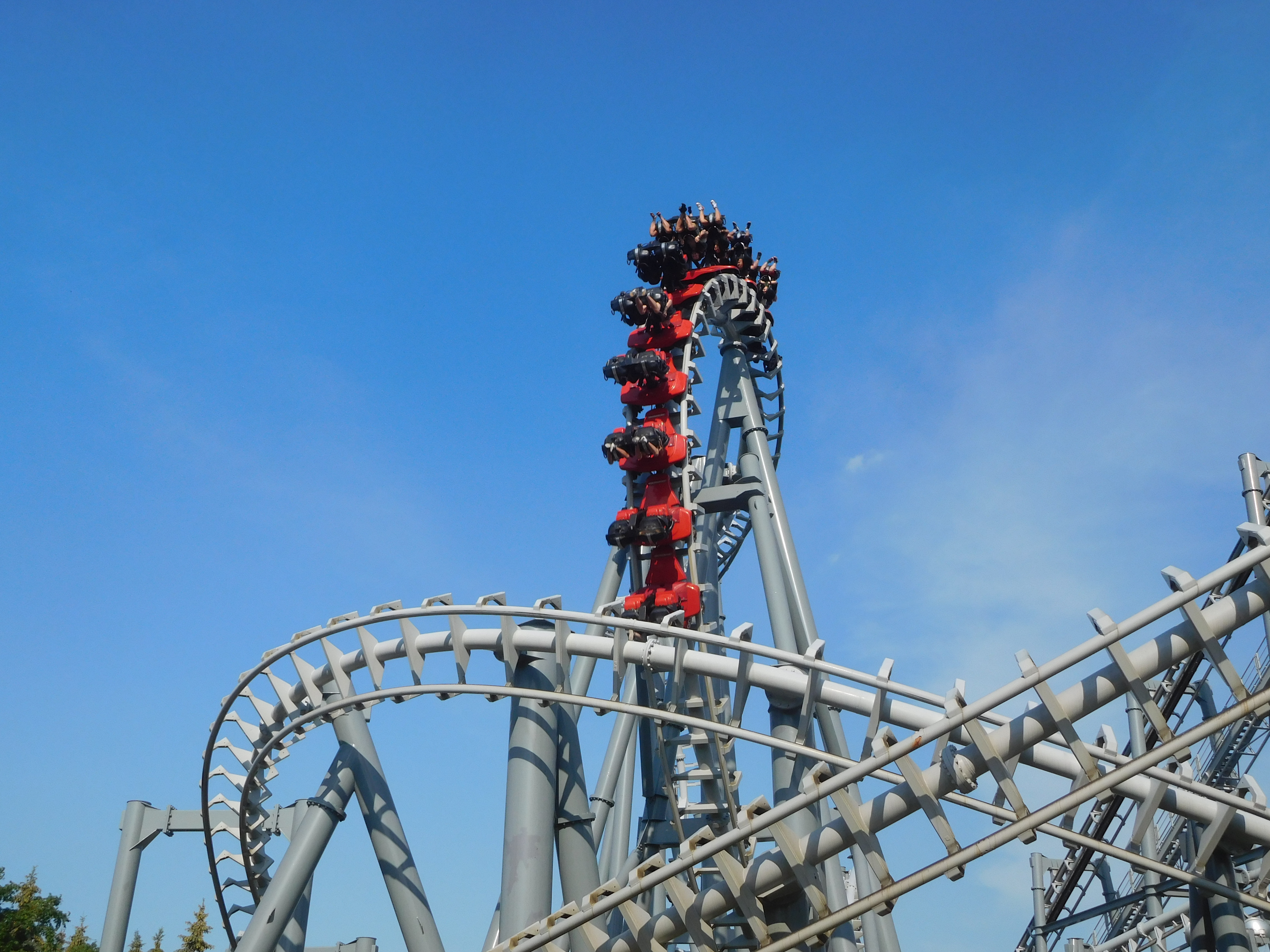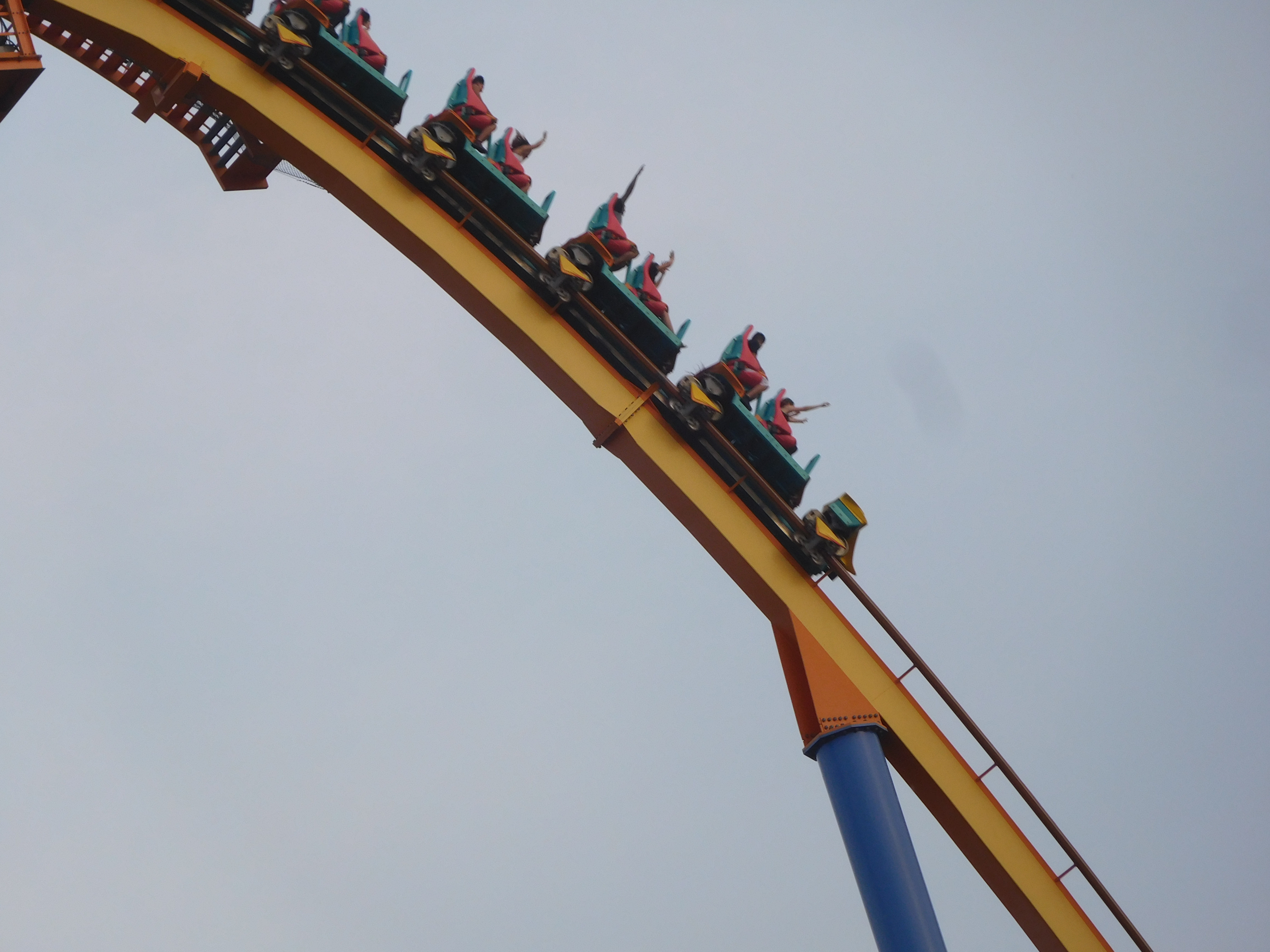Dann ging es los. Die beiden Heartline Rolls waren noch okay zu fahren. Doch ich kriegte in jeder Kurve eine gewischt und aufgrund der Flughaltung konnte ich nichts dagegen tun. Das war überhaupt keine schöne Achterbahnfahrt und ich war sehr froh, als ich endlich die Schlussbremse erreichte.