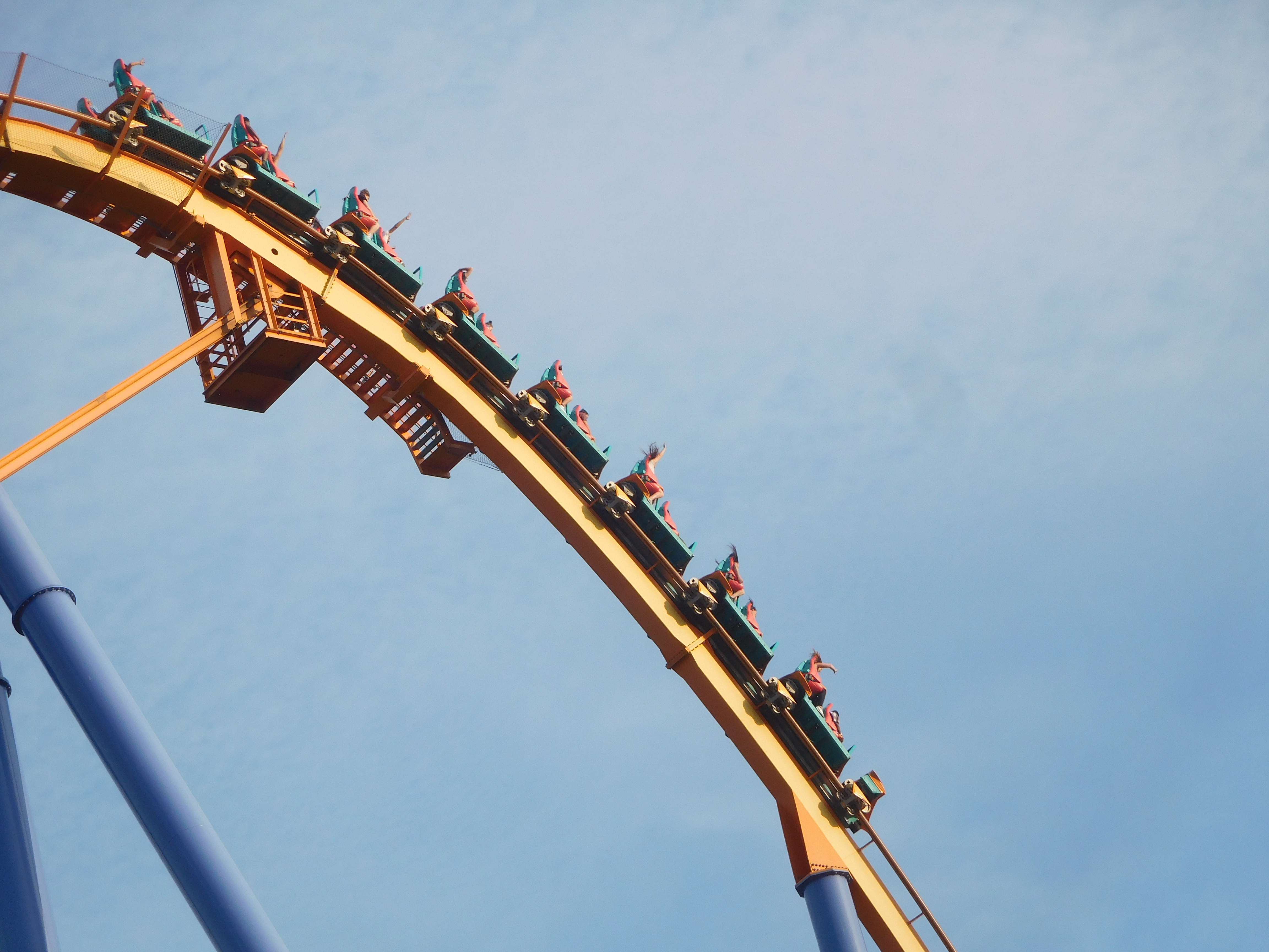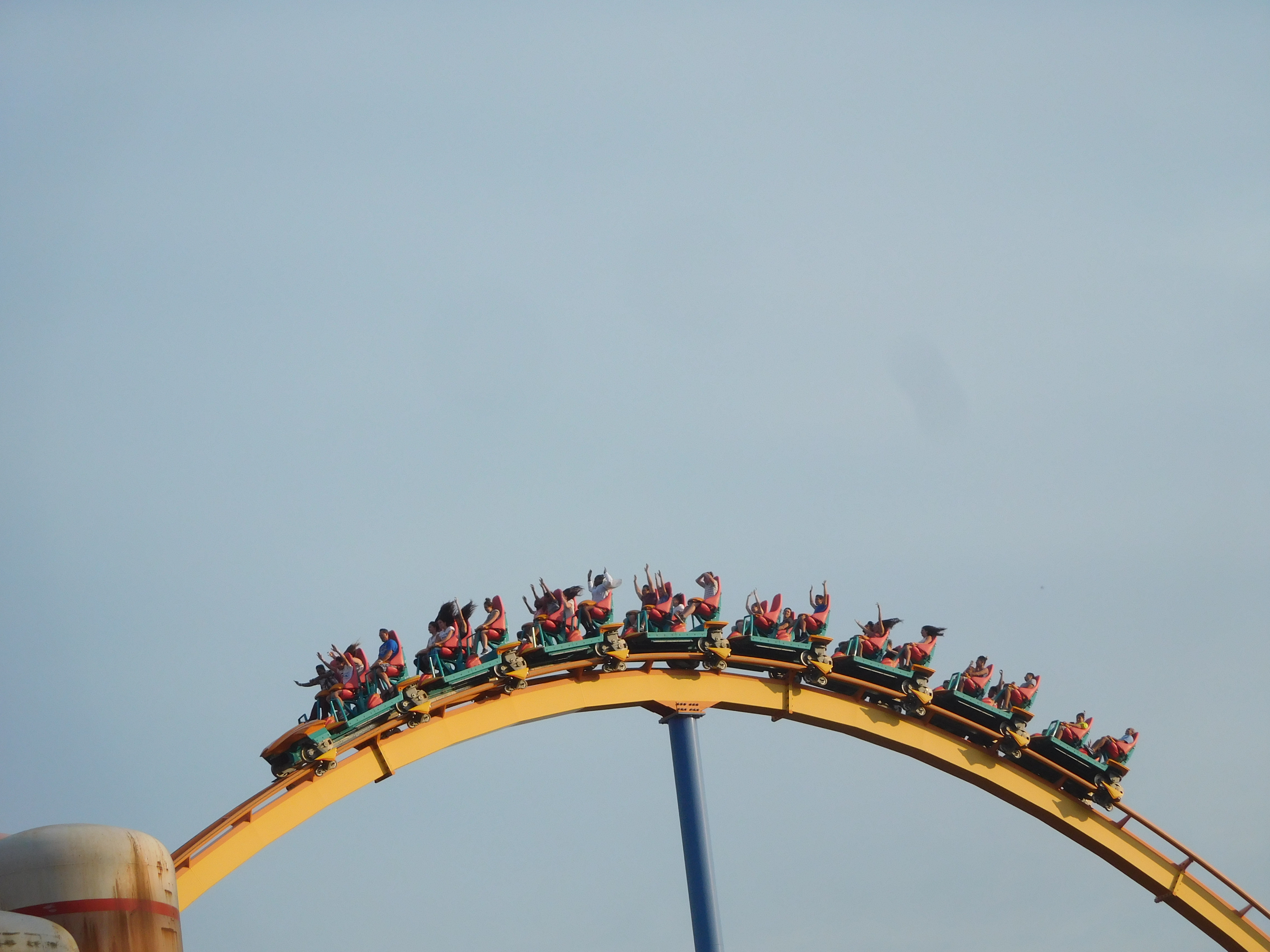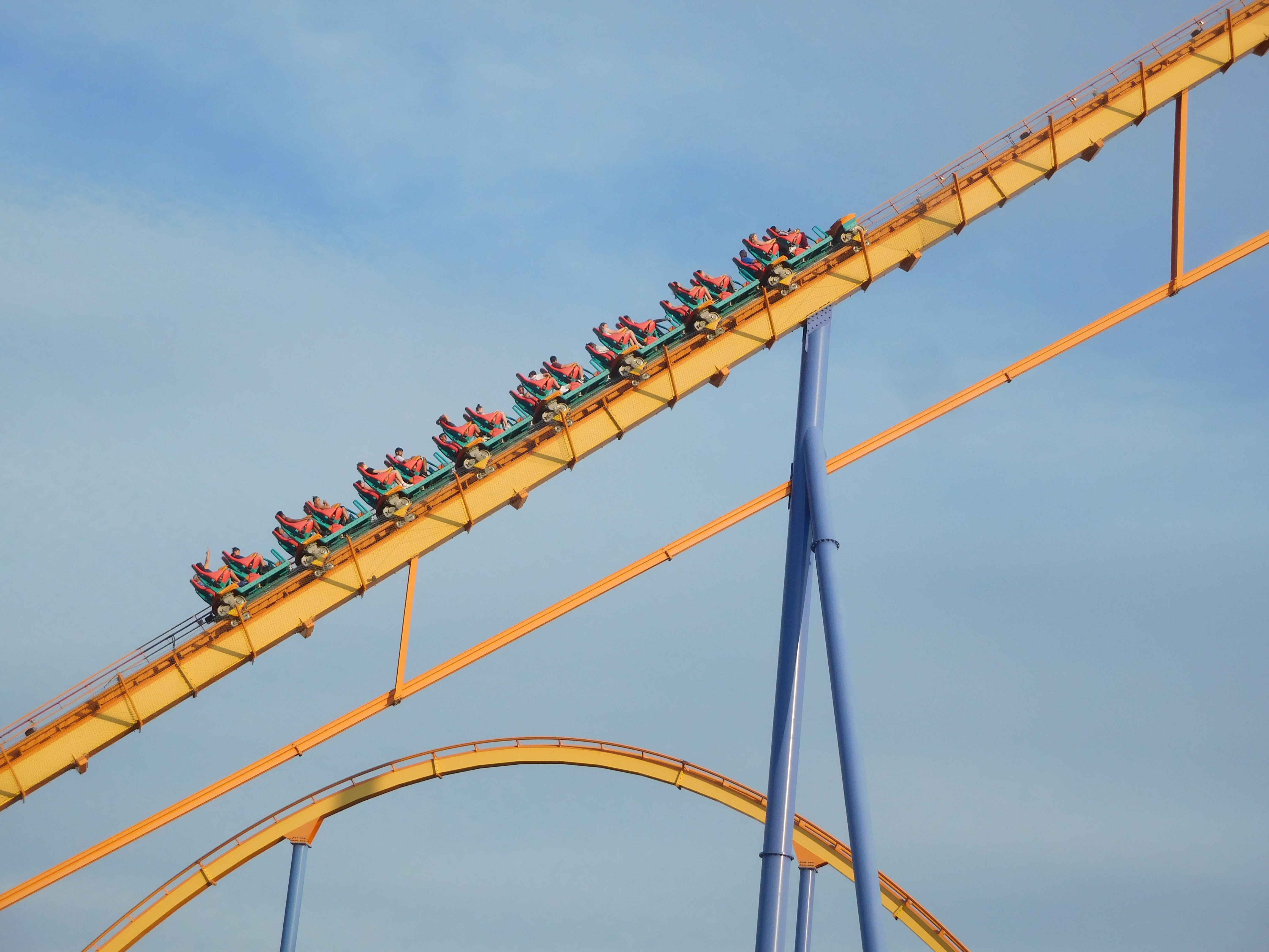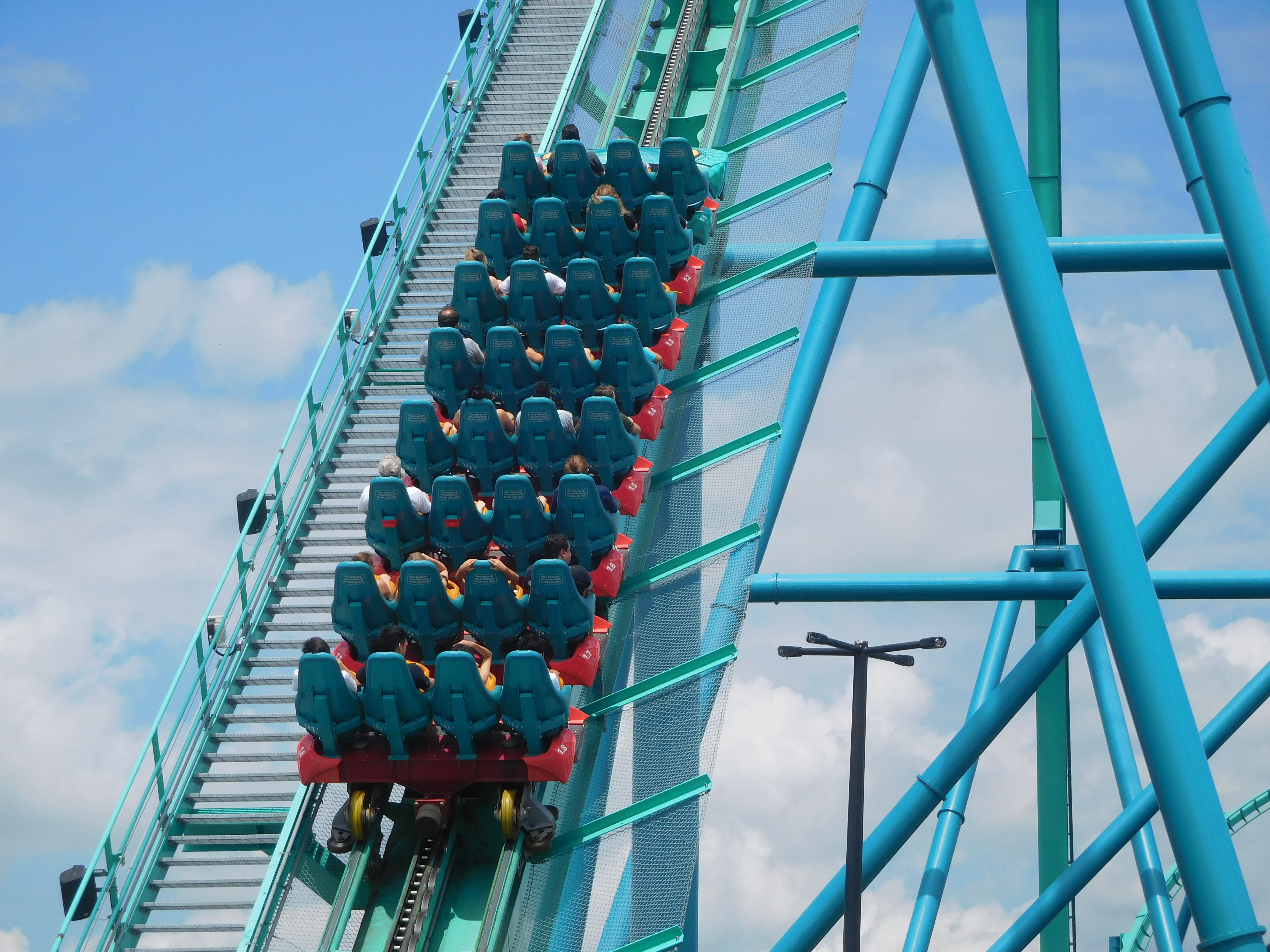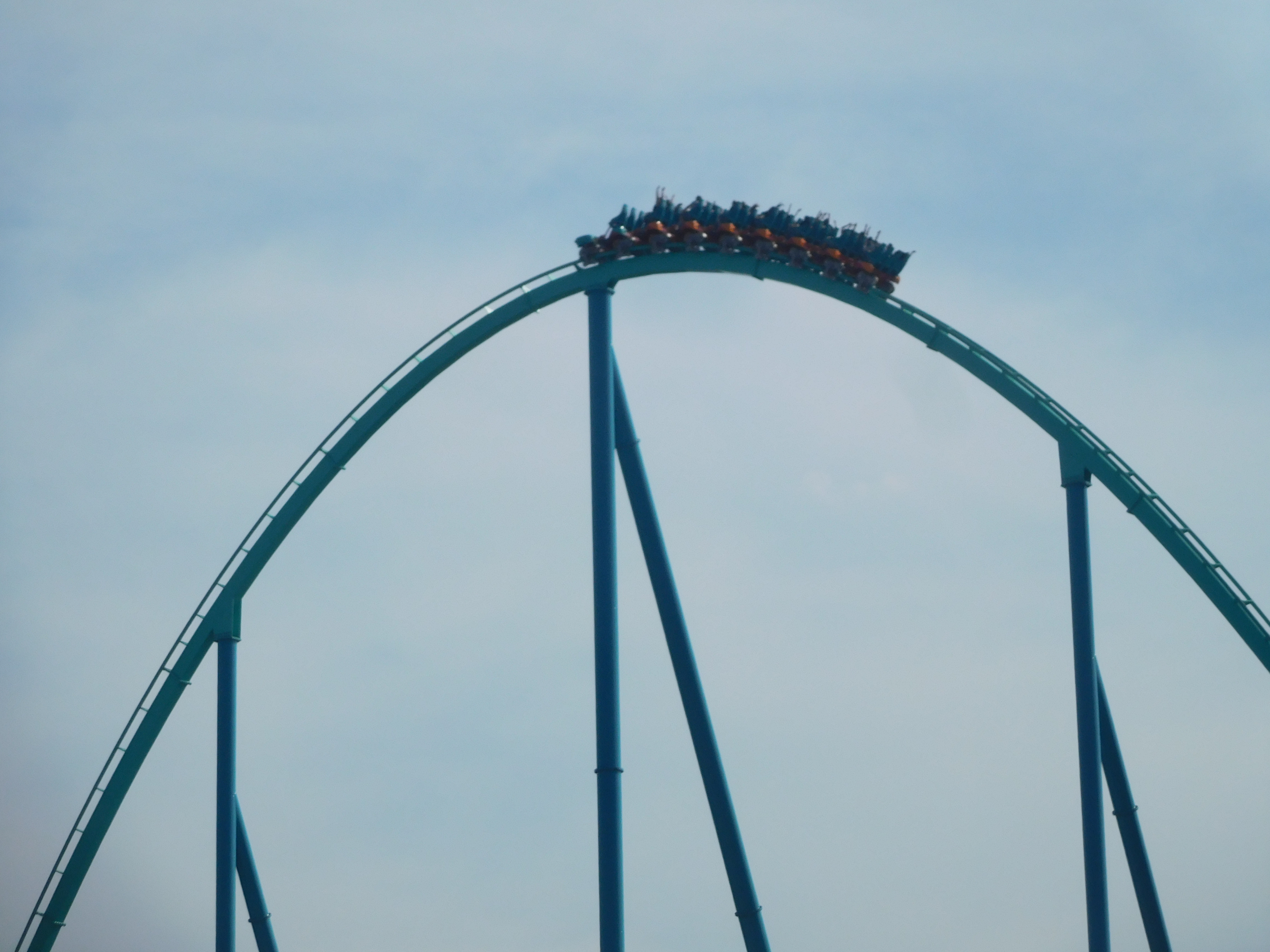 Dann ging es los. Die beiden Heartline Rolls waren noch okay zu fahren. Doch ich kriegte in jeder Kurve eine gewischt und aufgrund der Flughaltung konnte ich nichts dagegen tun. Das war überhaupt keine schöne Achterbahnfahrt und ich war sehr froh, als ich endlich die Schlussbremse erreichte.