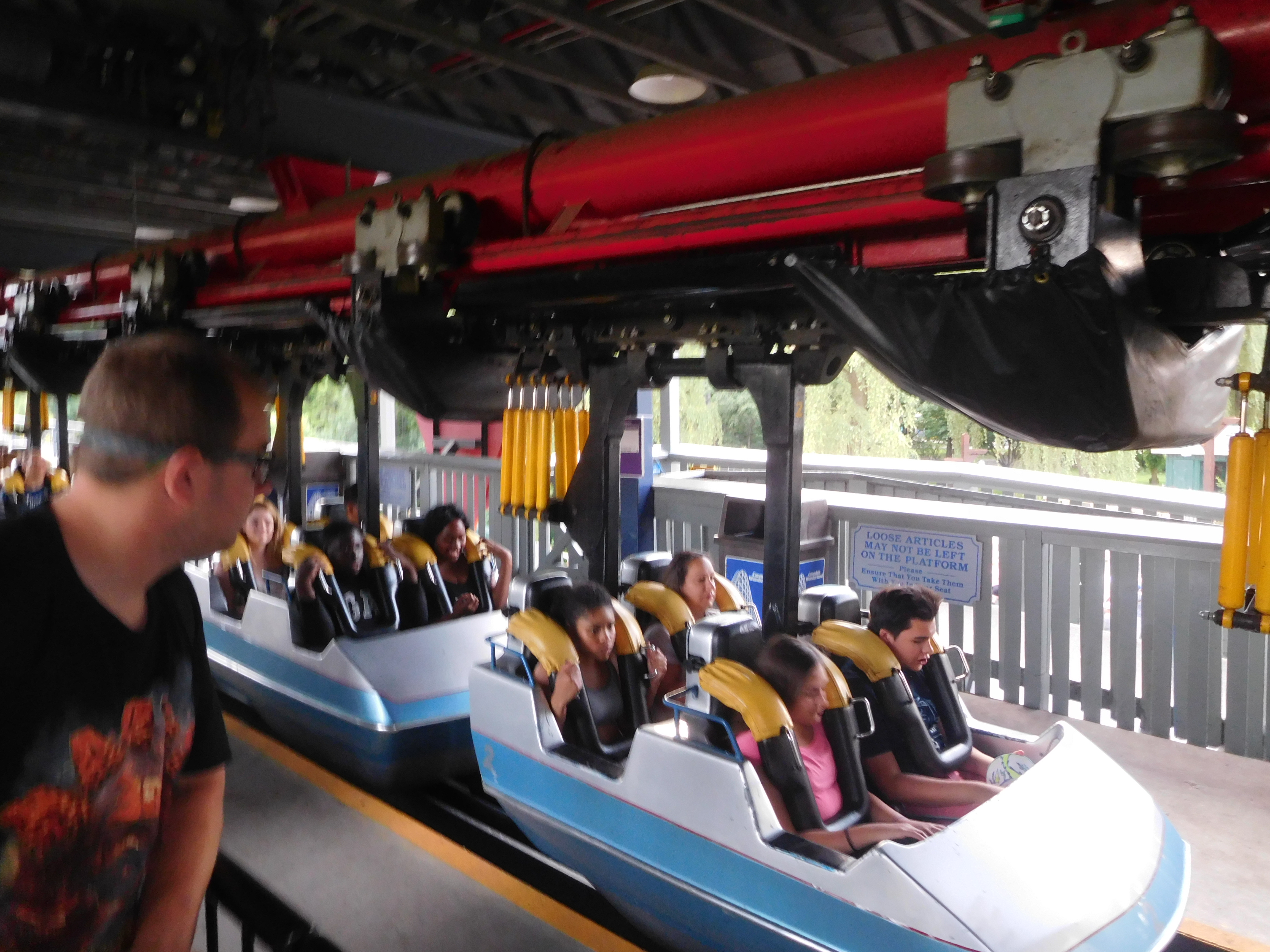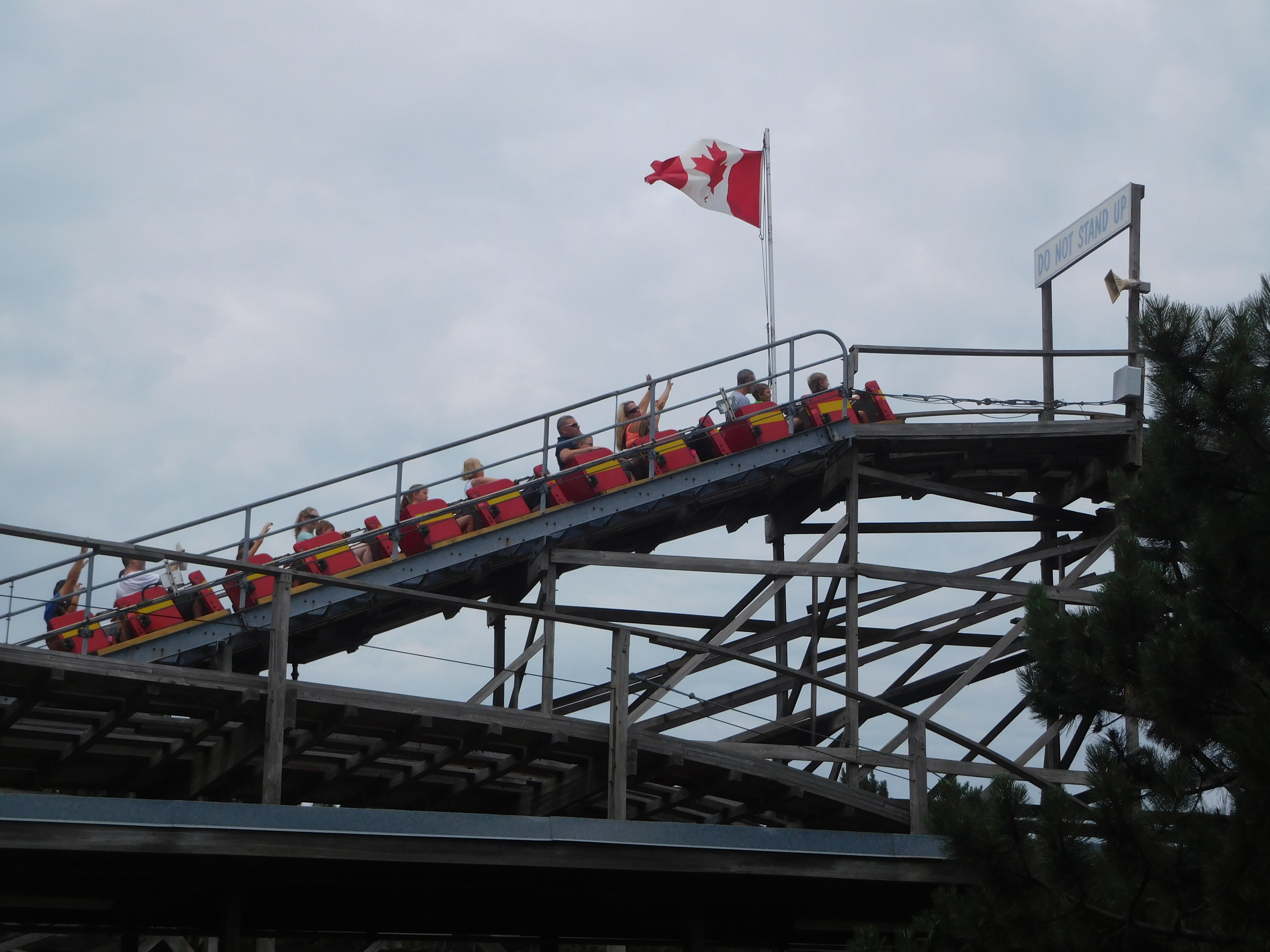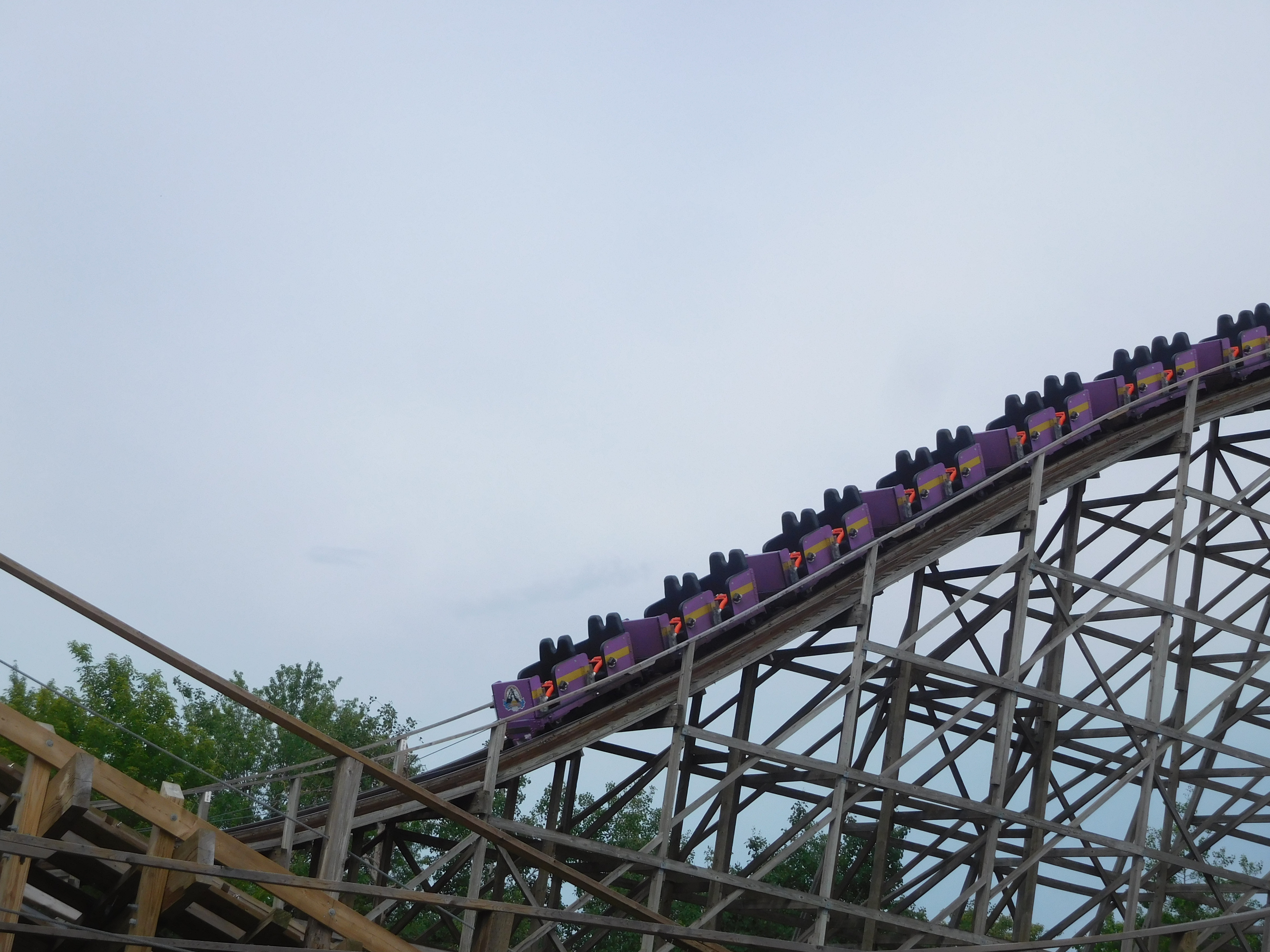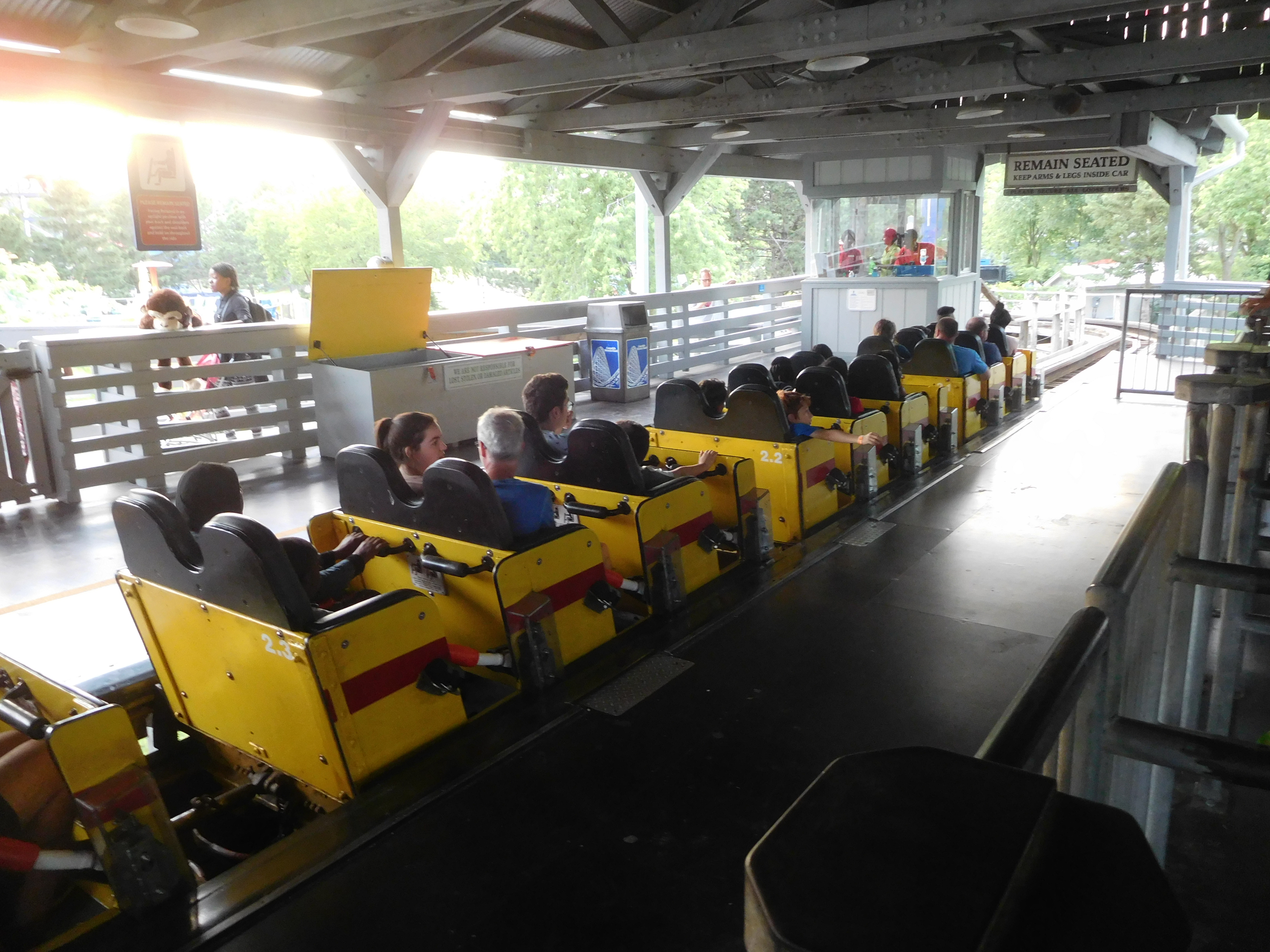 Eine Besonderheit im Vergleich zu den anderen kleinen Woodies gab es aber: Hier wurden 2 Züge eingesetzt! Bei dem kurzen Layout brachte das eigentlich keine wirkliche Kapazitätserhöhung, aber gut, Canadas Wonderland meint es wohl einfach sehr gut mit der Kapazitätsauslastung.