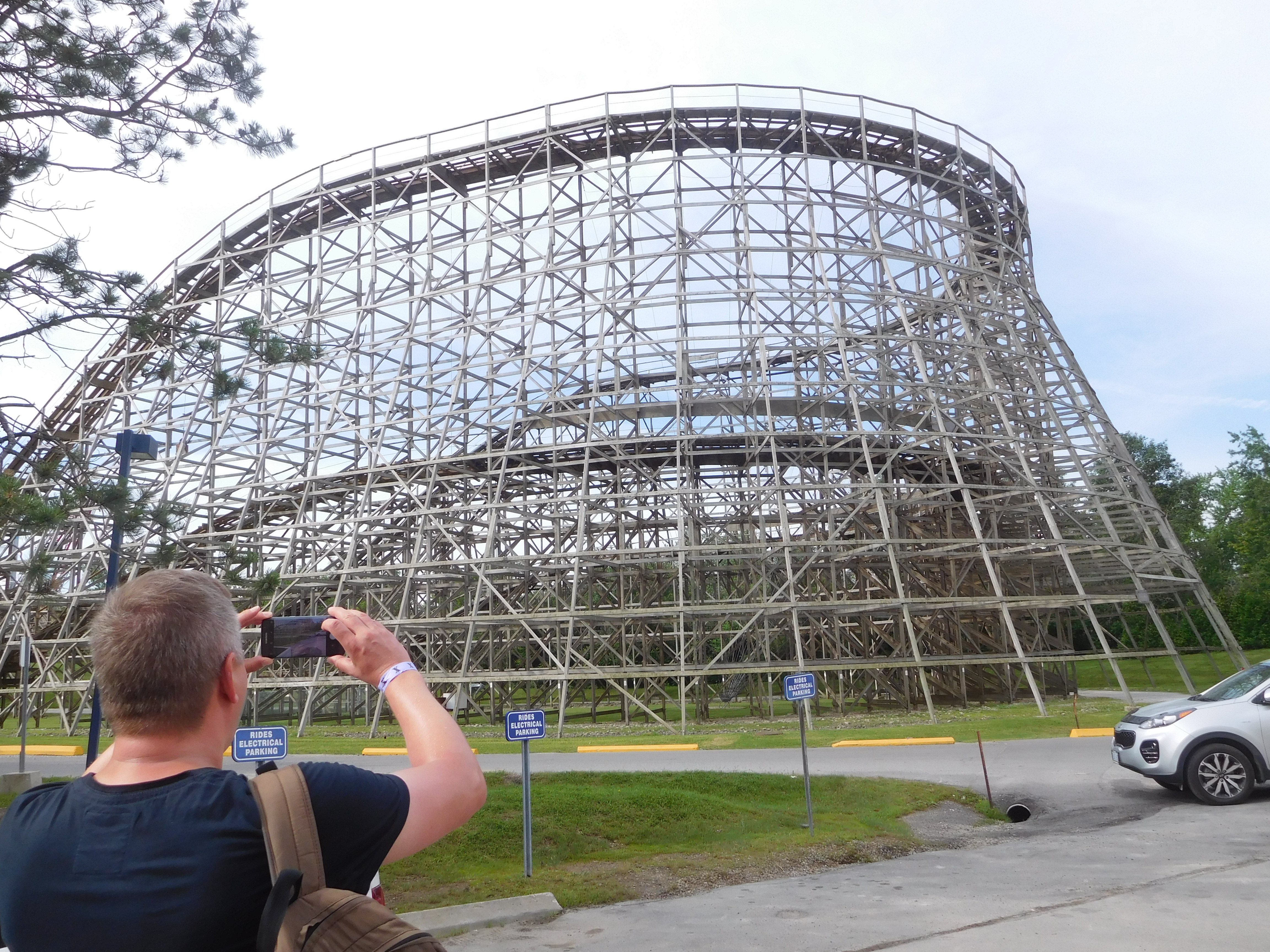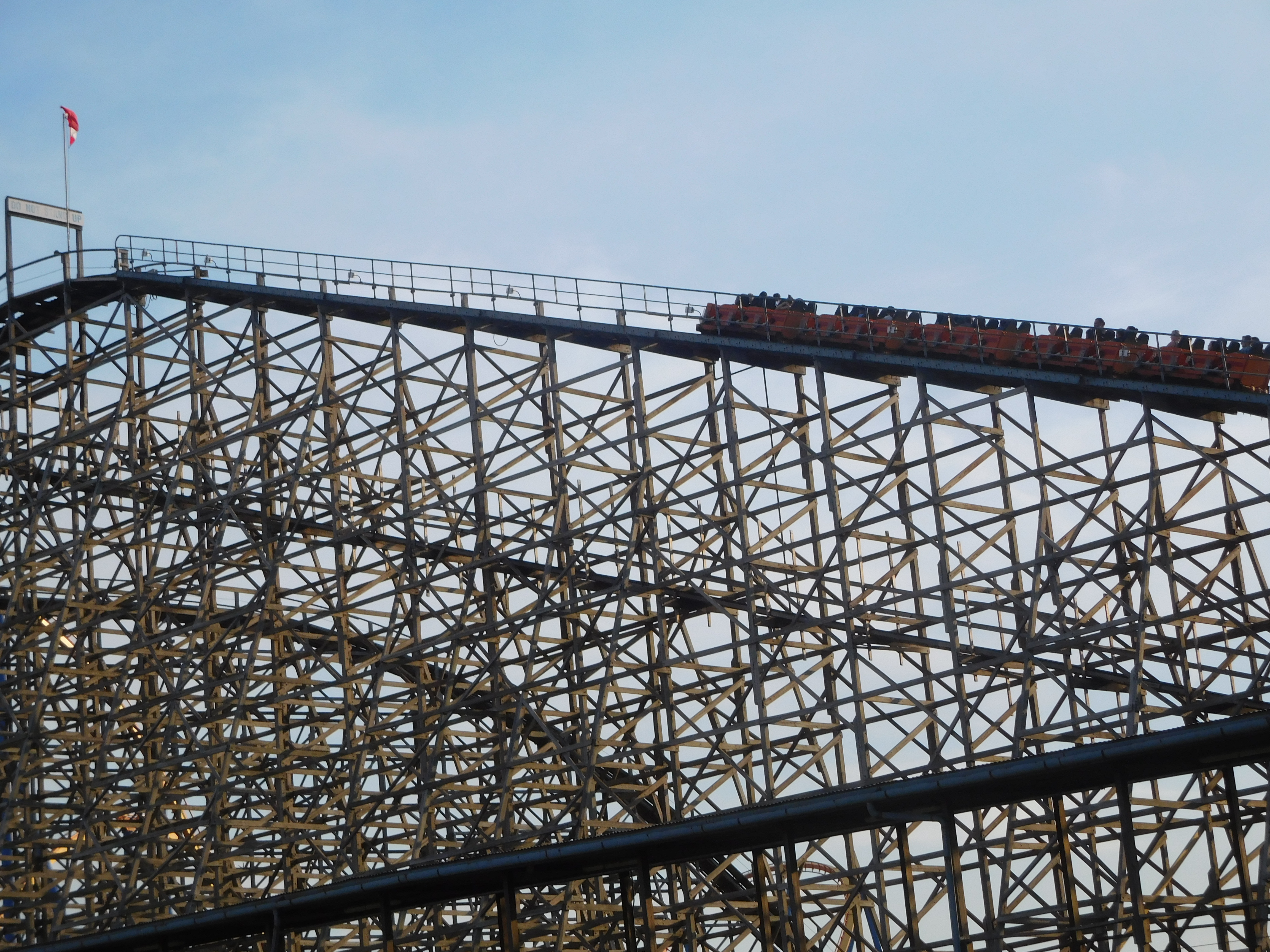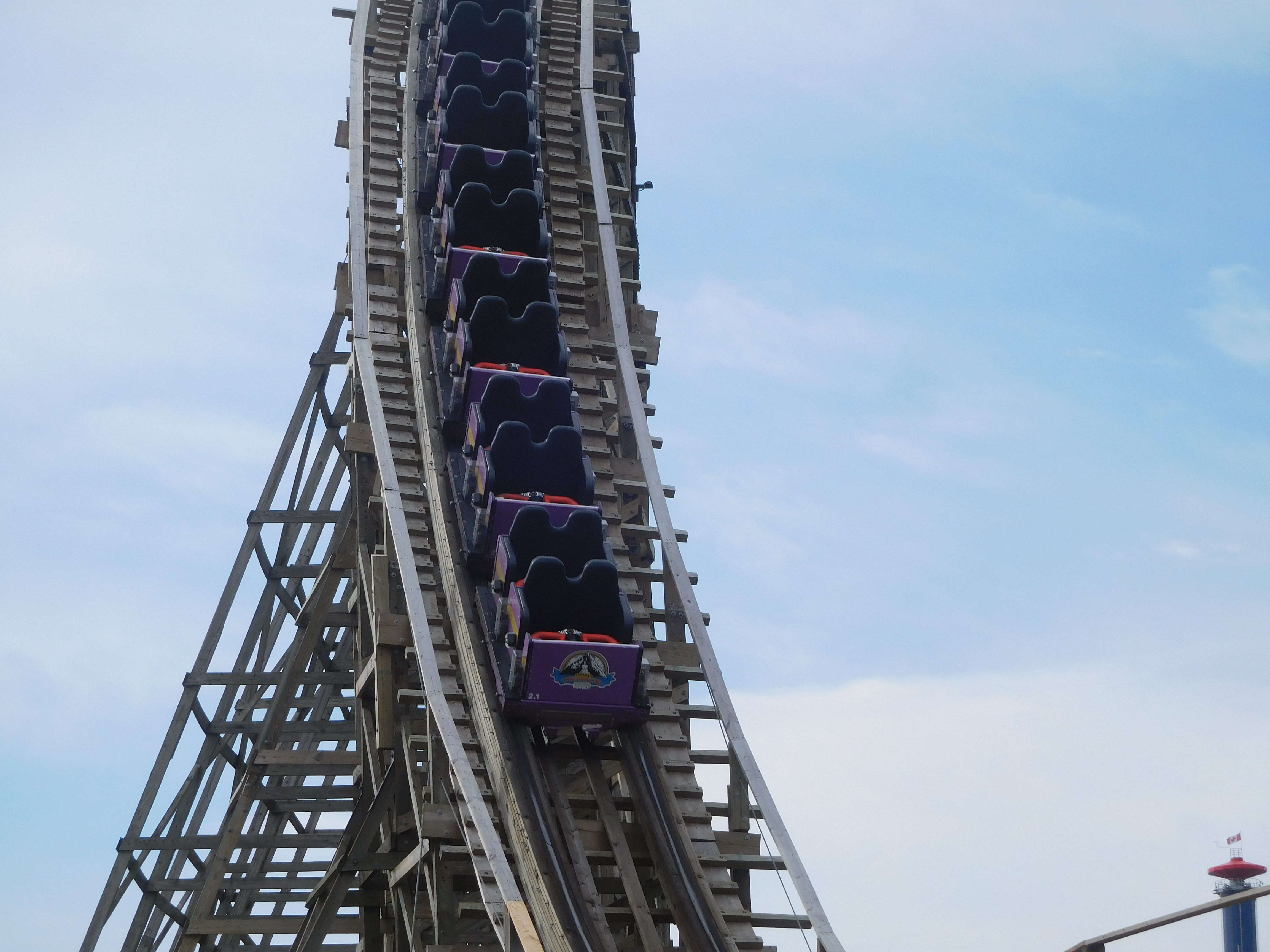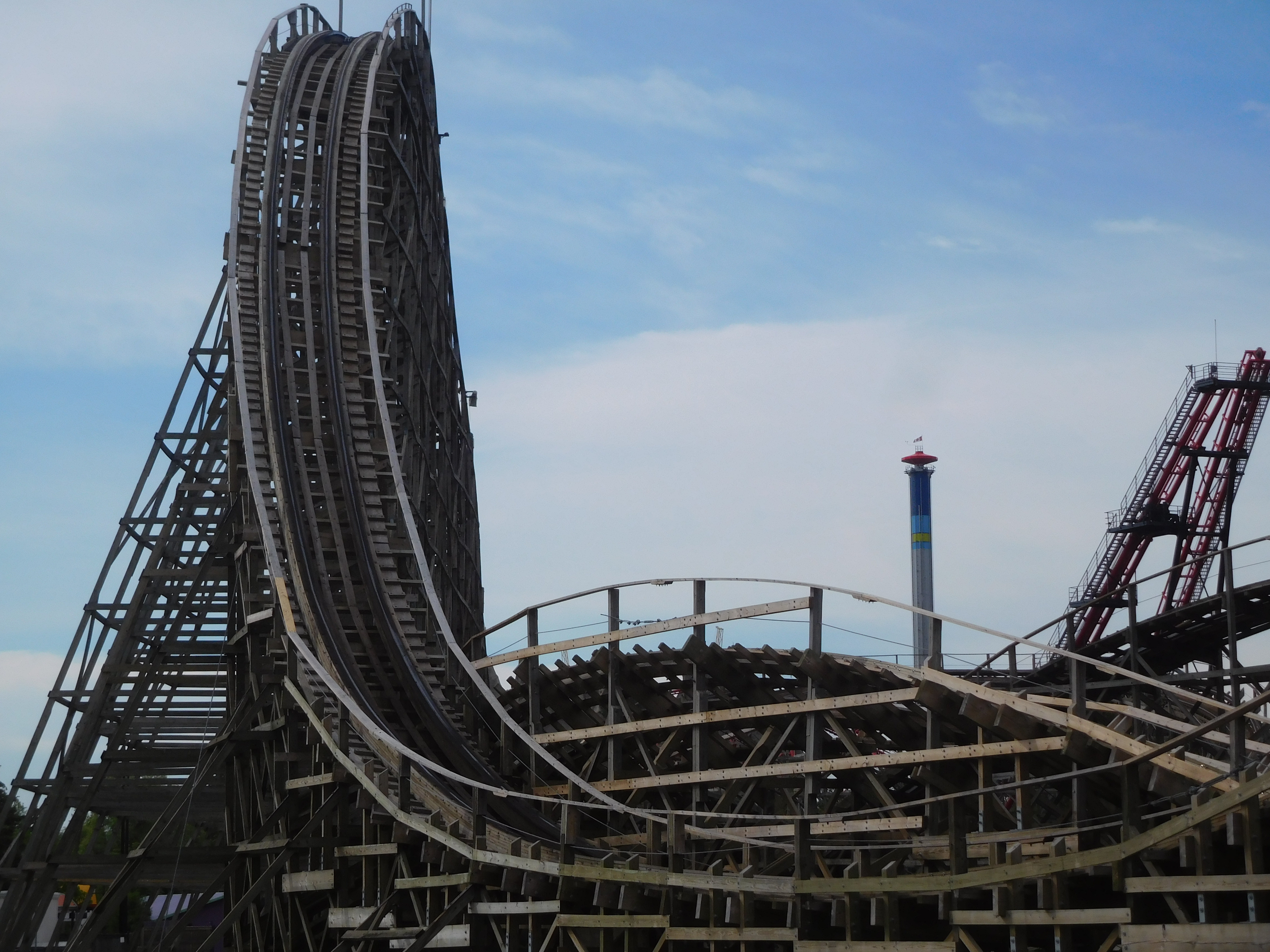 Sie ist eine von 5 Achterbahnen, die noch seit dem Eröffnungsjahr 1981 bestehen. Von den beiden großen Holzachterbahn ist sie die ganz minimal höhere und etwas längere Bahn. Der Hersteller ist Curtis D. Summers. Auch hier war die Warteschlange nicht kurz, doch bei guter Abfertigung im 2-Zug-Betrieb mussten wir keine 15 Minuten warten.