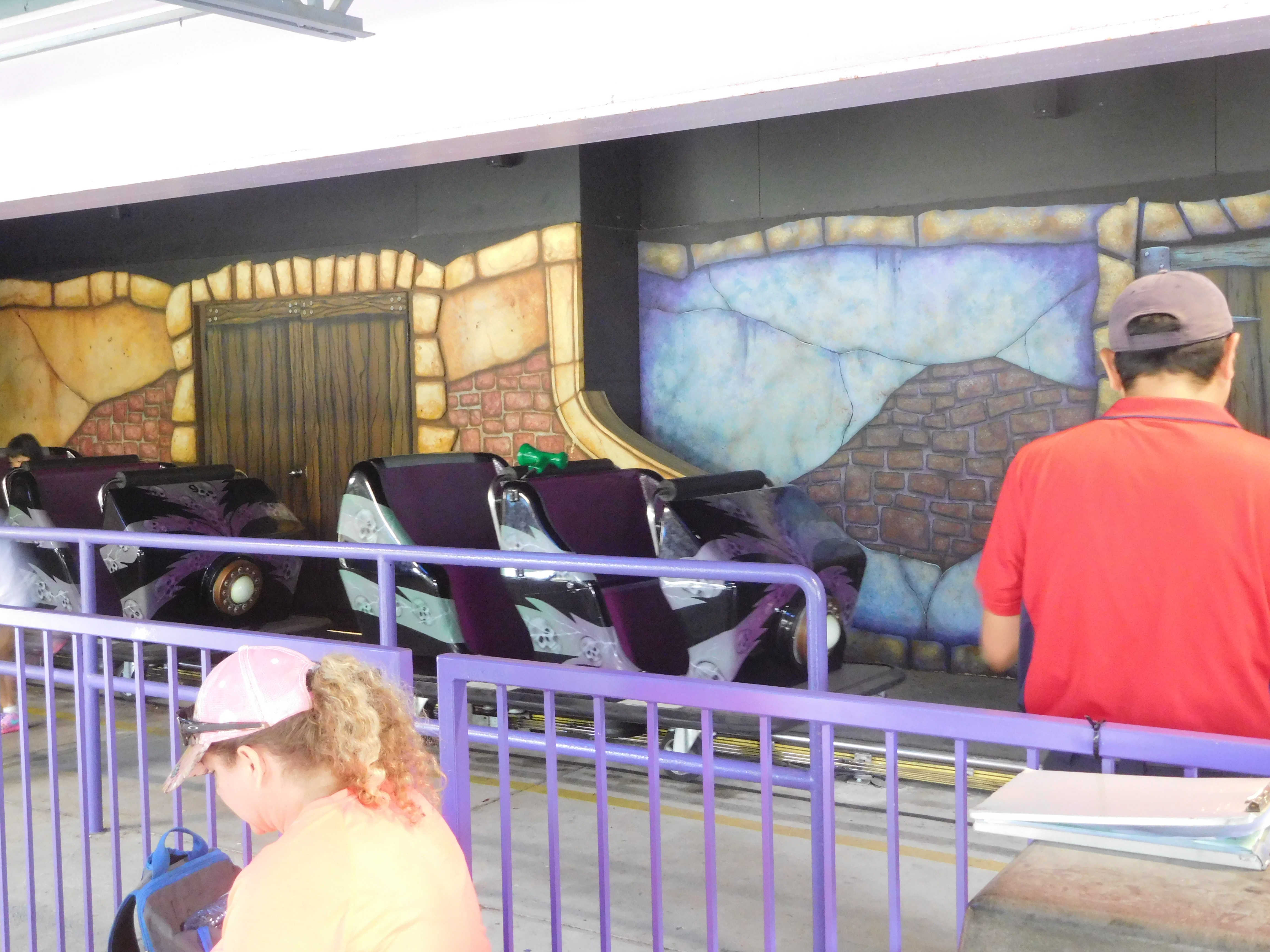 Hier gab es das gewohnte Bild: Es sah nach einer ordentlichen Warteschlange aus, doch wir waren bereits nach 10 Minuten dran. Doch gerade bei dieser Bahn war das kein Wunder. Das war einfach nur Wahnsinn, wie zügig hier im 2-Zug-Betrieb abgefertigt wurde! Irgendwo war glaube ich auch eine Auszeichnung für die beste Crew des Parks zu sehen. Die Gates werden geöffnet und kaum ist man drin, werden sie auch wieder geschlossen. Alle flugs rein in den Zug und los gehts!
