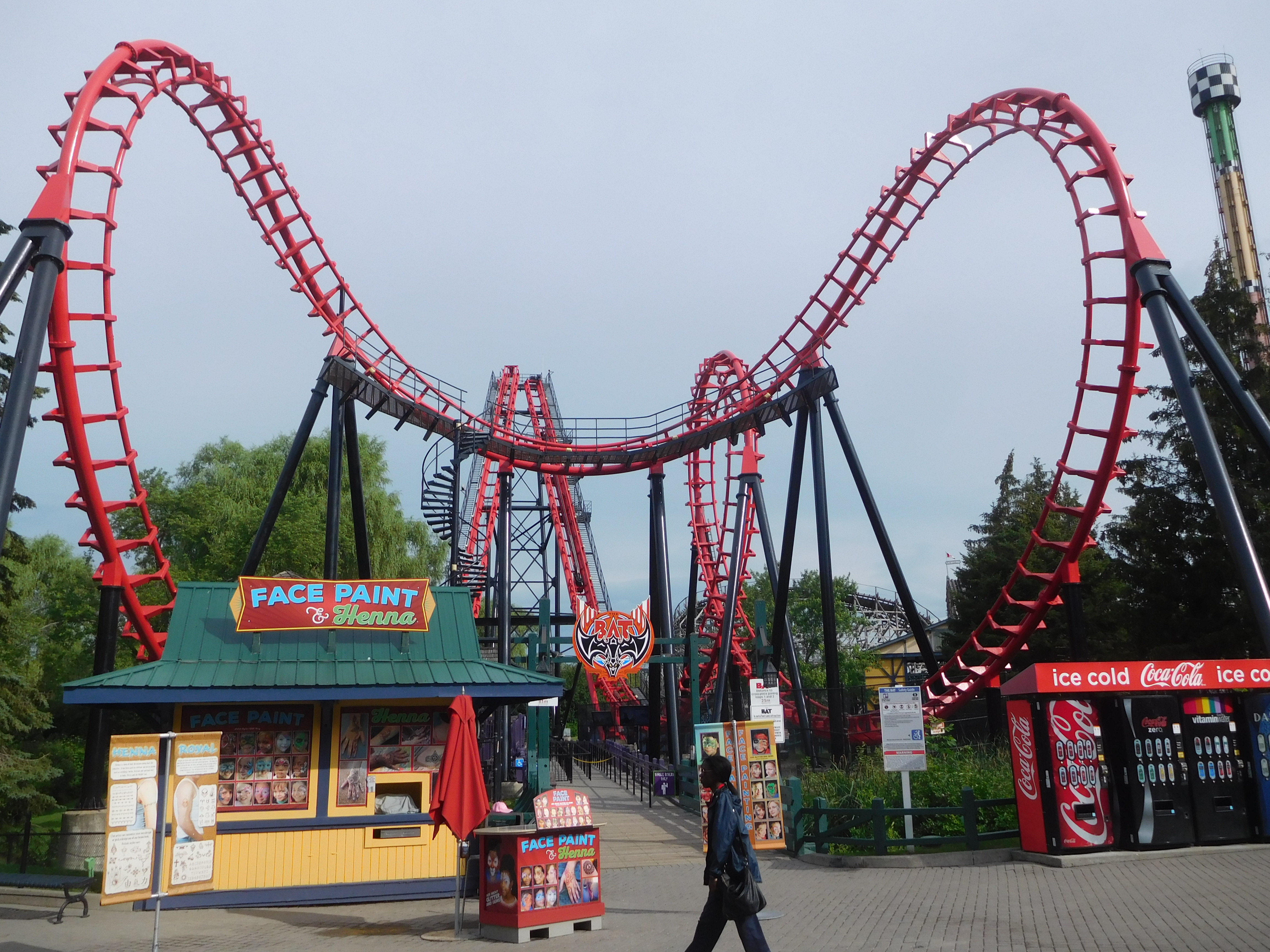 Die Rucksackkontrolle funktionierte problemlos und auch an den Bahnen konnte man sie bis auf einer Ausnahme überall deponieren oder mit in den Wagen nehmen. Water Fountains gab es auch sehr viele. Im Gegensatz zu den anderen Parks der Tour waren sie hier auch sehr beliebt. Öfter musste man auch mal kurz warten. Wobei es wohl auch am Wetter lag. Denn anders als erwartet, wurde es weiter nördlich immer wärmer. Natürlich war mittlerweile Juli, doch gefühlt waren die beiden Tage in Canadas Wonderland die beiden wärmsten Tage der Tour. Immerhin war es eine trockene Hitze, sodass sie nicht den Spaß einschränkte. Da der Park eh nur wenige Indoor-Attraktionen besitzt, waren wir über das trockene Wetter sicher auch nicht böse.