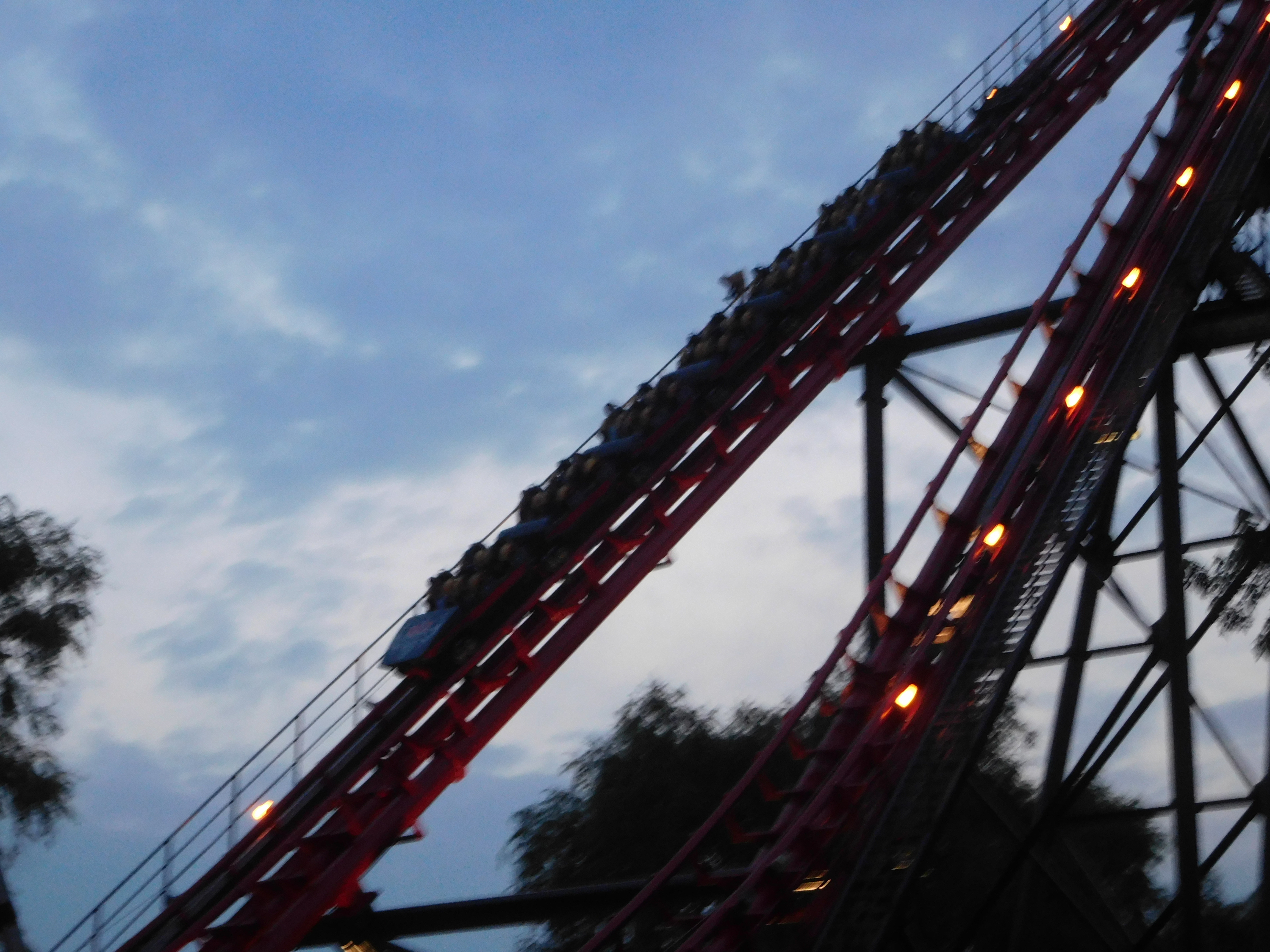 First Drop gibt es auch hier ein ganz minimal unruhiges Fahrverhalten, allerdings nicht so stark wie bei Behemoth. Auch aus diesem Grund, doch vor allem weil der Fahrtwind einfach so unglaublich ist, habe ich hier tatsächlich die Front Row der Last Row vorgezogen. Der Ausblick in der Dunkelheit ist natürlich auch super.