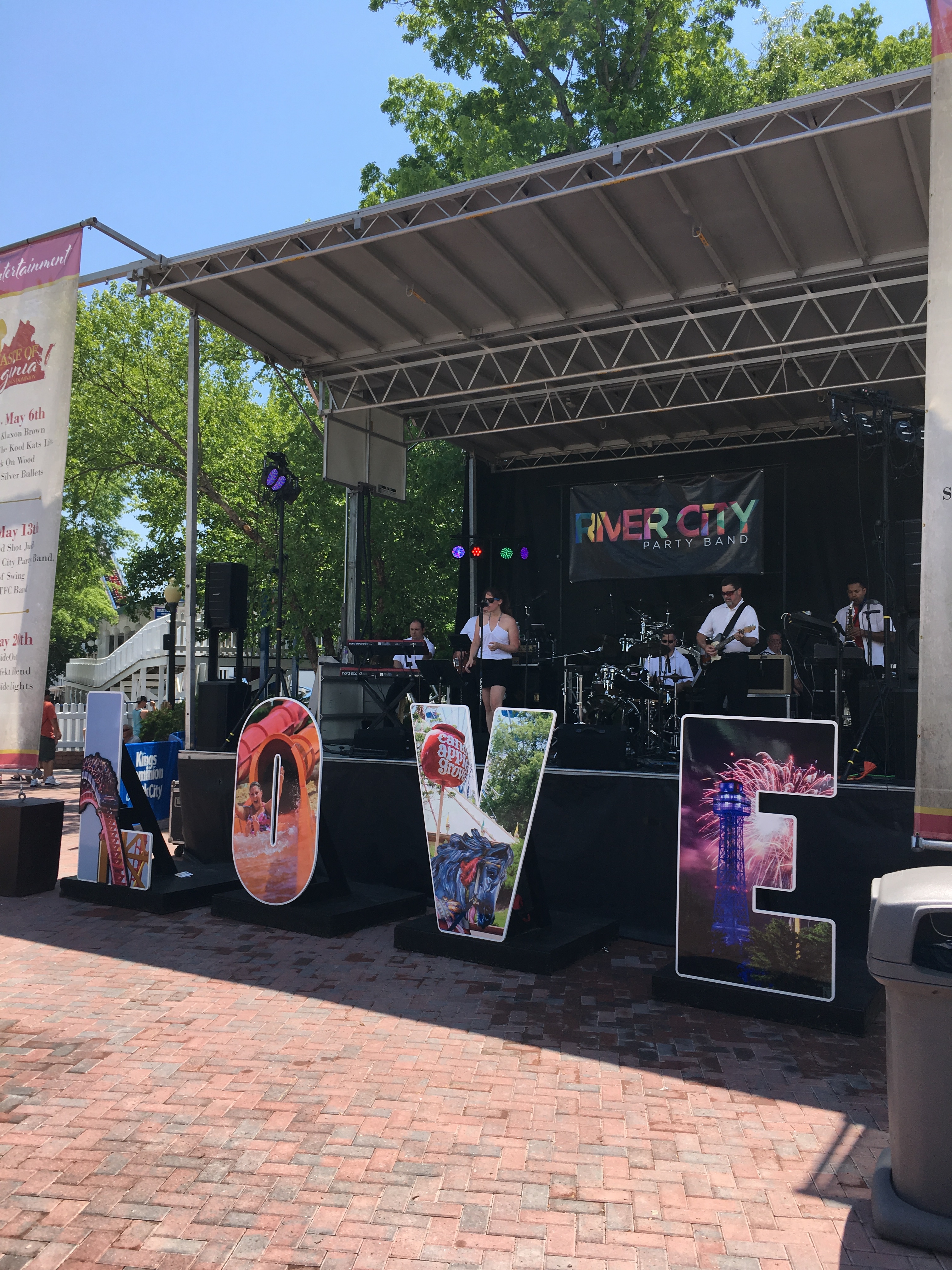 Wie auch bei unseren anderen Parkbesuchen in den Tagen zuvor gab es auch in Kings Dominion an diesem Samstag musikalische Untermalung: Es wurde ein Musikwettstreit vom Park ausgerufen und viele Jugendorchester folgten dem Ruf.