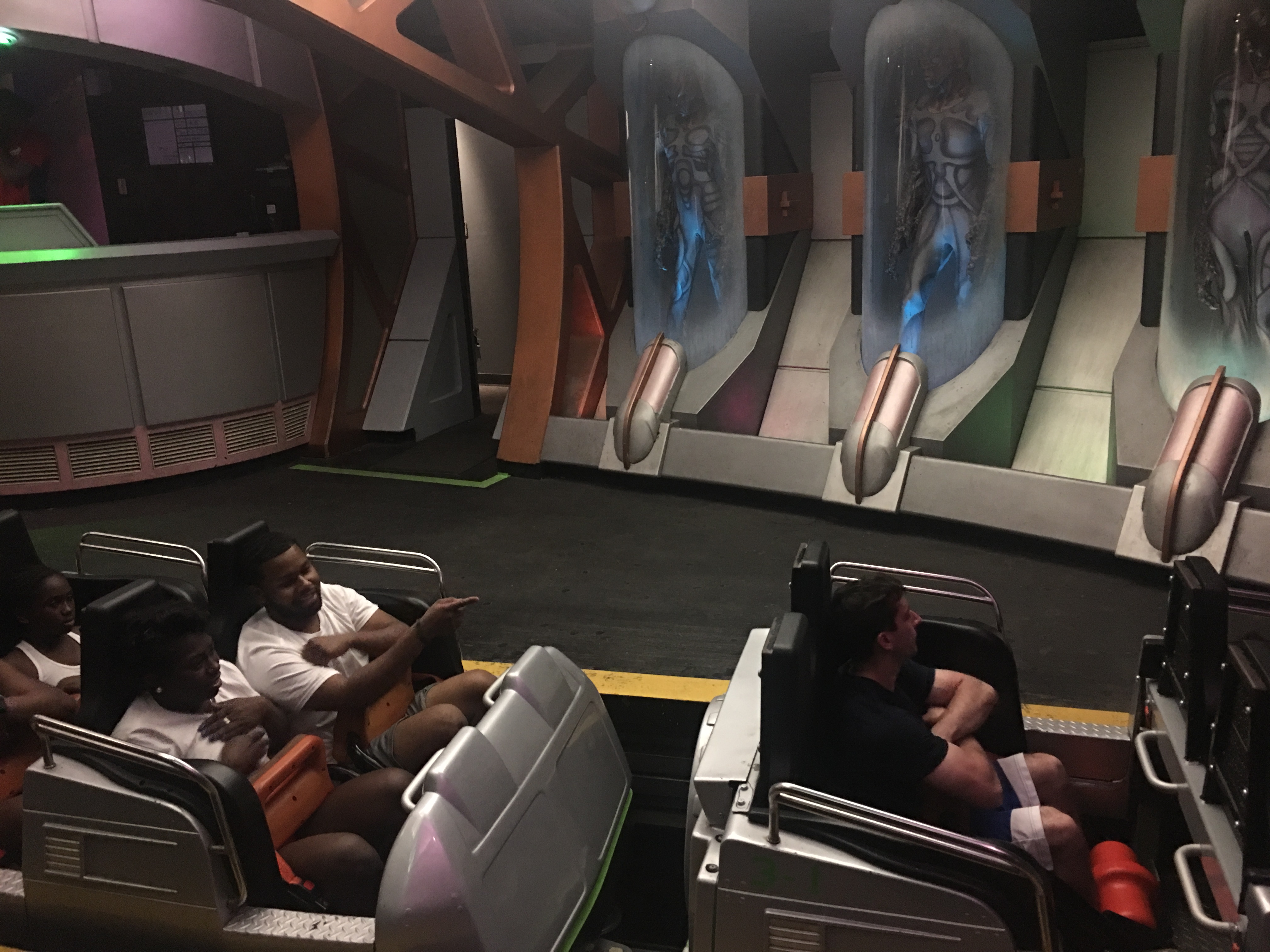 Die Probleme und Wartezeiten bleiben den Tag über, wenn man der Park-App Glauben schenken darf. Wir tuen dies und die First Row-Fahrt, die jetzt folgt, bleibt unsere einzige Experience auf Twisted Timbers an diesem Samstag. Später im Verlauf des Tages klettert die Wartezeit auf bis zu 150 Minuten.