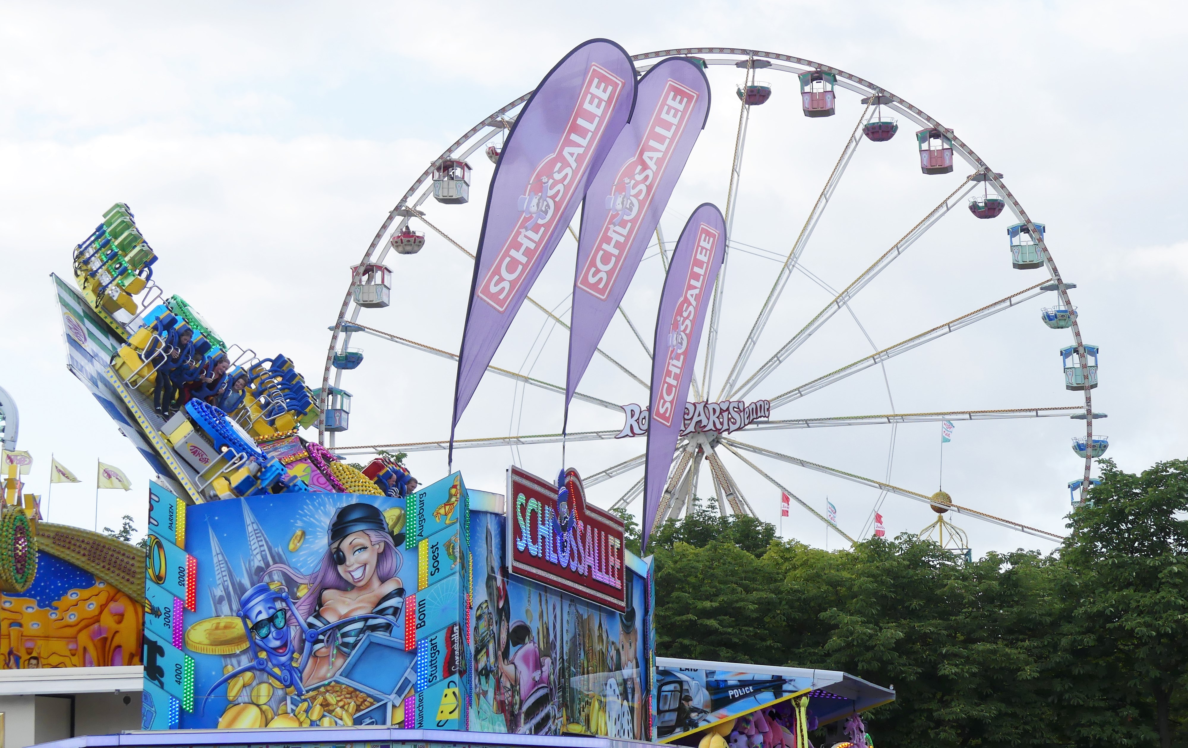 Das Riesenrad wurde wie so oft in der Mitte des Schlossplatzes aufgebaut. Bei dieser Sommerausgabe war es das Roue Parisienne von Burghard-Kleuser.