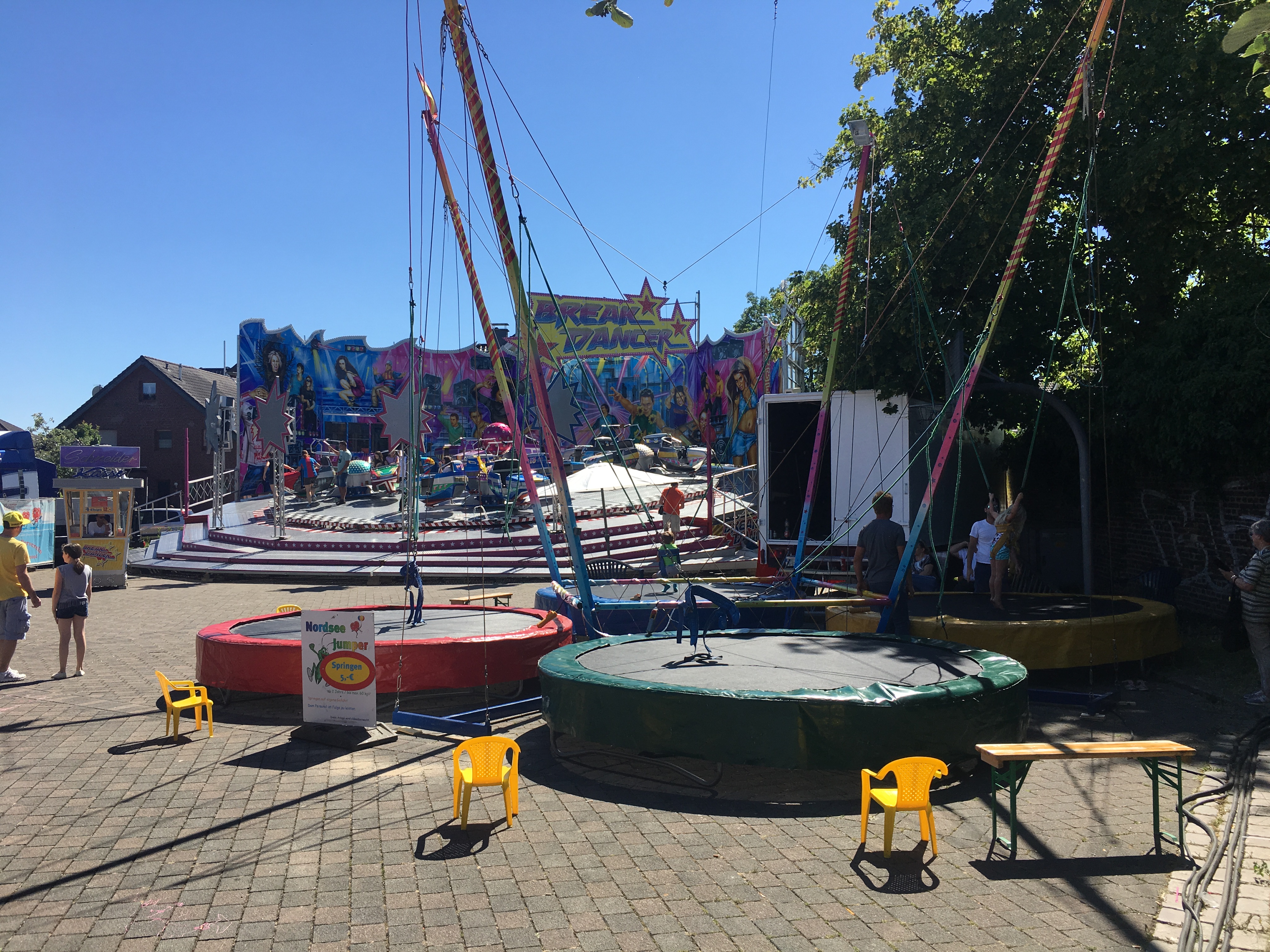 Andere Stadtteile halten erfolgreich ihre jährlichen Veranstaltungen: Huckarde, Lütgendortmund, Applerbeck und die Innenstadtveranstaltung zu Karneval oder die Osterkirmes am Fredenbaum sind Dortmunder Veranstaltungen mit Bestand. In Bodelschwingh war ich nun zum ersten Mal. Im Prinzip befinden sich die Buden und Geschäfte entlang zweier Straßen: Deinighauser Str. und Im Odemsloh, die zum Endplatz, dem Bodelschwingher Dorfplatz führt. Auf letzterem findet man neben Gastrononie und Kinderhüpfanlage der Kesseltanz von Reminder und der Breakdancer von Schneider. Es ist der letzte Tag der Veranstaltung und die sommerlichen Temperaturen rufen eher den Schwimmbad-Besuch auf den Plan. Ich meine irgendwo aufgeschnappt zu haben, dass es ZWEI Mal fahren für EINmal bezahlen (für Kinder) gab.