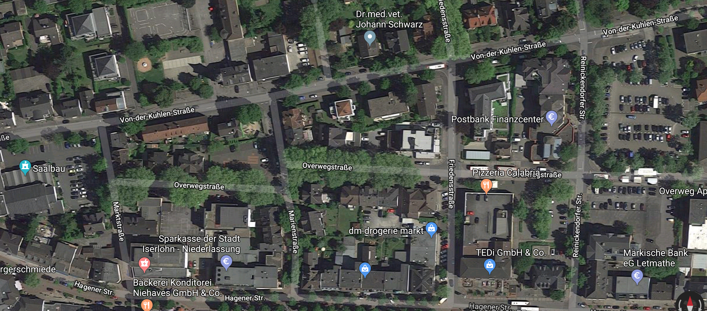 Die Kirmes findet zwischen dem Saalbau Vorplatz, entlang der Overwegstraße bis zu den beiden Parklplätzen auf der rechten Seite des Fotos statt. Falls jemand Tipps zum Parken hat, gerne hier reinschreiben.
