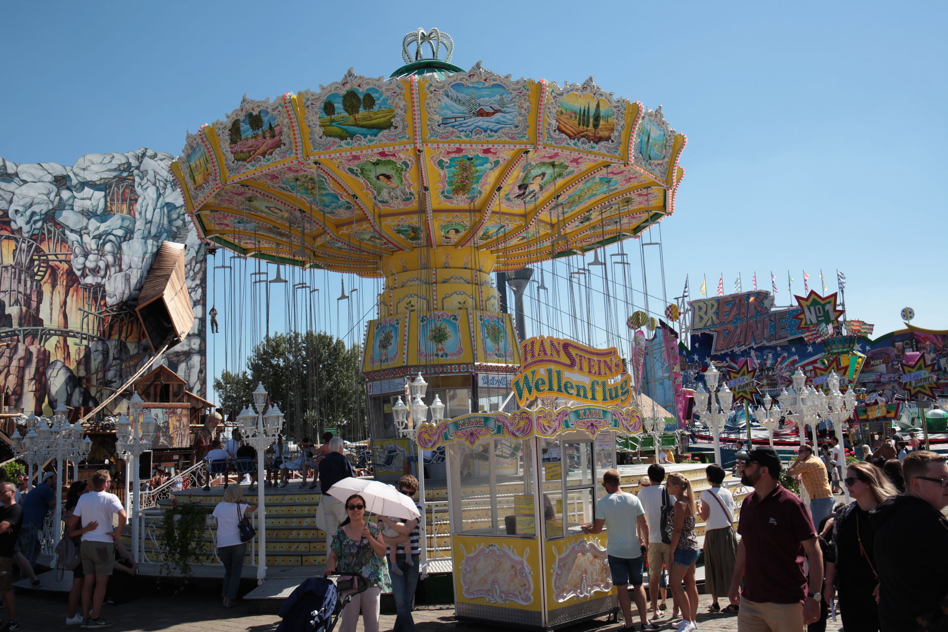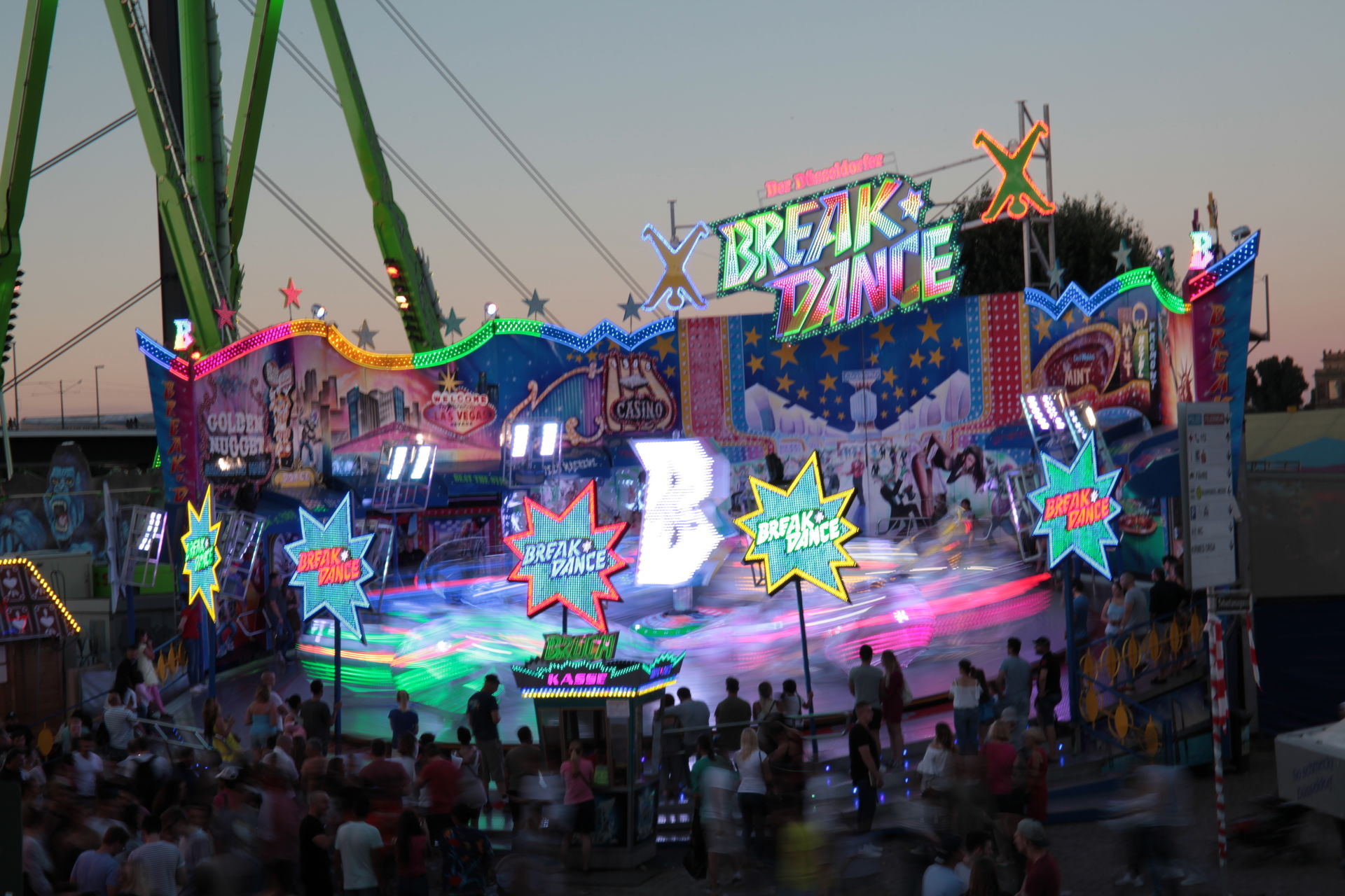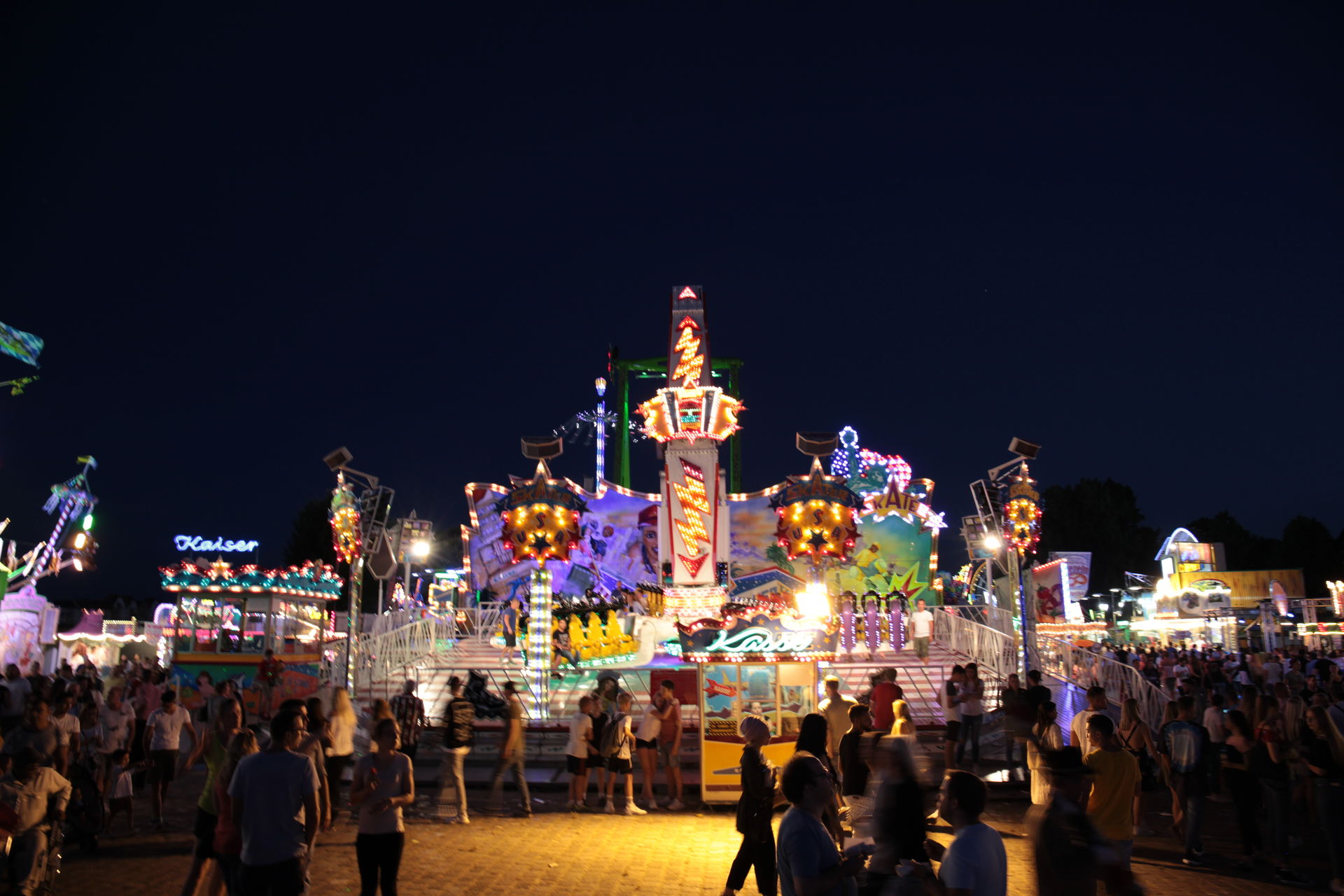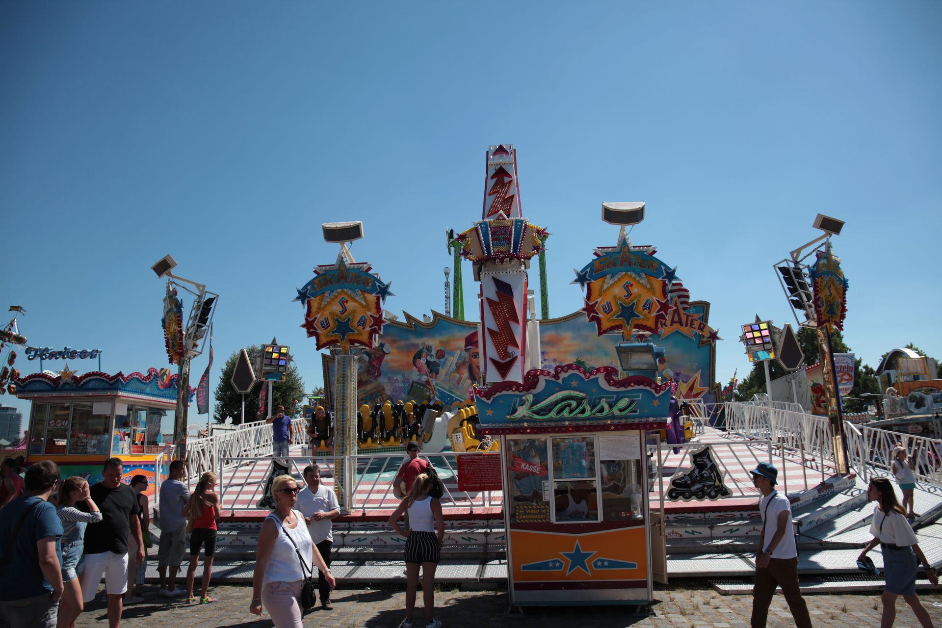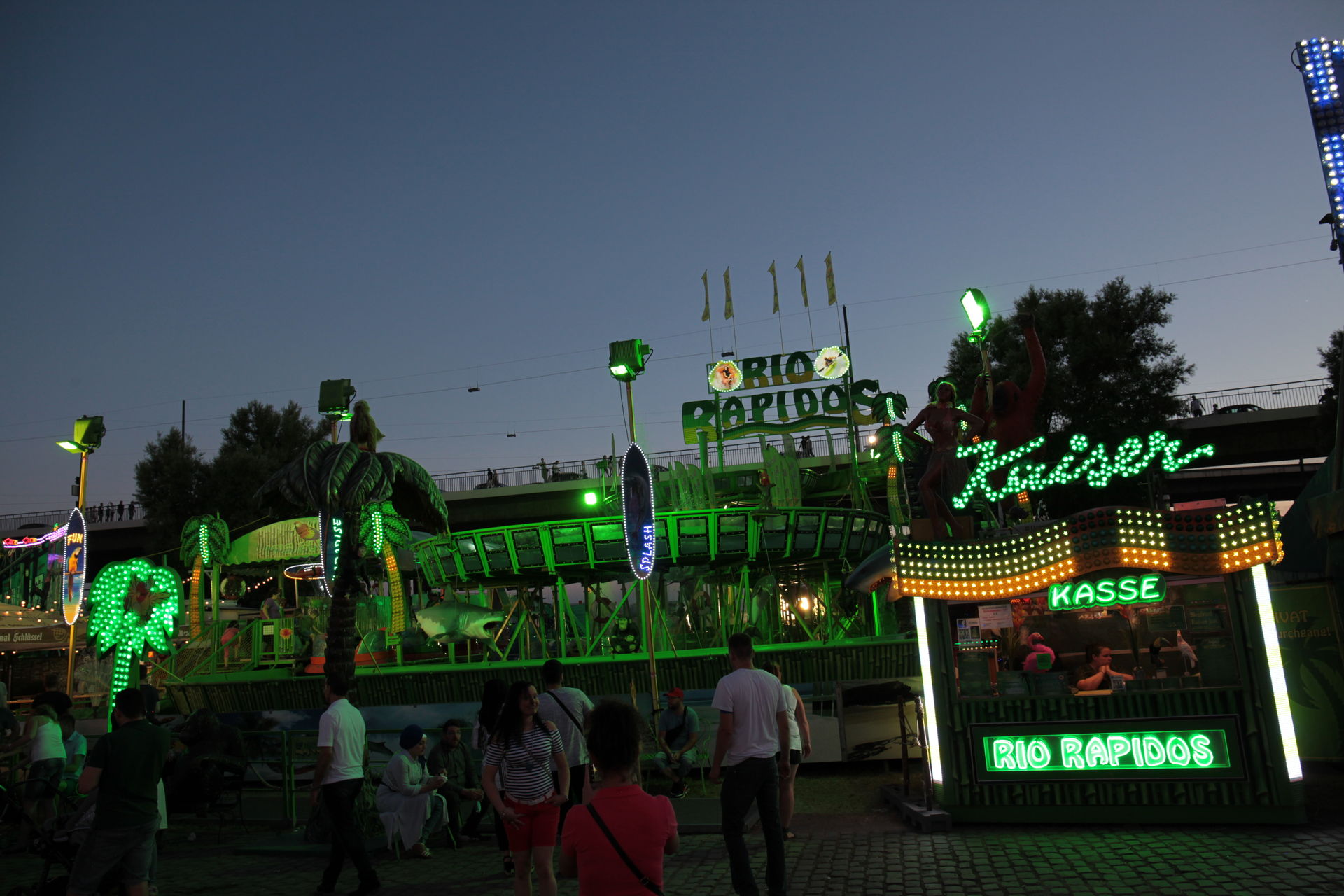 Dementsprechend ist das ganze auch Chronologisch sortiert, vom Nachmittag bis in die Nacht, nur unterbrochen durch einige Cool-Down-Phasen in der klimatisierten Kasse eines Rundfahrgeschäfts. Der Sonntag war - von wegen Ausnahmen - für die meisten Betreiber eine ziemliche Katastrophe. Es war heiß, stickig, WM-Finale und viele Besucher hatten nicht so viel Lust ein paar Euro in Fahrgeschäfte zu investieren.