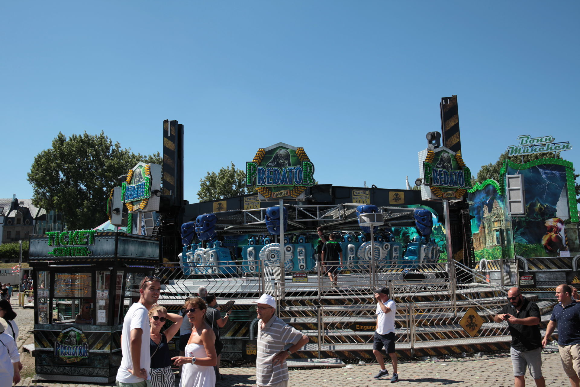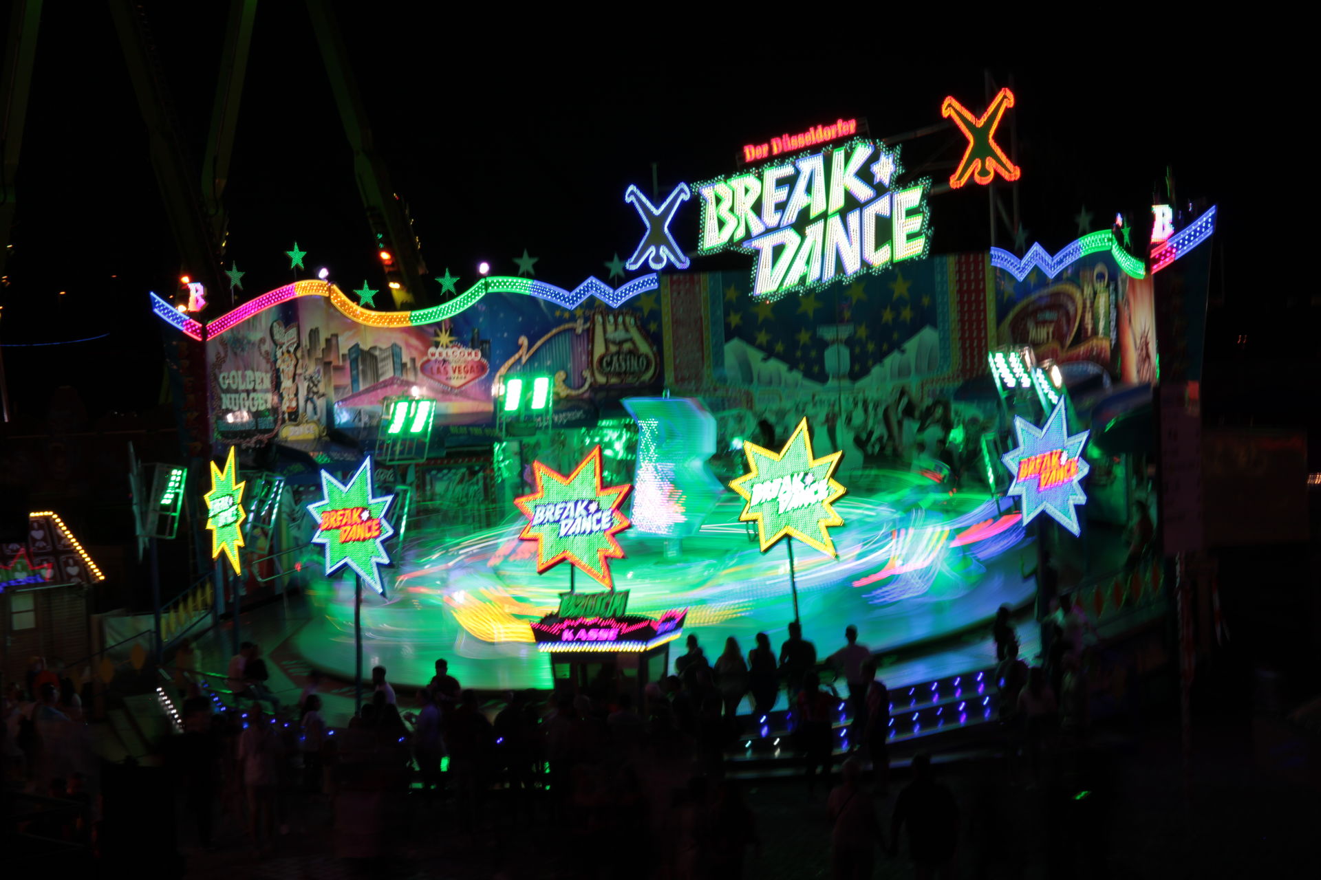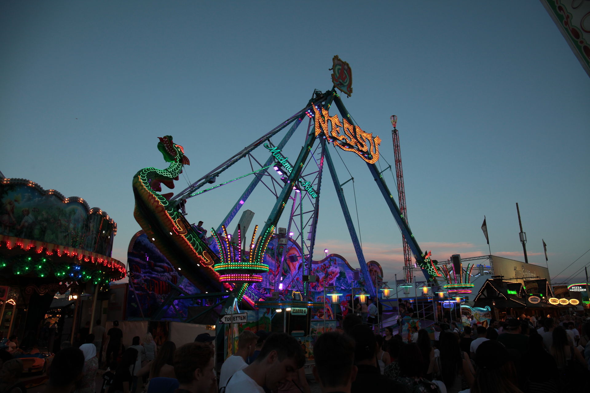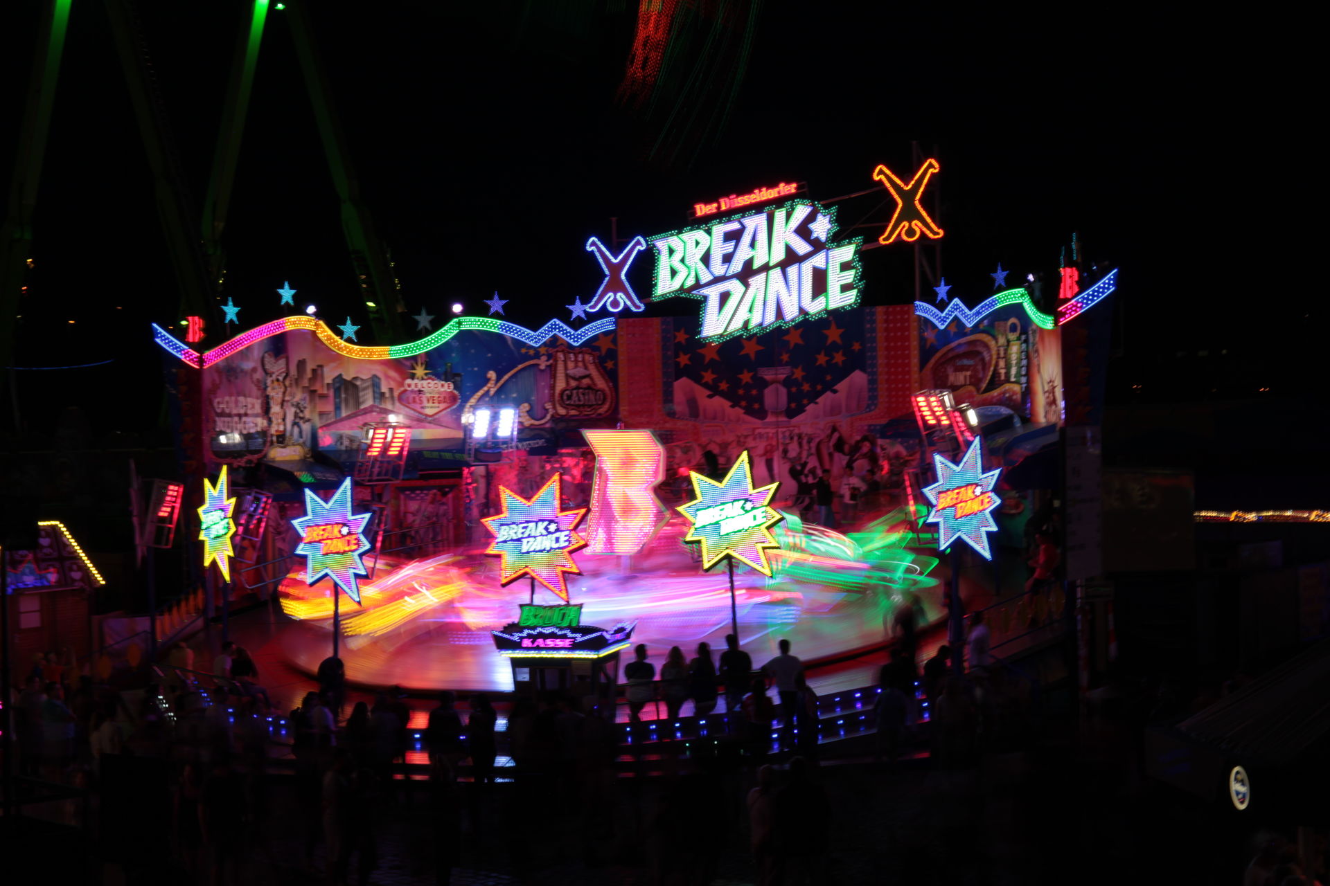 Dementsprechend ist das ganze auch Chronologisch sortiert, vom Nachmittag bis in die Nacht, nur unterbrochen durch einige Cool-Down-Phasen in der klimatisierten Kasse eines Rundfahrgeschäfts. Der Sonntag war - von wegen Ausnahmen - für die meisten Betreiber eine ziemliche Katastrophe. Es war heiß, stickig, WM-Finale und viele Besucher hatten nicht so viel Lust ein paar Euro in Fahrgeschäfte zu investieren.