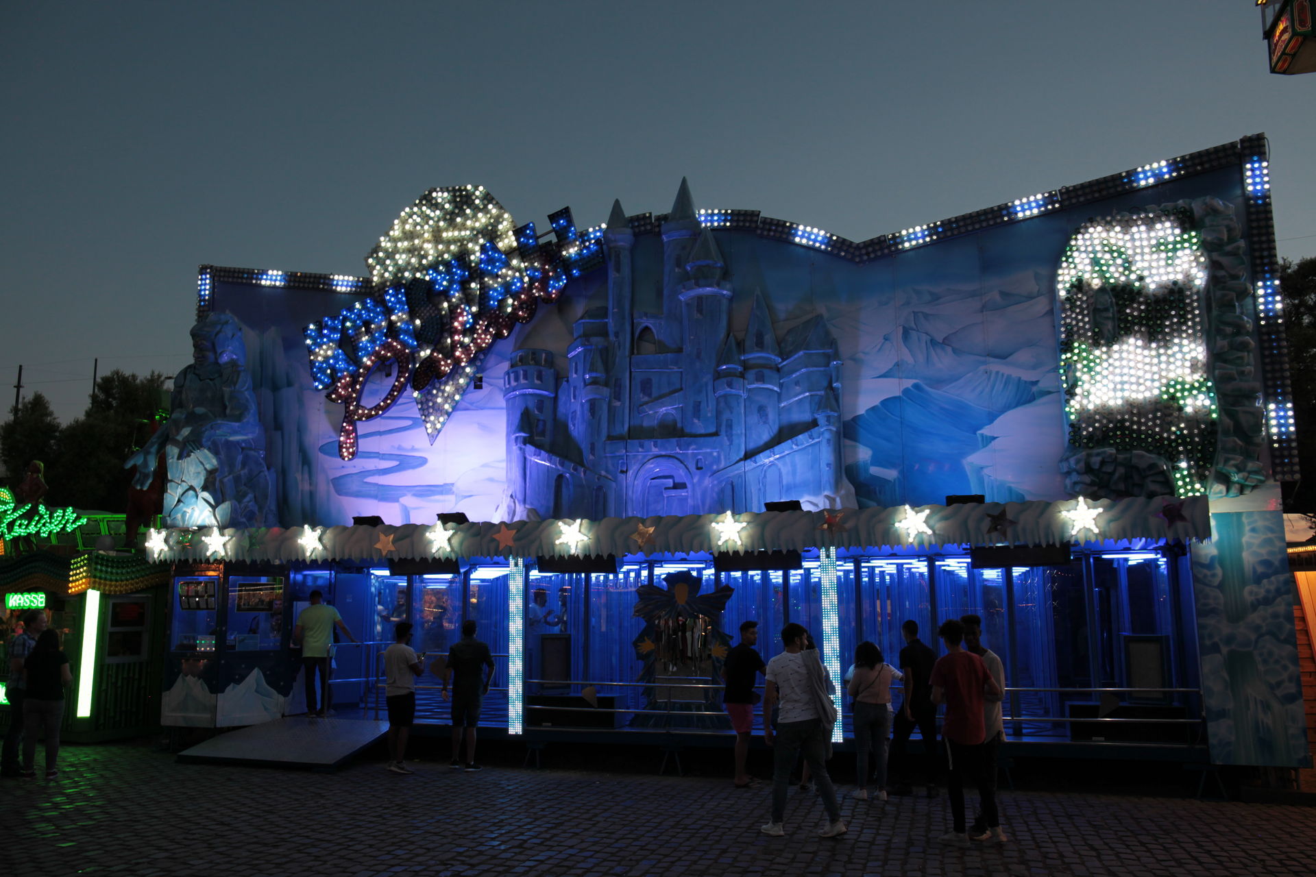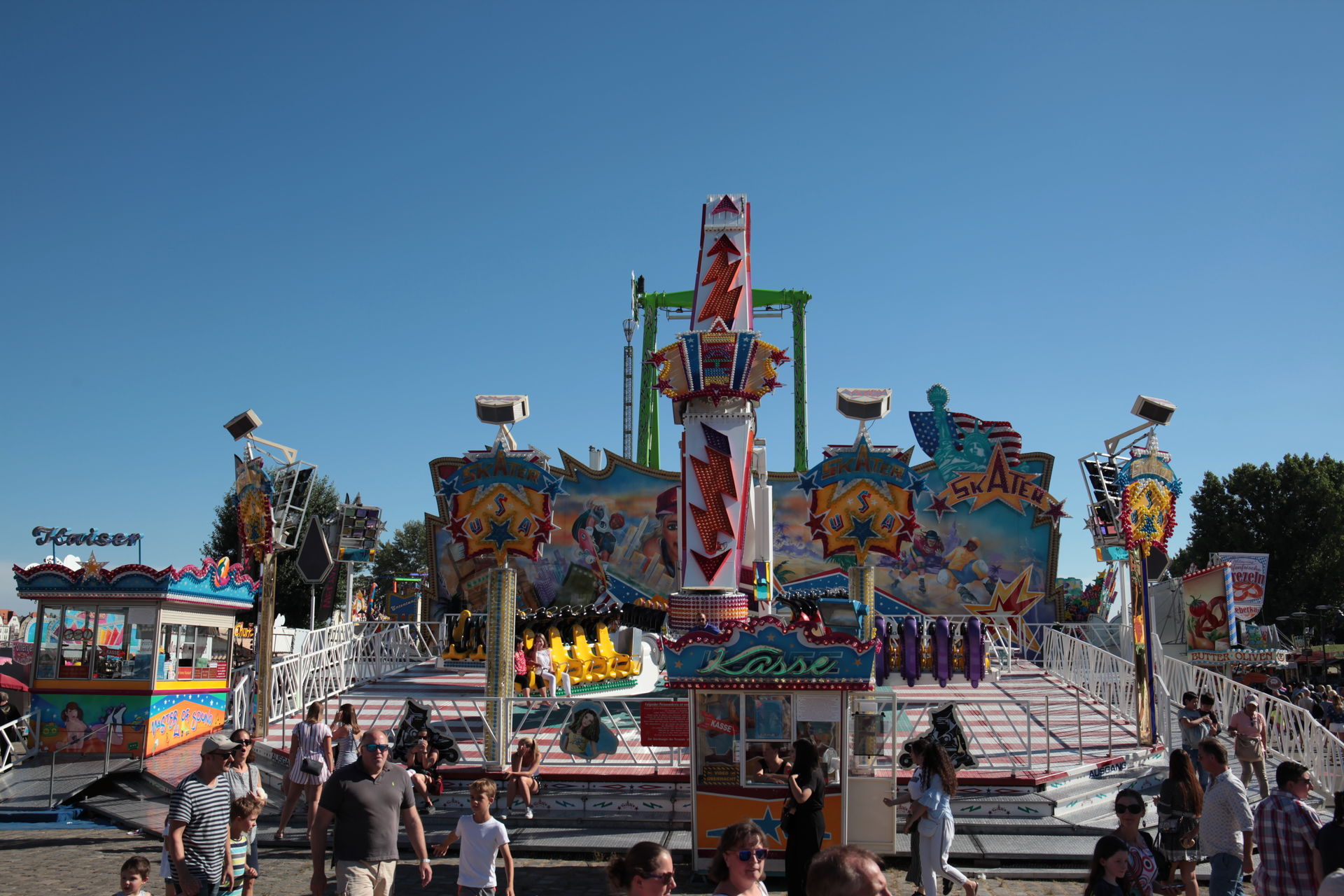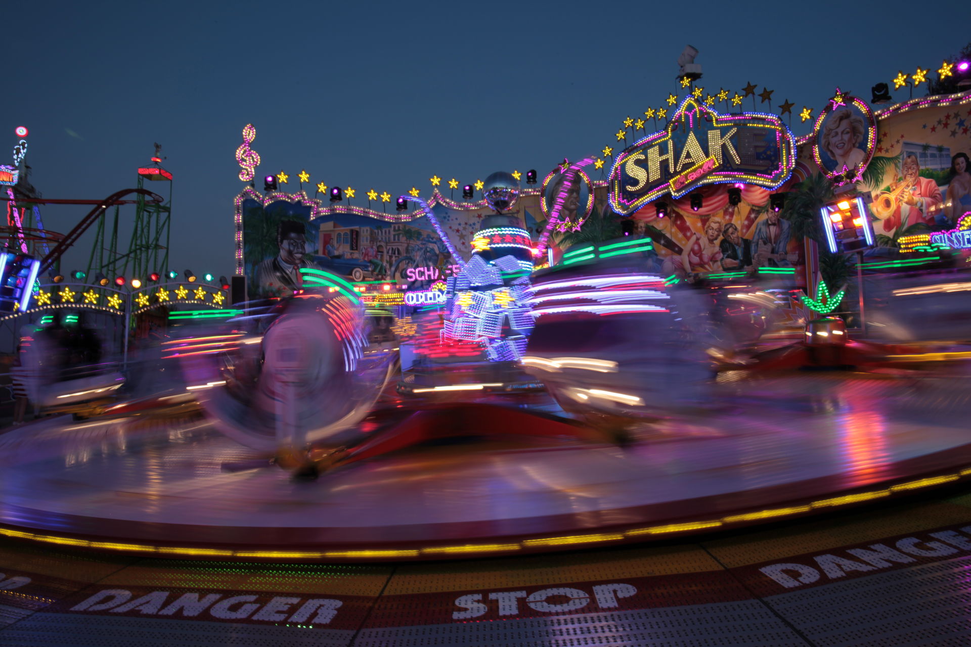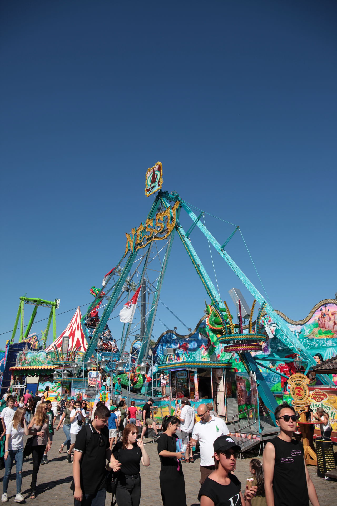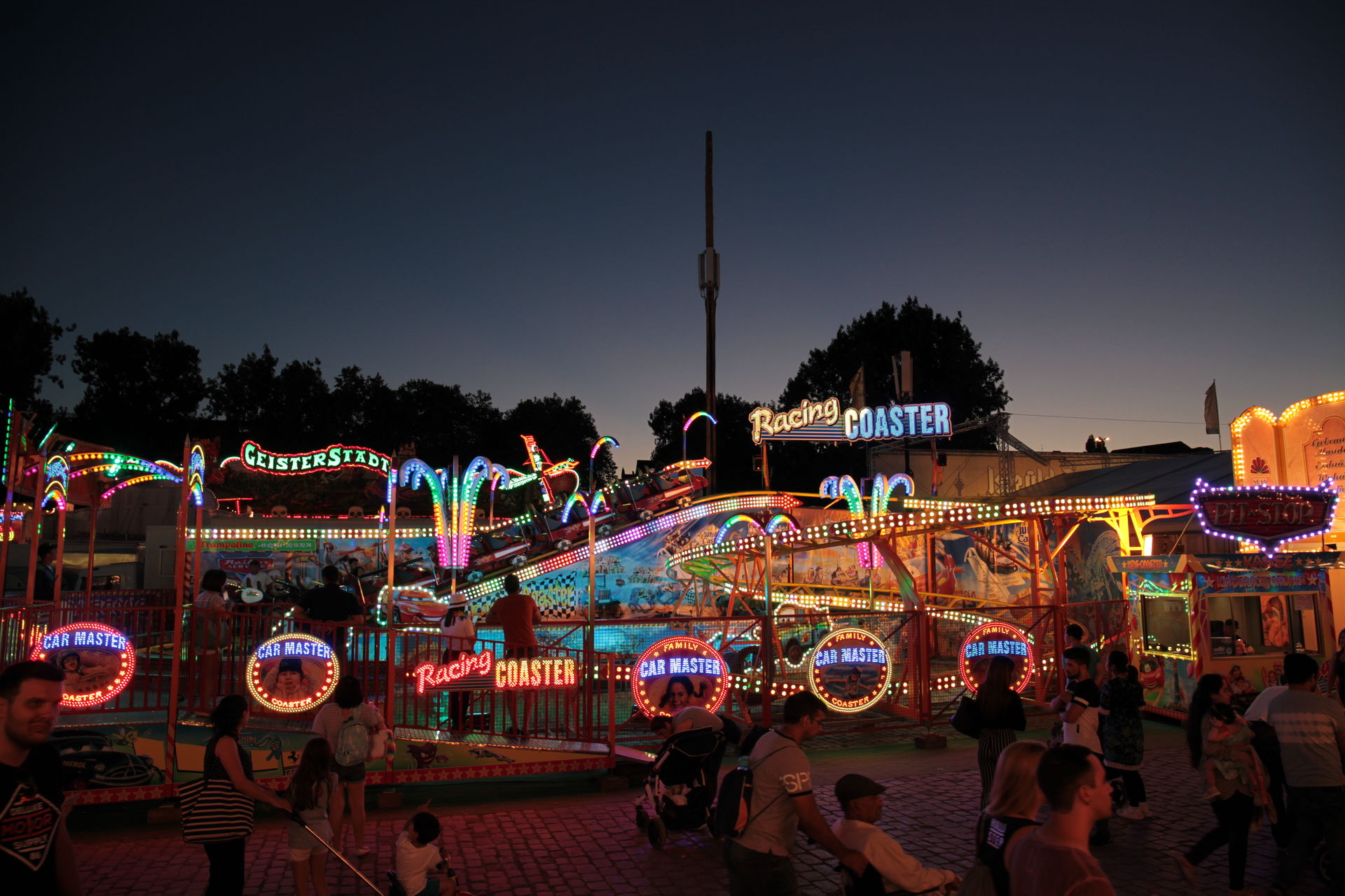 Dementsprechend ist das ganze auch Chronologisch sortiert, vom Nachmittag bis in die Nacht, nur unterbrochen durch einige Cool-Down-Phasen in der klimatisierten Kasse eines Rundfahrgeschäfts. Der Sonntag war - von wegen Ausnahmen - für die meisten Betreiber eine ziemliche Katastrophe. Es war heiß, stickig, WM-Finale und viele Besucher hatten nicht so viel Lust ein paar Euro in Fahrgeschäfte zu investieren.