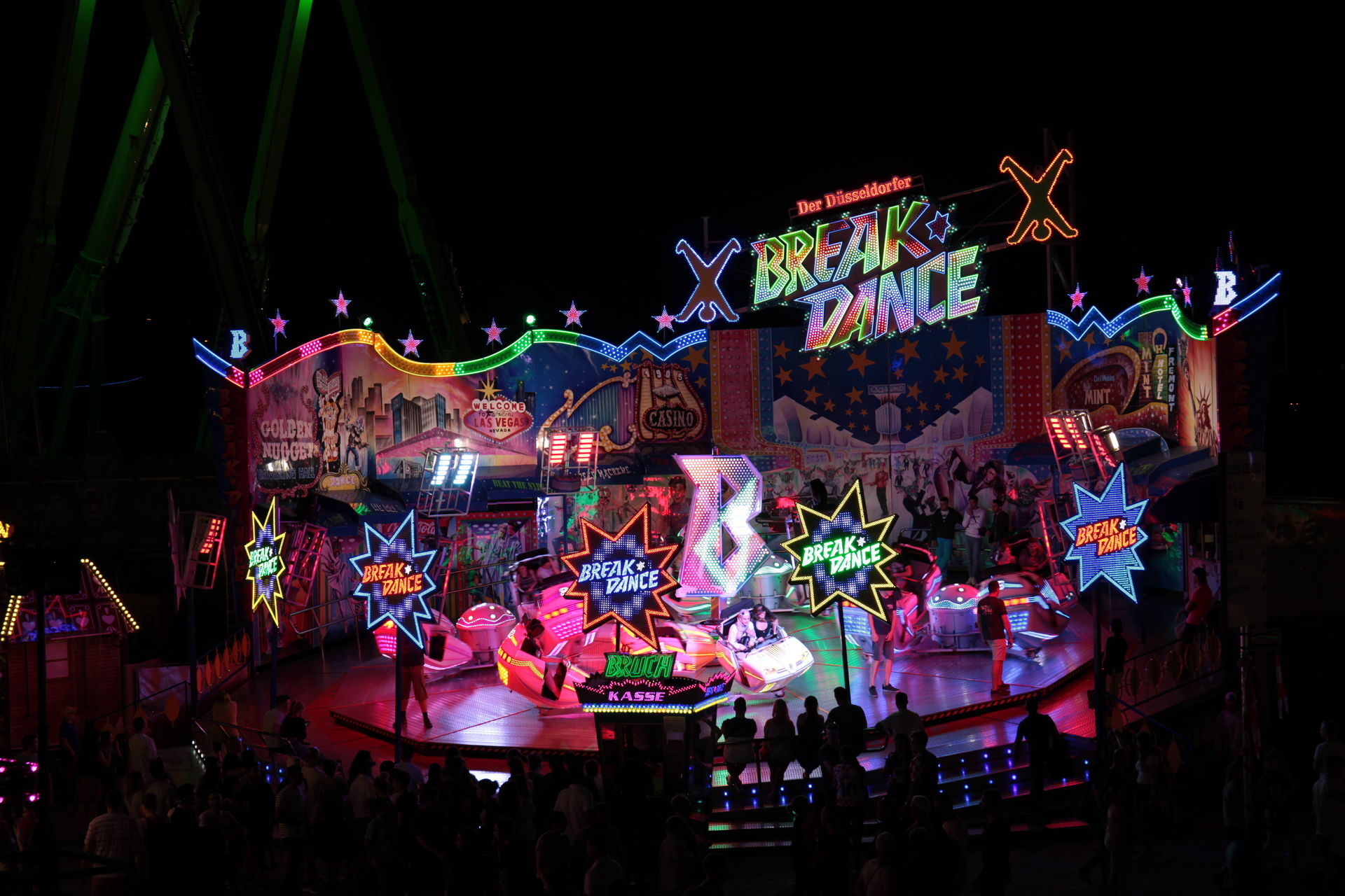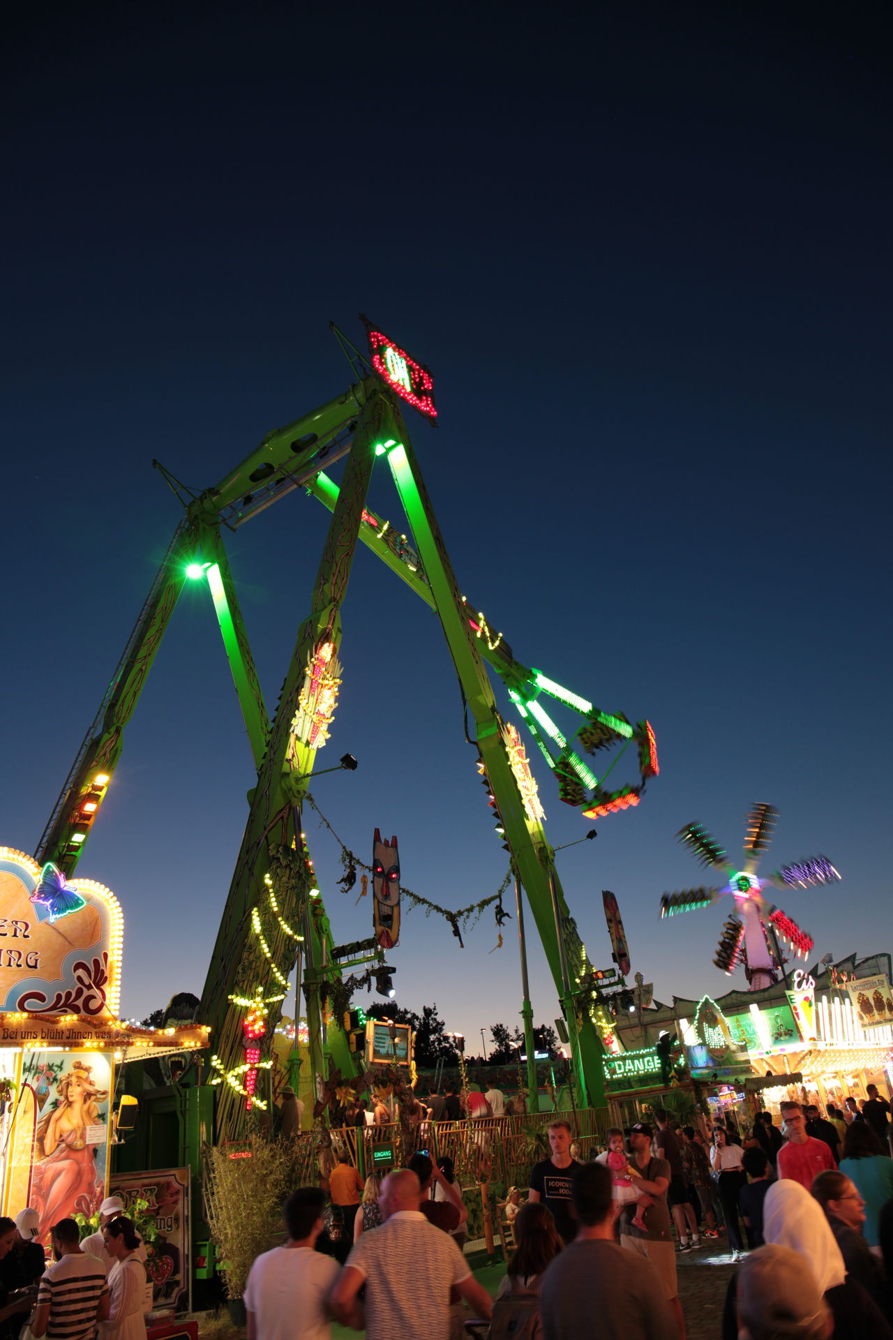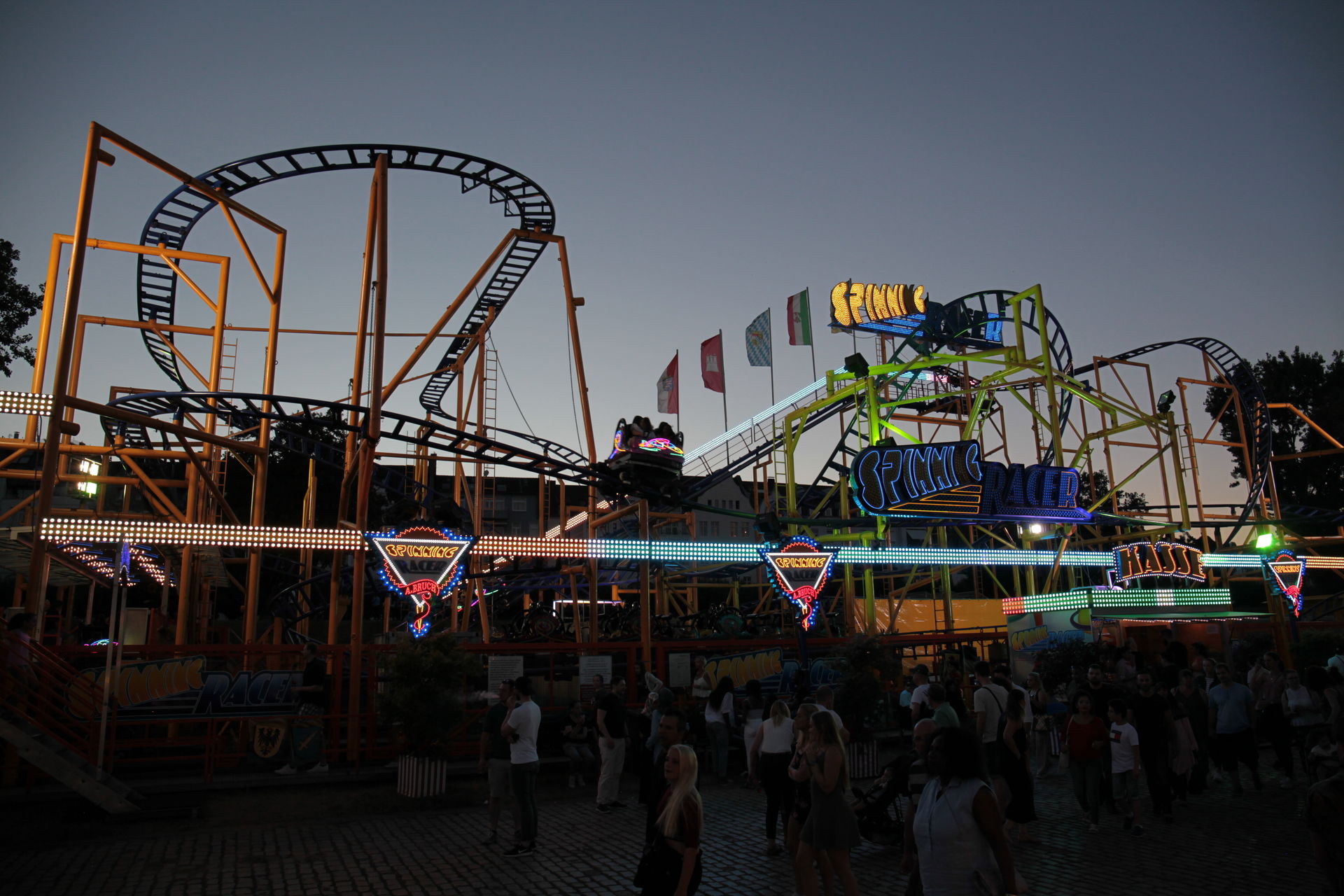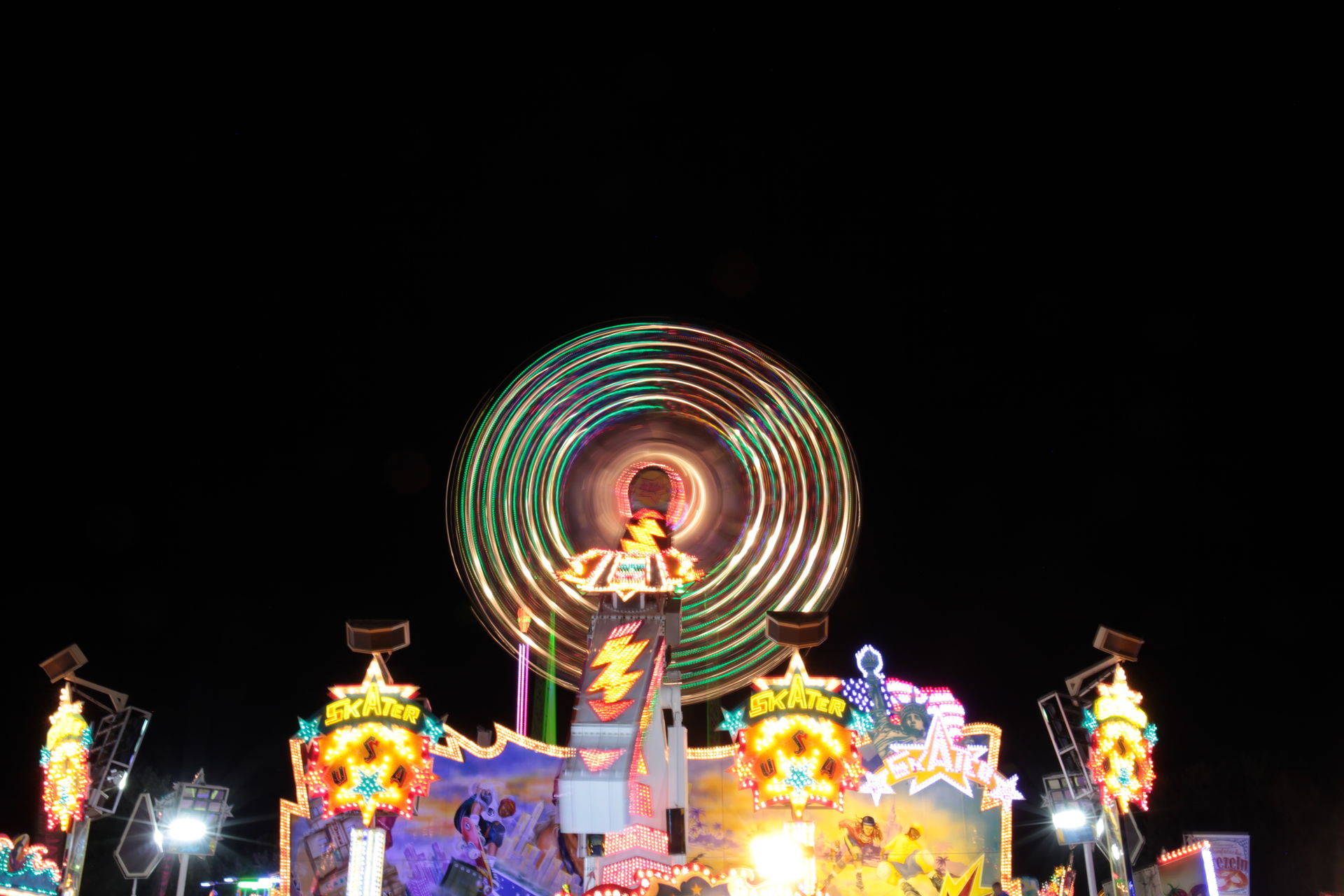 Dementsprechend ist das ganze auch Chronologisch sortiert, vom Nachmittag bis in die Nacht, nur unterbrochen durch einige Cool-Down-Phasen in der klimatisierten Kasse eines Rundfahrgeschäfts. Der Sonntag war - von wegen Ausnahmen - für die meisten Betreiber eine ziemliche Katastrophe. Es war heiß, stickig, WM-Finale und viele Besucher hatten nicht so viel Lust ein paar Euro in Fahrgeschäfte zu investieren.