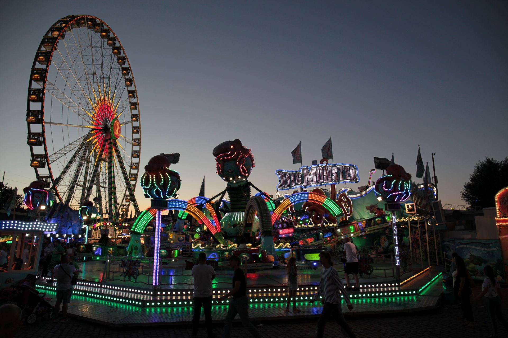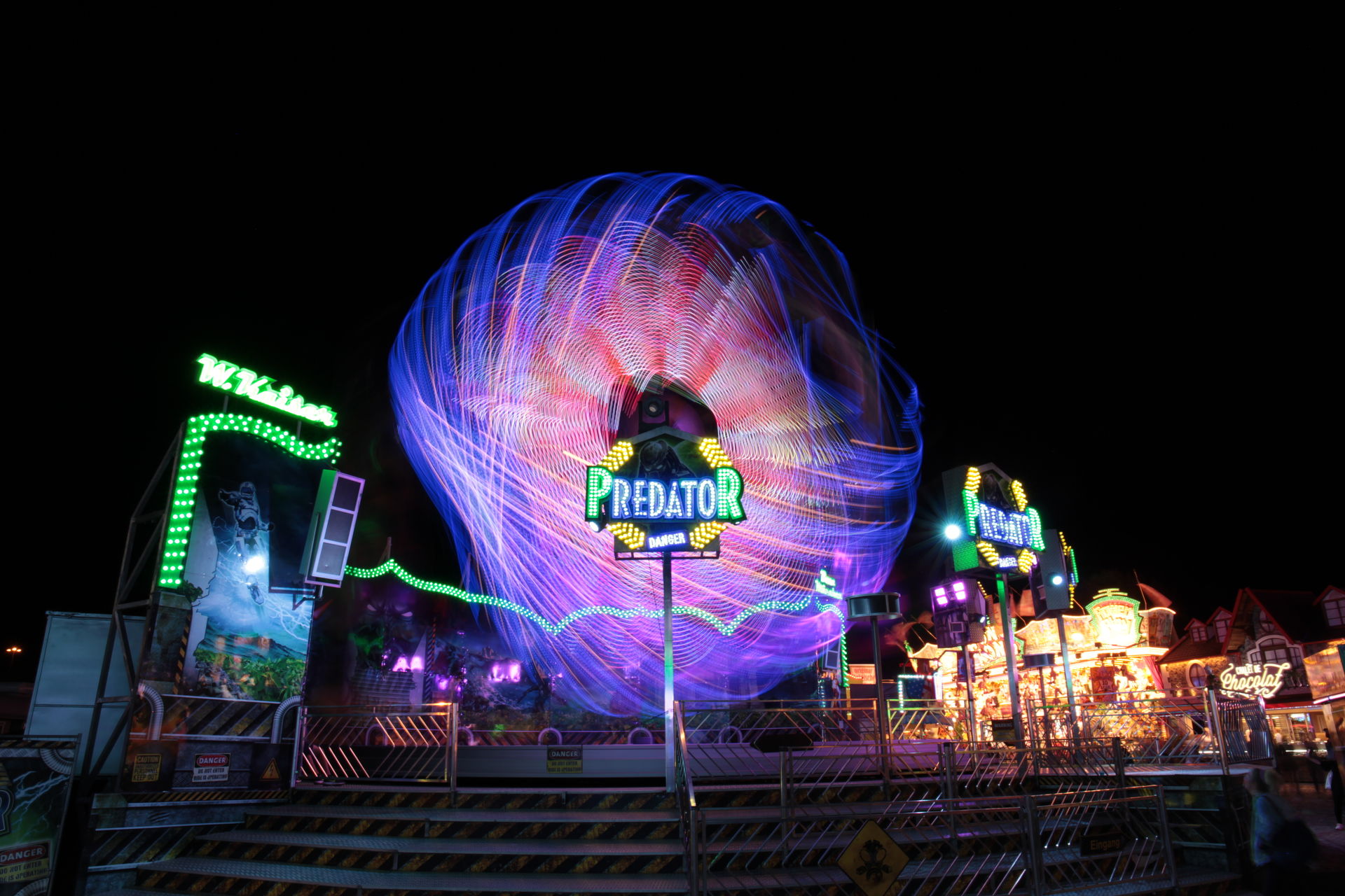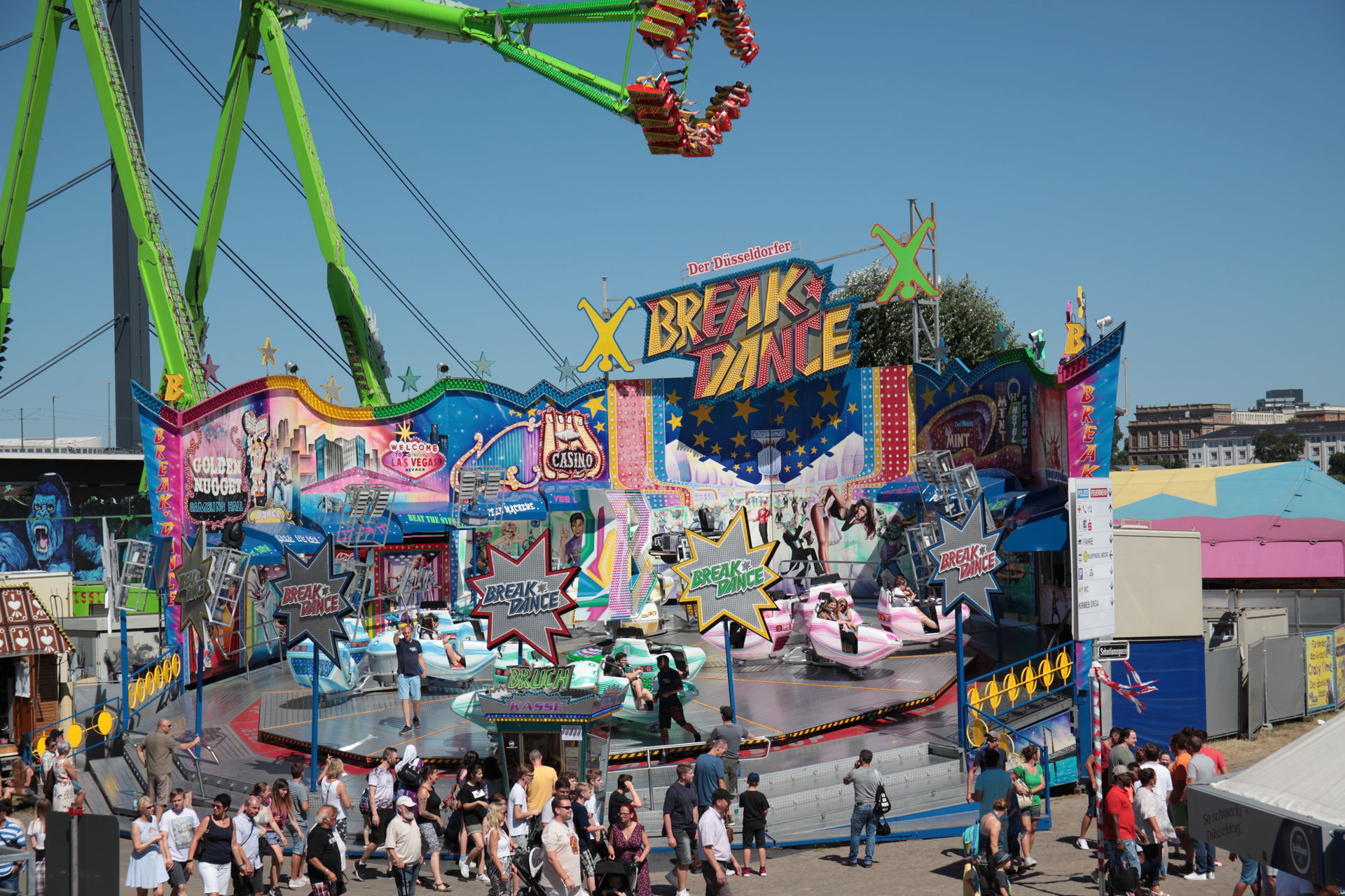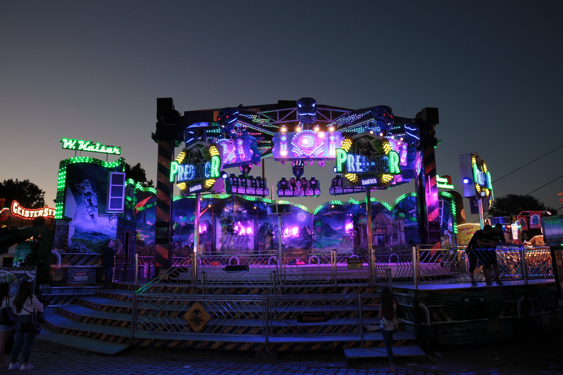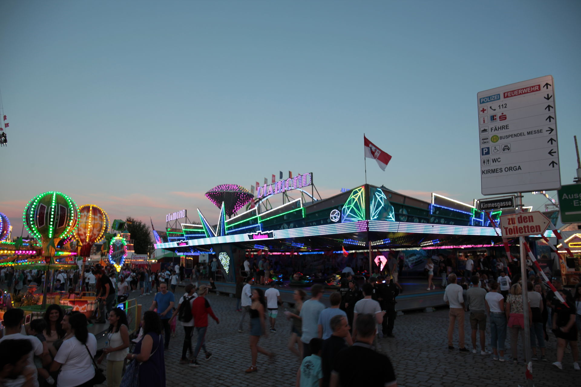 Dementsprechend ist das ganze auch Chronologisch sortiert, vom Nachmittag bis in die Nacht, nur unterbrochen durch einige Cool-Down-Phasen in der klimatisierten Kasse eines Rundfahrgeschäfts. Der Sonntag war - von wegen Ausnahmen - für die meisten Betreiber eine ziemliche Katastrophe. Es war heiß, stickig, WM-Finale und viele Besucher hatten nicht so viel Lust ein paar Euro in Fahrgeschäfte zu investieren.