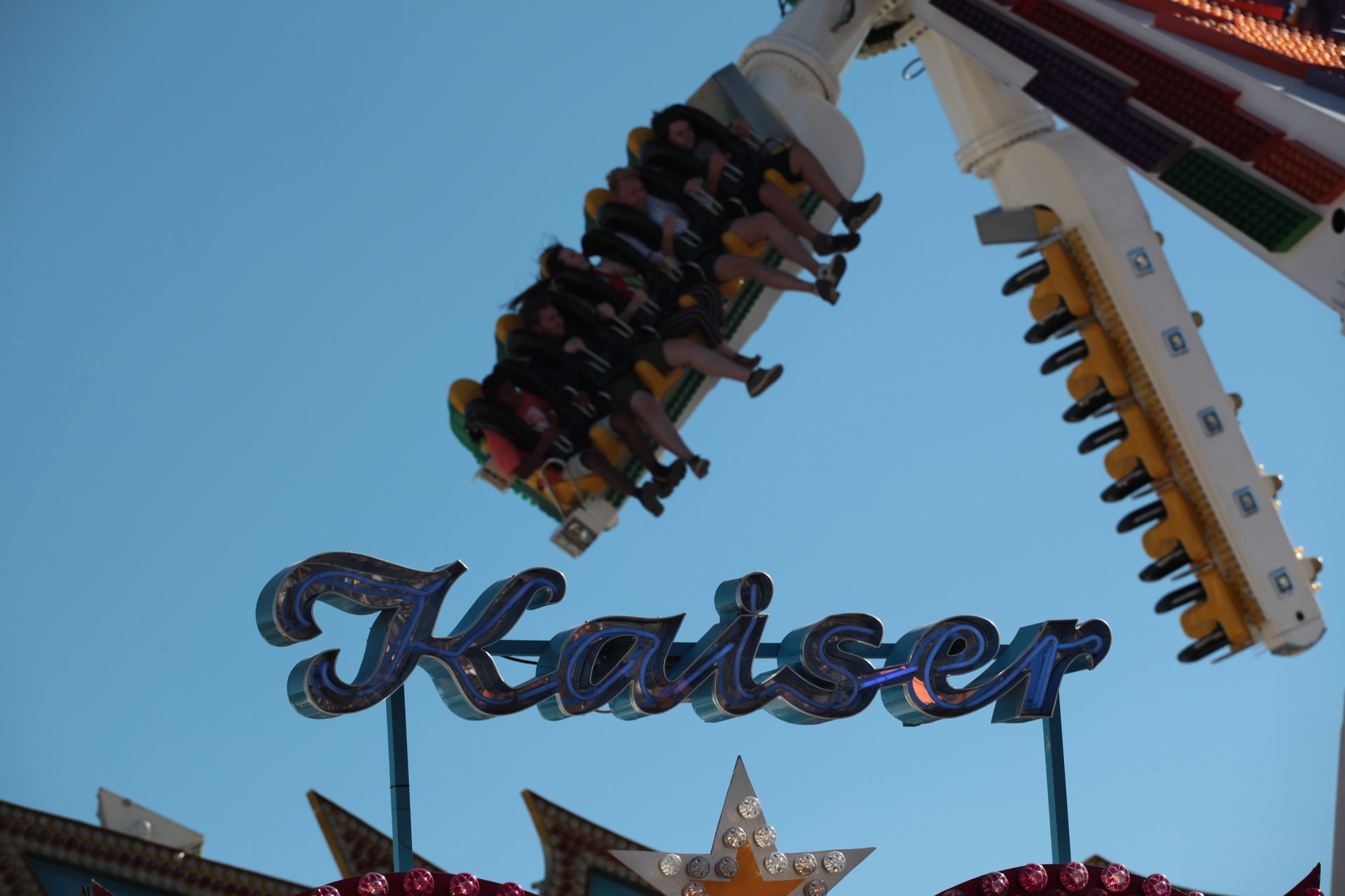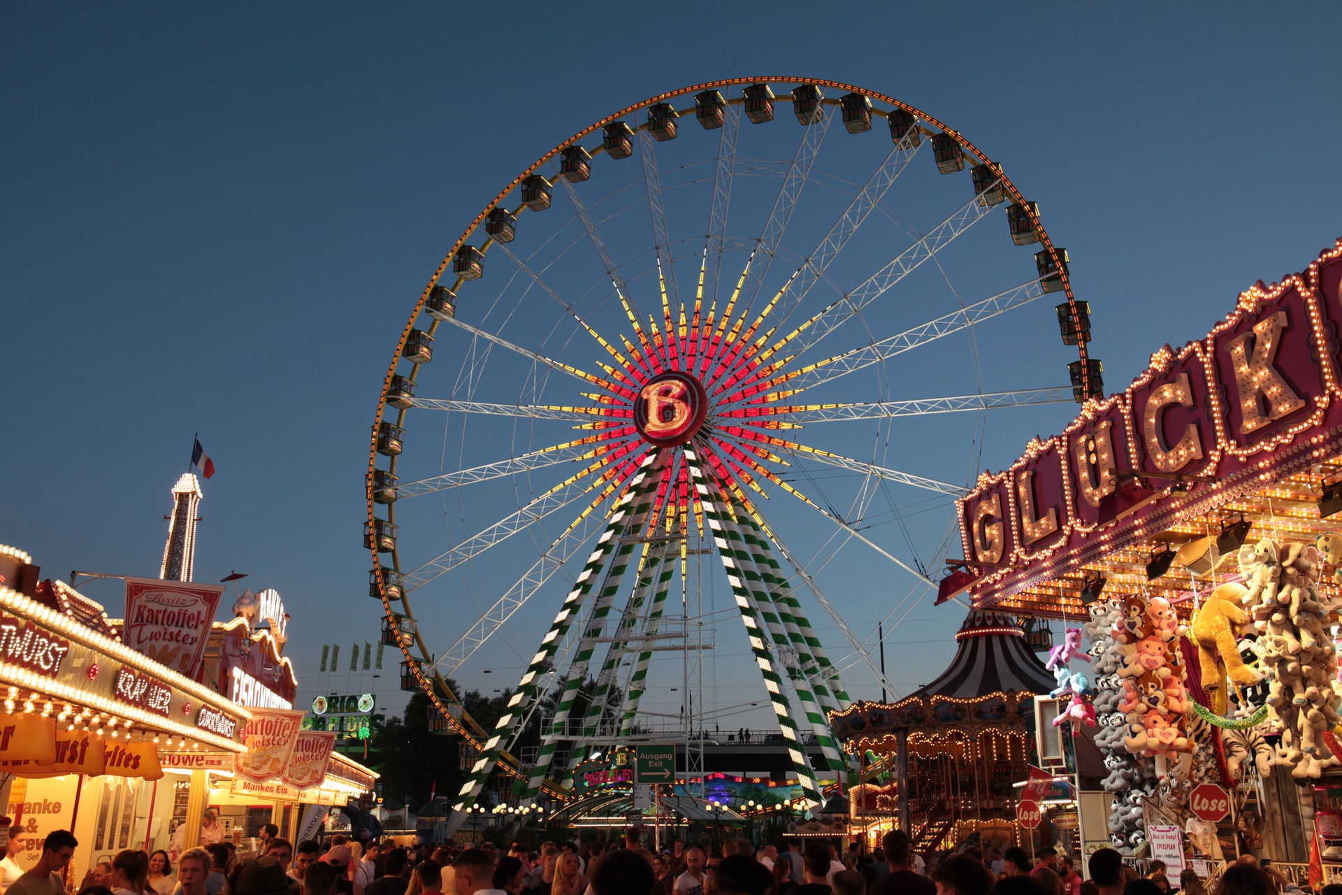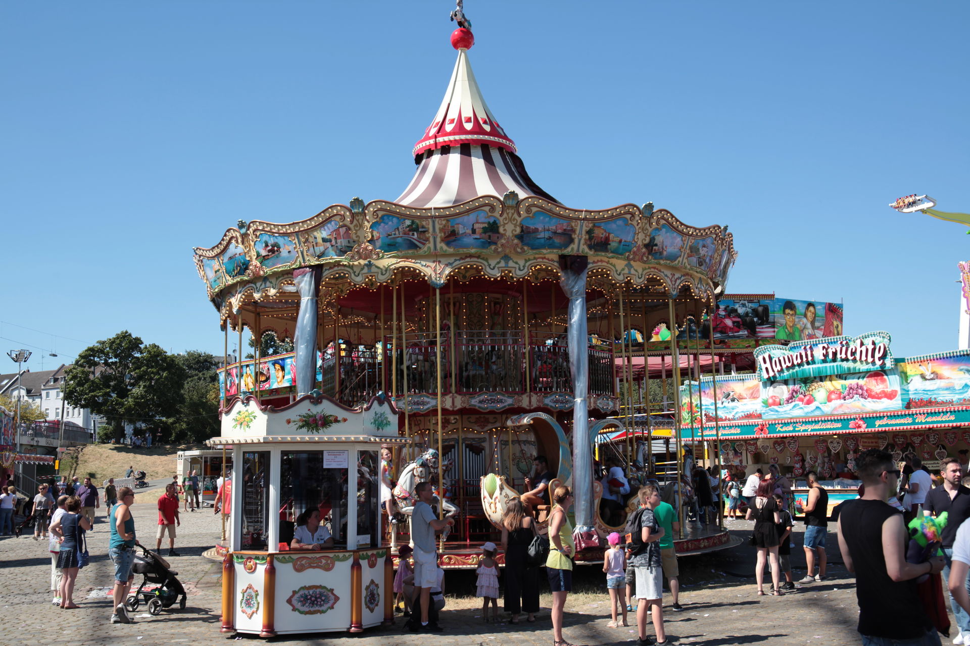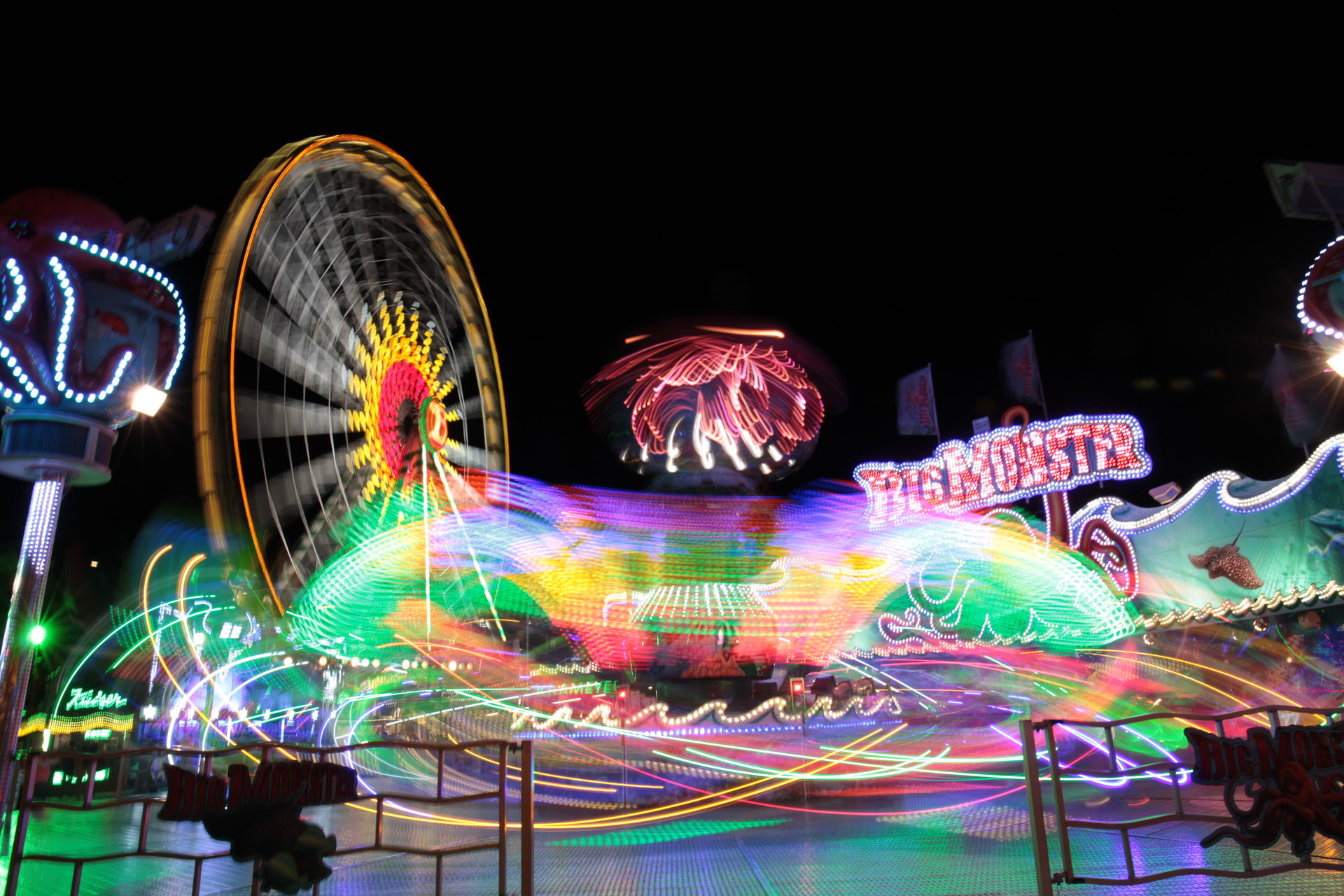 Dementsprechend ist das ganze auch Chronologisch sortiert, vom Nachmittag bis in die Nacht, nur unterbrochen durch einige Cool-Down-Phasen in der klimatisierten Kasse eines Rundfahrgeschäfts. Der Sonntag war - von wegen Ausnahmen - für die meisten Betreiber eine ziemliche Katastrophe. Es war heiß, stickig, WM-Finale und viele Besucher hatten nicht so viel Lust ein paar Euro in Fahrgeschäfte zu investieren.