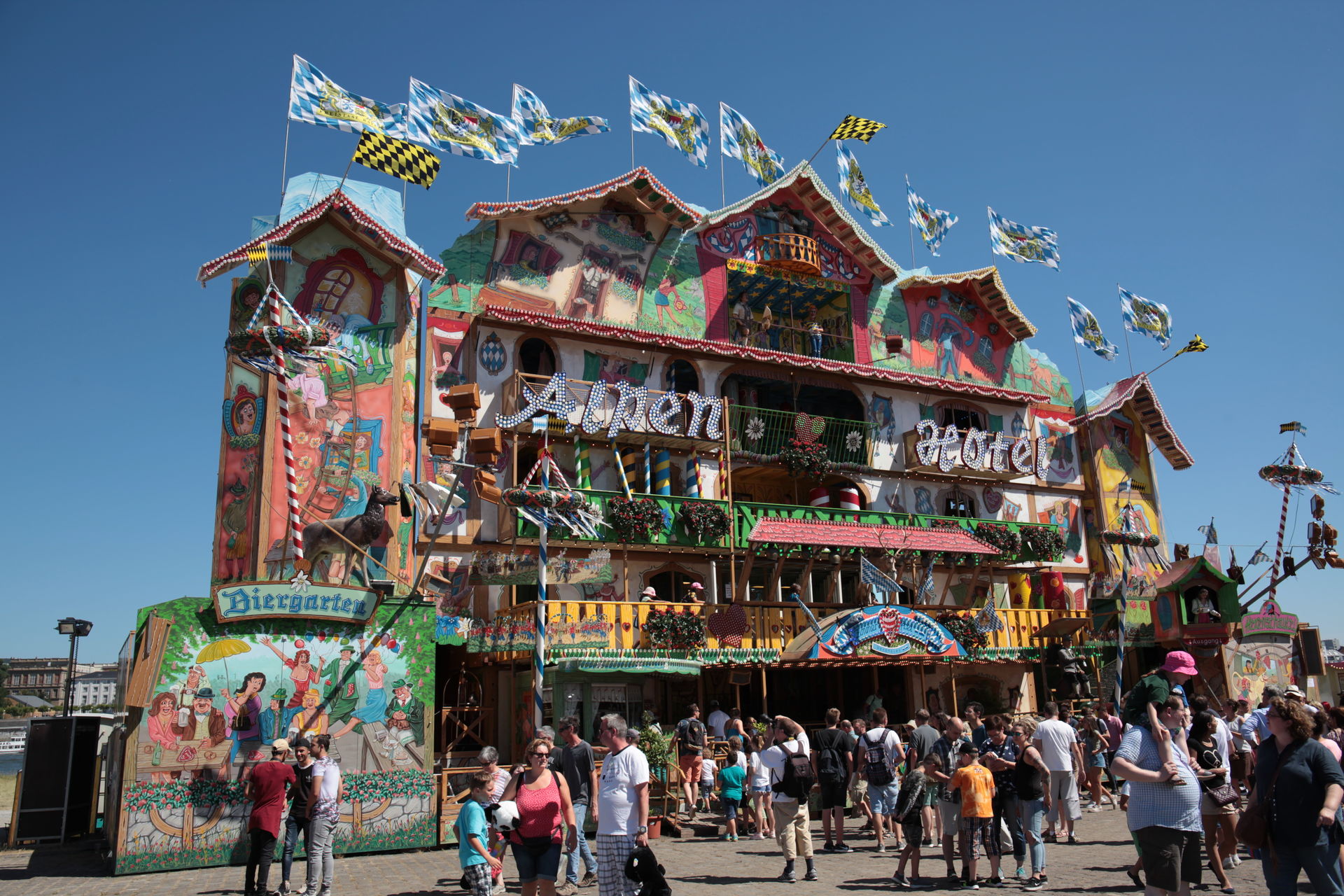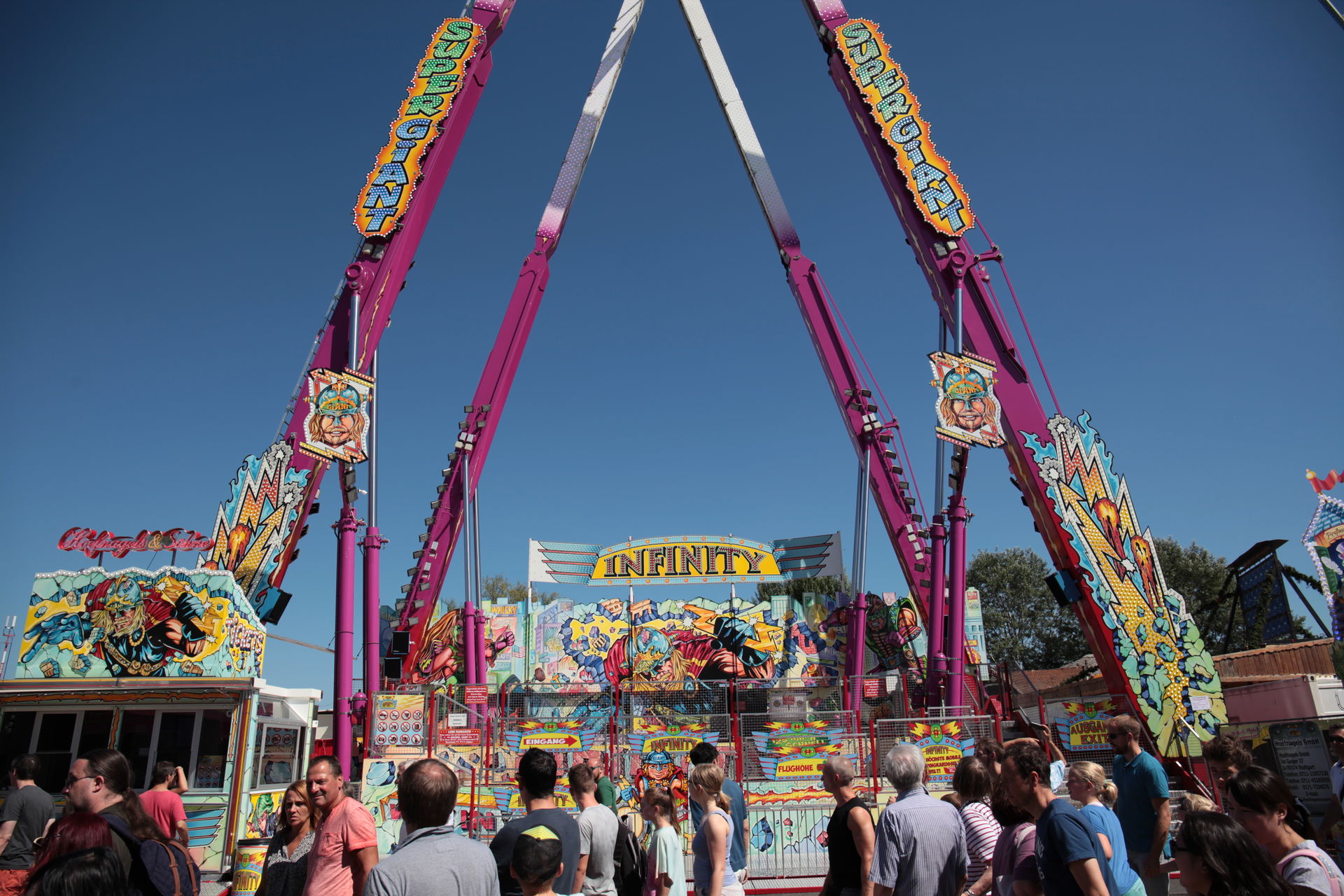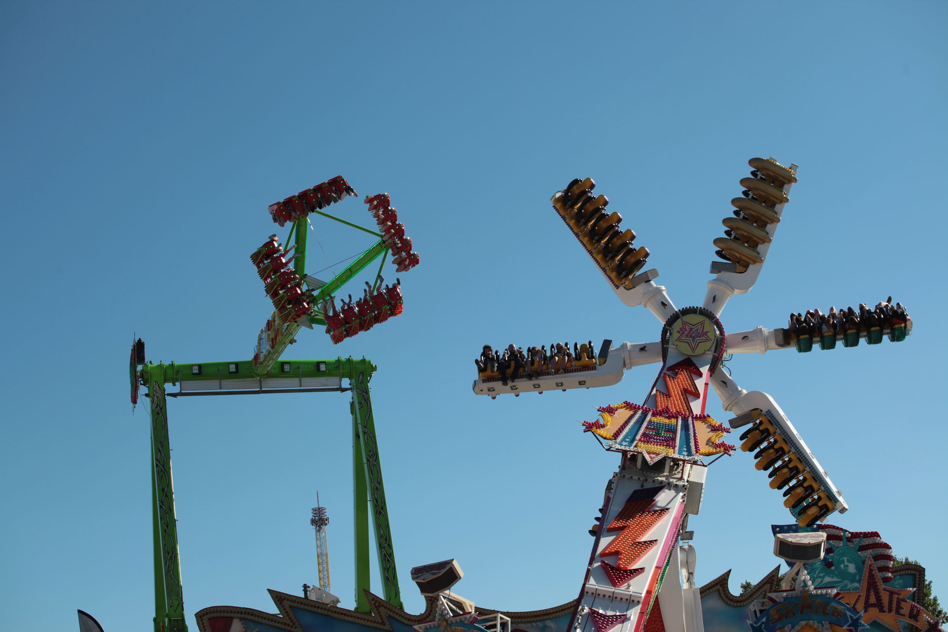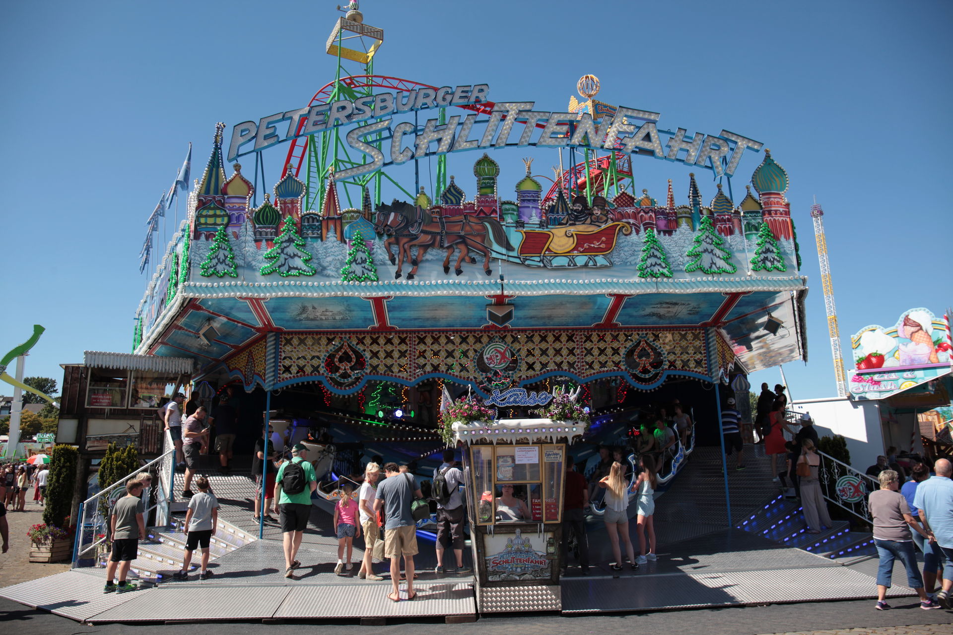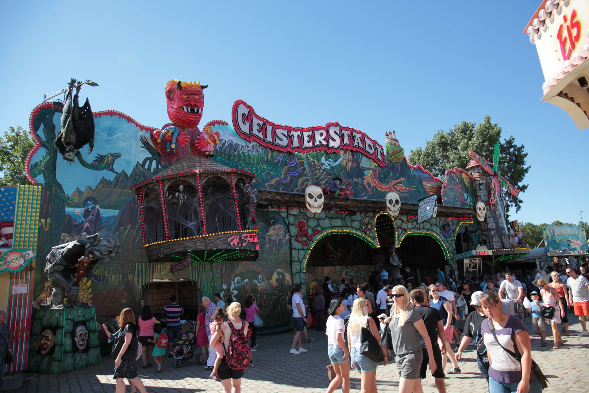 Dementsprechend ist das ganze auch Chronologisch sortiert, vom Nachmittag bis in die Nacht, nur unterbrochen durch einige Cool-Down-Phasen in der klimatisierten Kasse eines Rundfahrgeschäfts. Der Sonntag war - von wegen Ausnahmen - für die meisten Betreiber eine ziemliche Katastrophe. Es war heiß, stickig, WM-Finale und viele Besucher hatten nicht so viel Lust ein paar Euro in Fahrgeschäfte zu investieren.