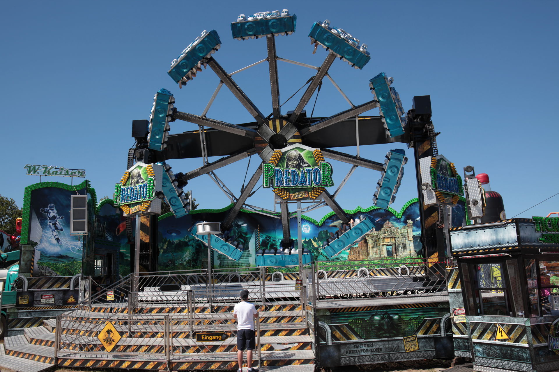 Fies getroffen hat es auch den Breaker von Kinzler. Man musste versetzt aufbauen, so dass man vom Rundlauf aus quasi nur die Hinteransicht der Rückwand sieht. Schön ist anders, für Besucher und Betreiber.