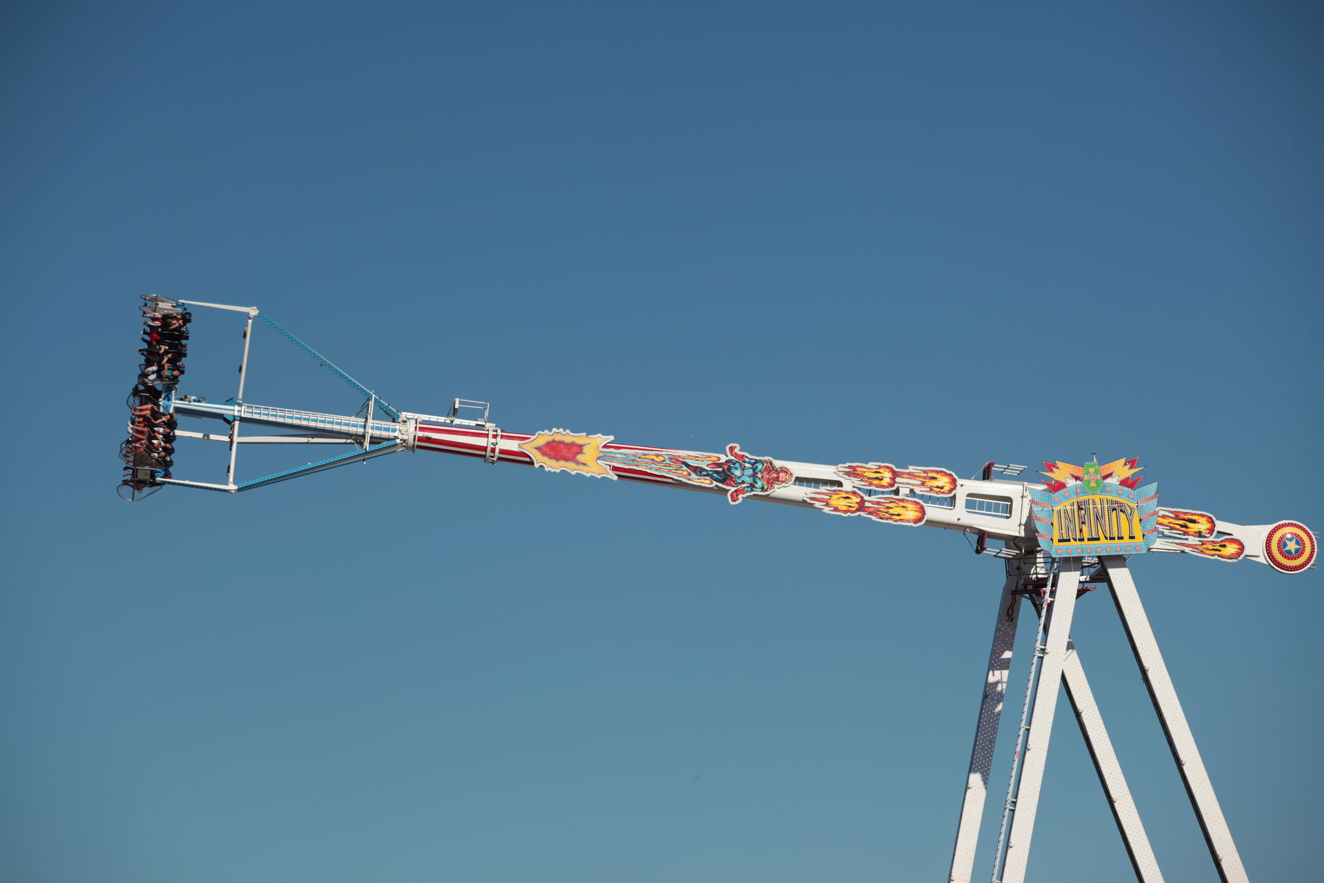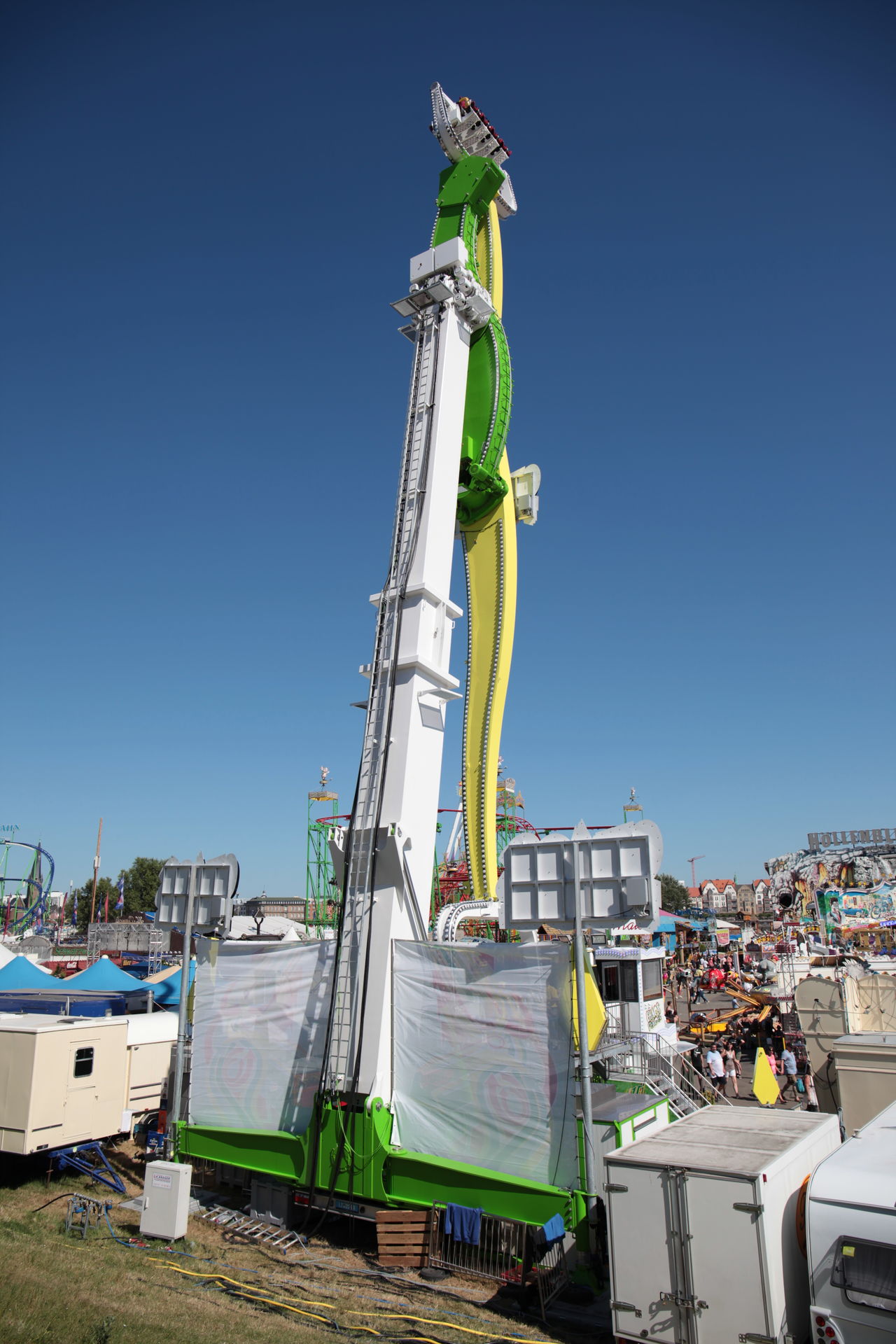 Dazu kommt - ganz allgemein - das die Auswahl der Fahrgeschäfte und auch die Positionierung nicht so richtig gelungen ist. Einer dieser Verlierer war zumindest der Propeller von Ordelmann, welcher auf dem klassischen Laufgeschäftsplatz auf der Deichseite oft unbeachtet blieb und Sonntags am frühen Abend auch gerne mal für eine Person gefahren ist. Und das man mit dem Infinity ein Geschäft hatte was vom Fahrablauf optisch ähnlich ist, naja, tut nicht Not. Überhaupt ist die Auswahl an Hochfahrgeschäften groß, vielleicht etwas zuviel, besonders mit Überschlag.