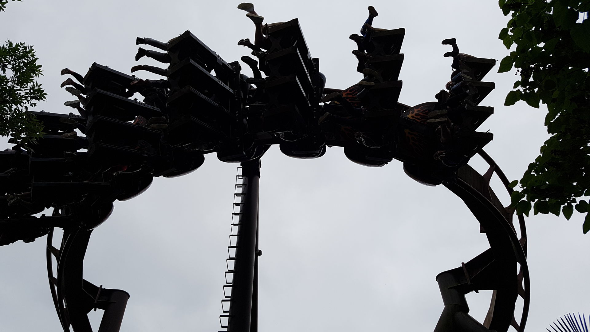 Nemesis Inferno sind Flo und ich in 2009 als allererstes gefahren und auch nur ein Mal, da es ziemlich voll war. Ich hatte nach 4 Amerika-Besuchen mit diversen Batmans und anderen Invertern und unzähligen Fahrten auf der Black Mamba inzwischen keinen Dunst mehr, wie diese Bahn damals war. Außer, dass sie weltweit der einzige