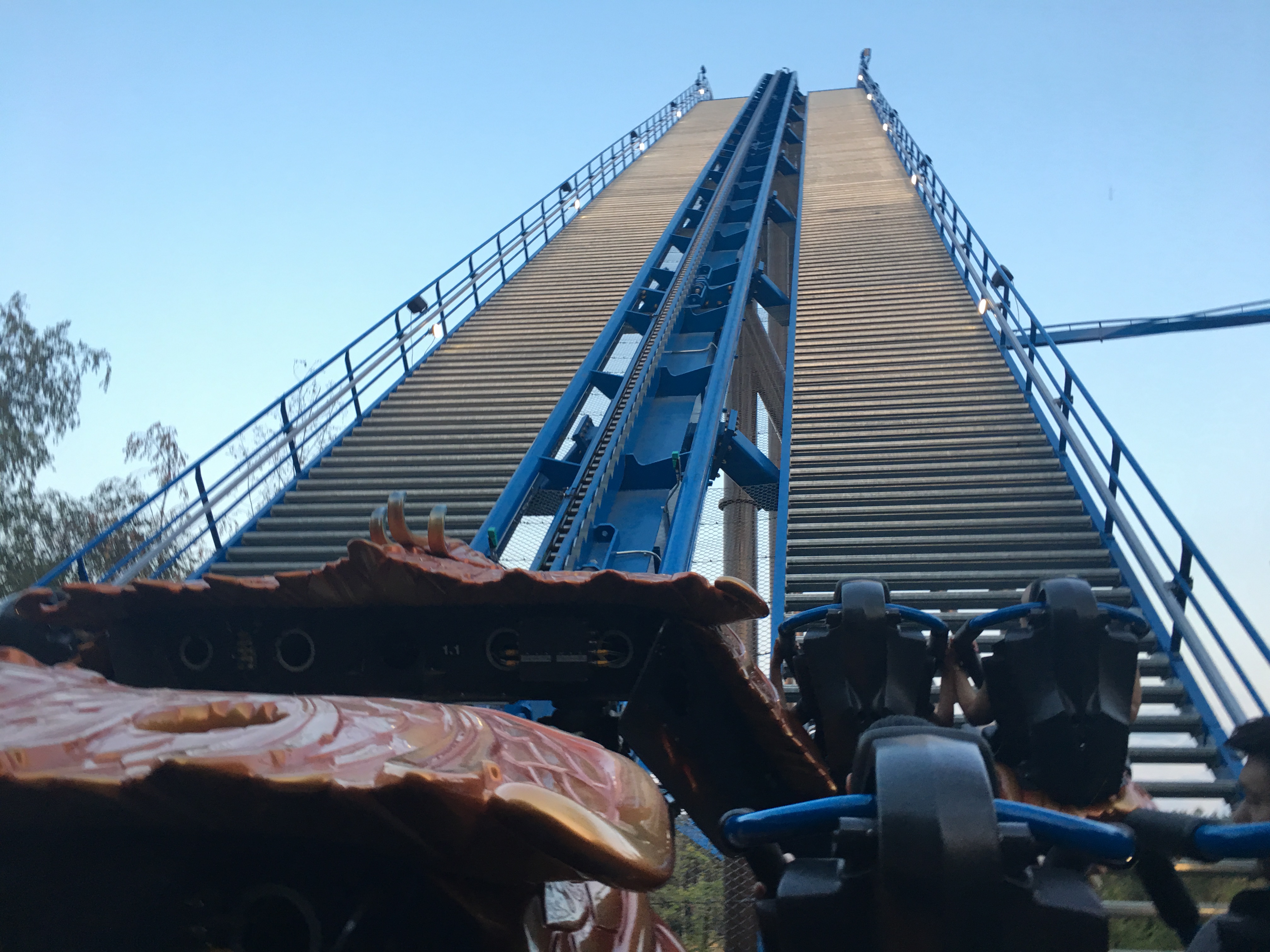 Gegen 21 Uhr passiert es dann: Auch wir kommen in den Genuss einer Abschaltung bei Fenix. Zum Beginn der Auffahrt des Kettenliftes schaltet sich die Anlage sicherheitshalber ab. Also Handy raus und Selfie-Time auf dem Lifthill.