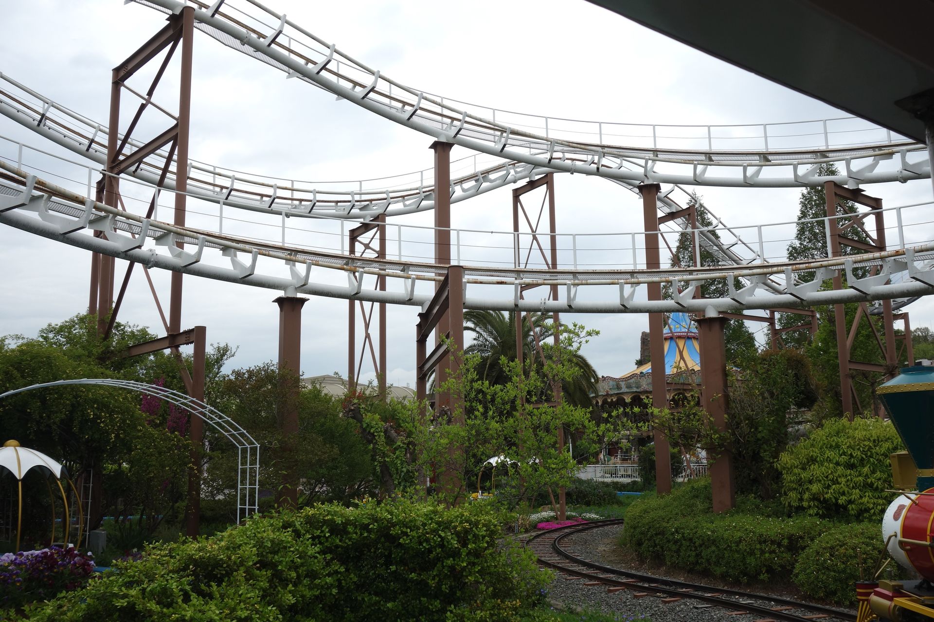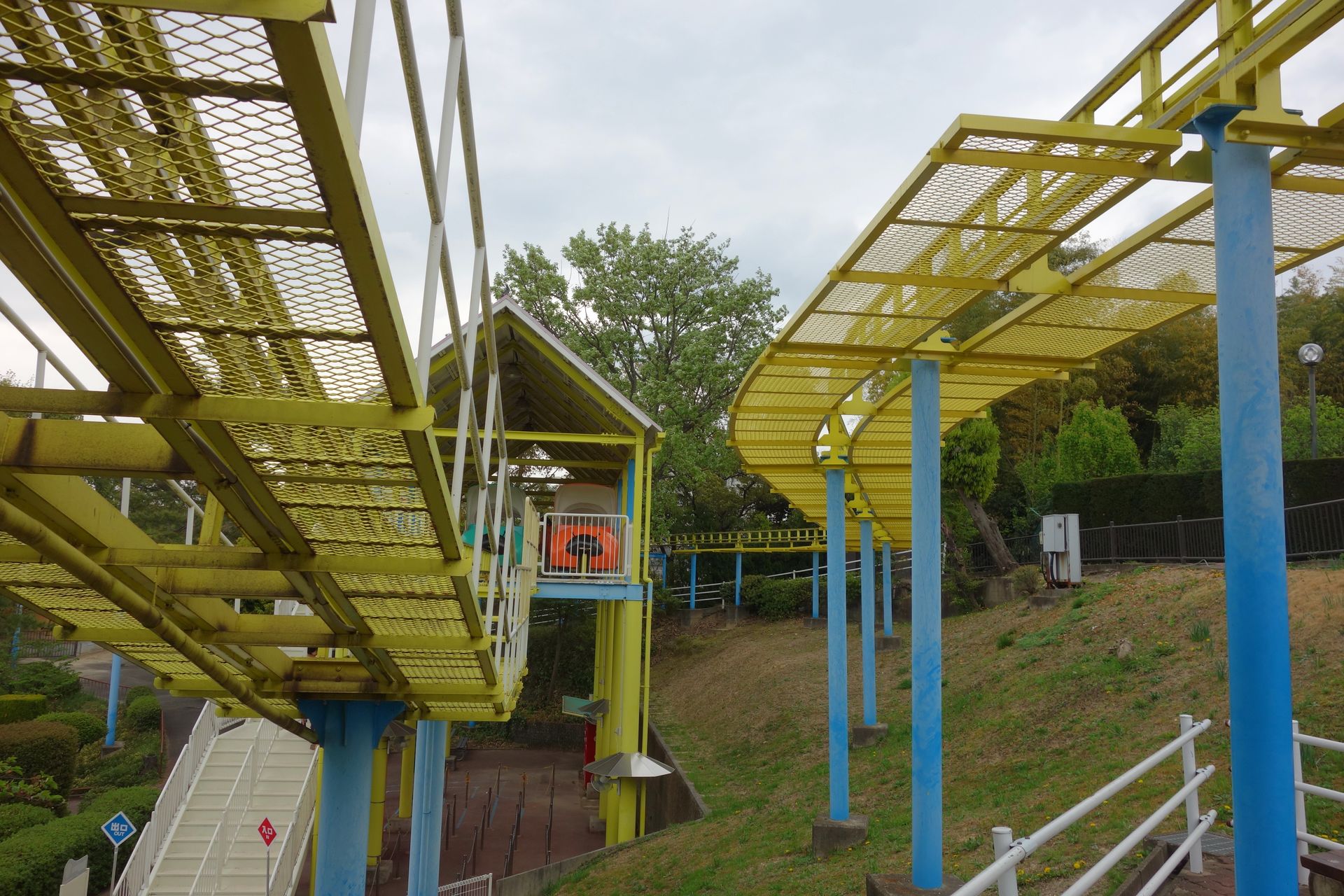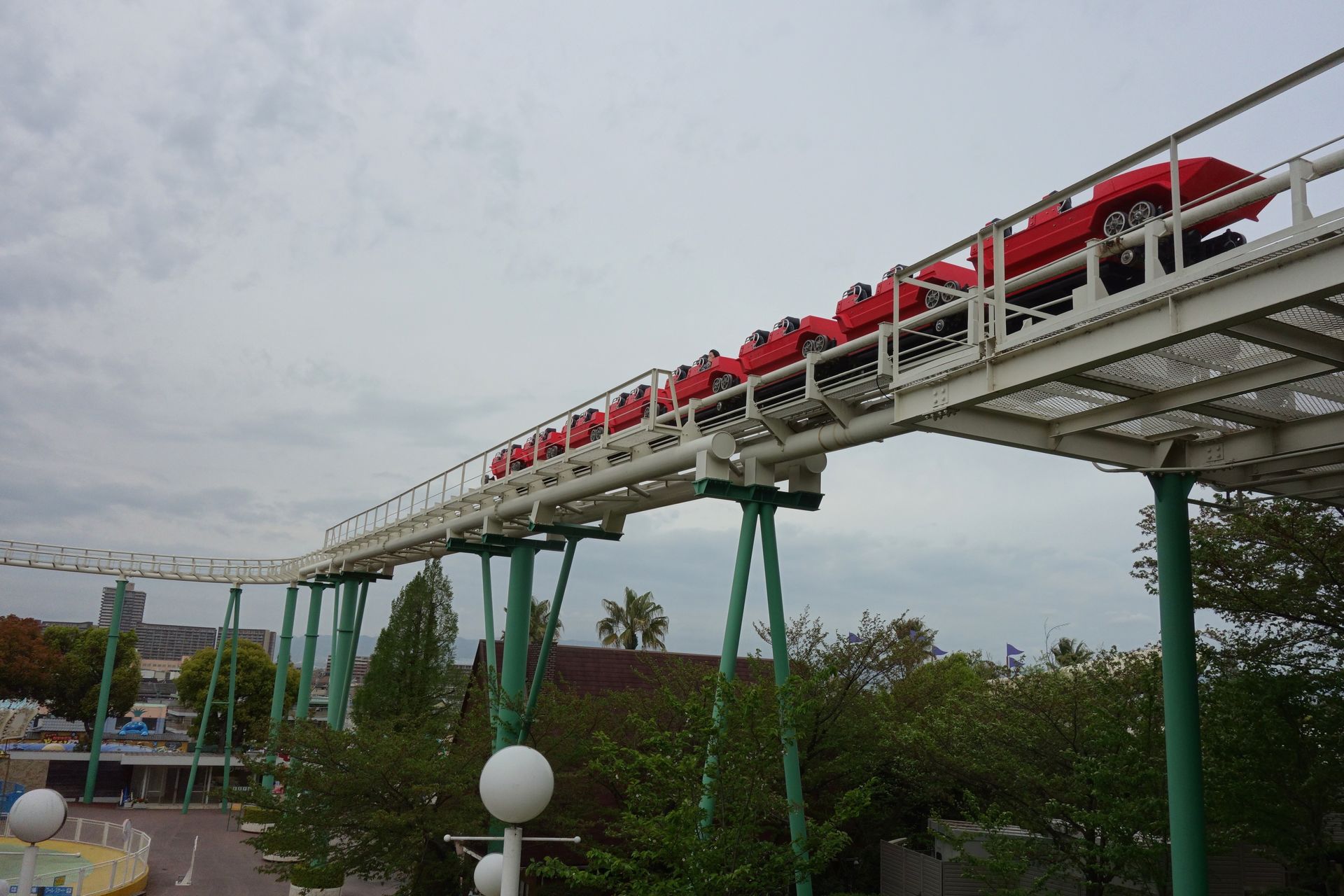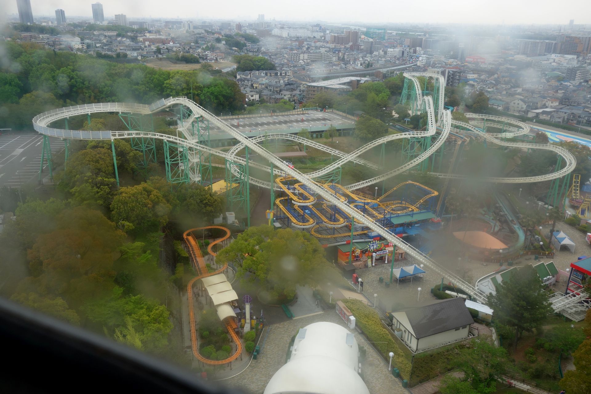 Dieser wurde ebenfalls von Senyo Kogyo erbaut, ist aber mit (von rcdb vermuteter) Eröffnung 2003 die jüngste Achterbahn im Hirakata Park. Ein Kind brauchten wir glücklicherweise nicht, der Origami-Faltkurs Klasse 1 reichte aus, damit wir uns in die Wägelchen hineinfalten konnten (ok, im Vergleich zu den hinteren Reihen des Red Falon war das Platzangebot hier doch schon fast üppig). Der Lifthill bugsierte uns mit aller ihm zur Verfügung stehender Kraft die paar Meter nach oben, dann ging es doch recht zügig durch die Kurven.