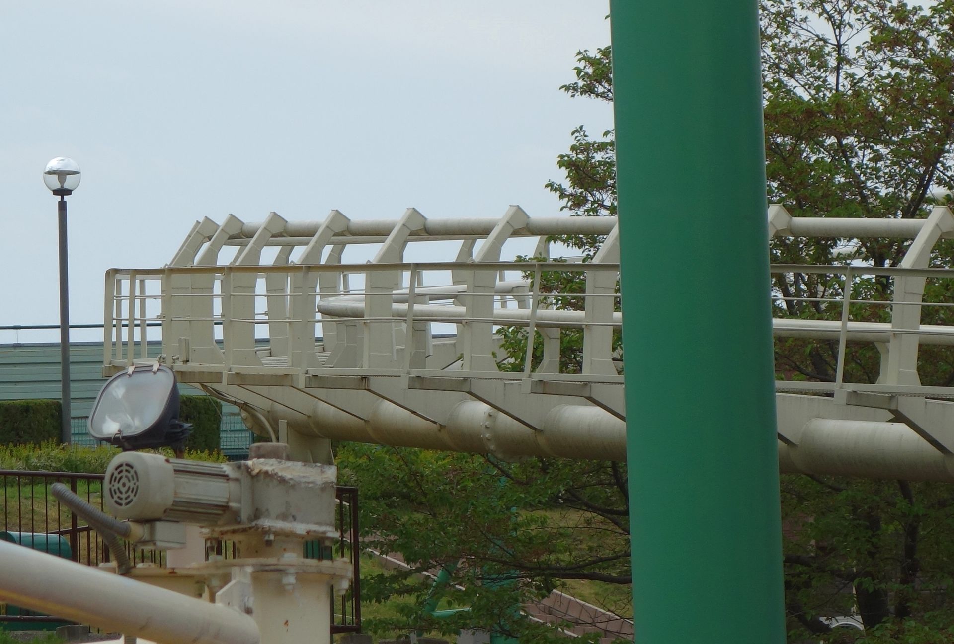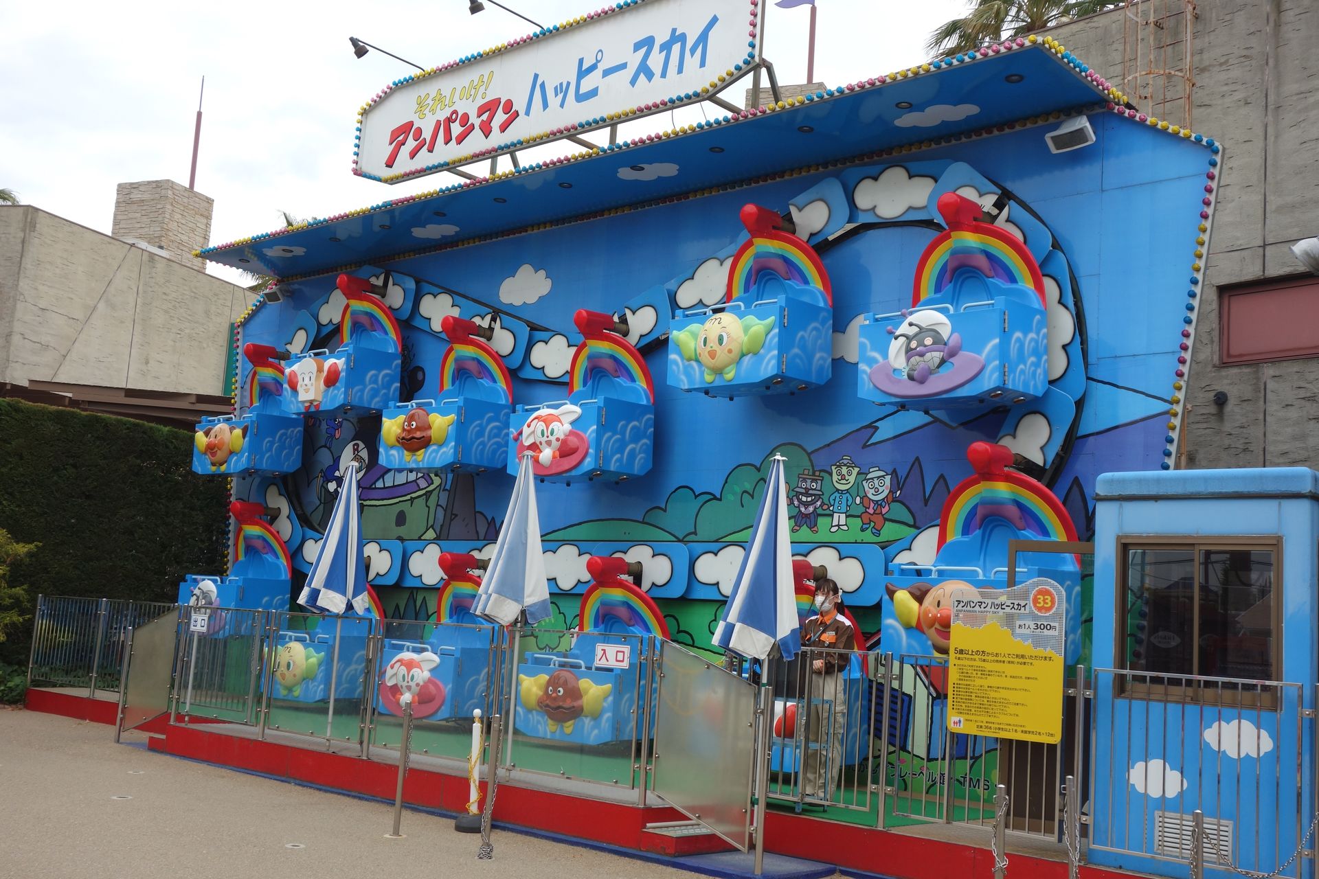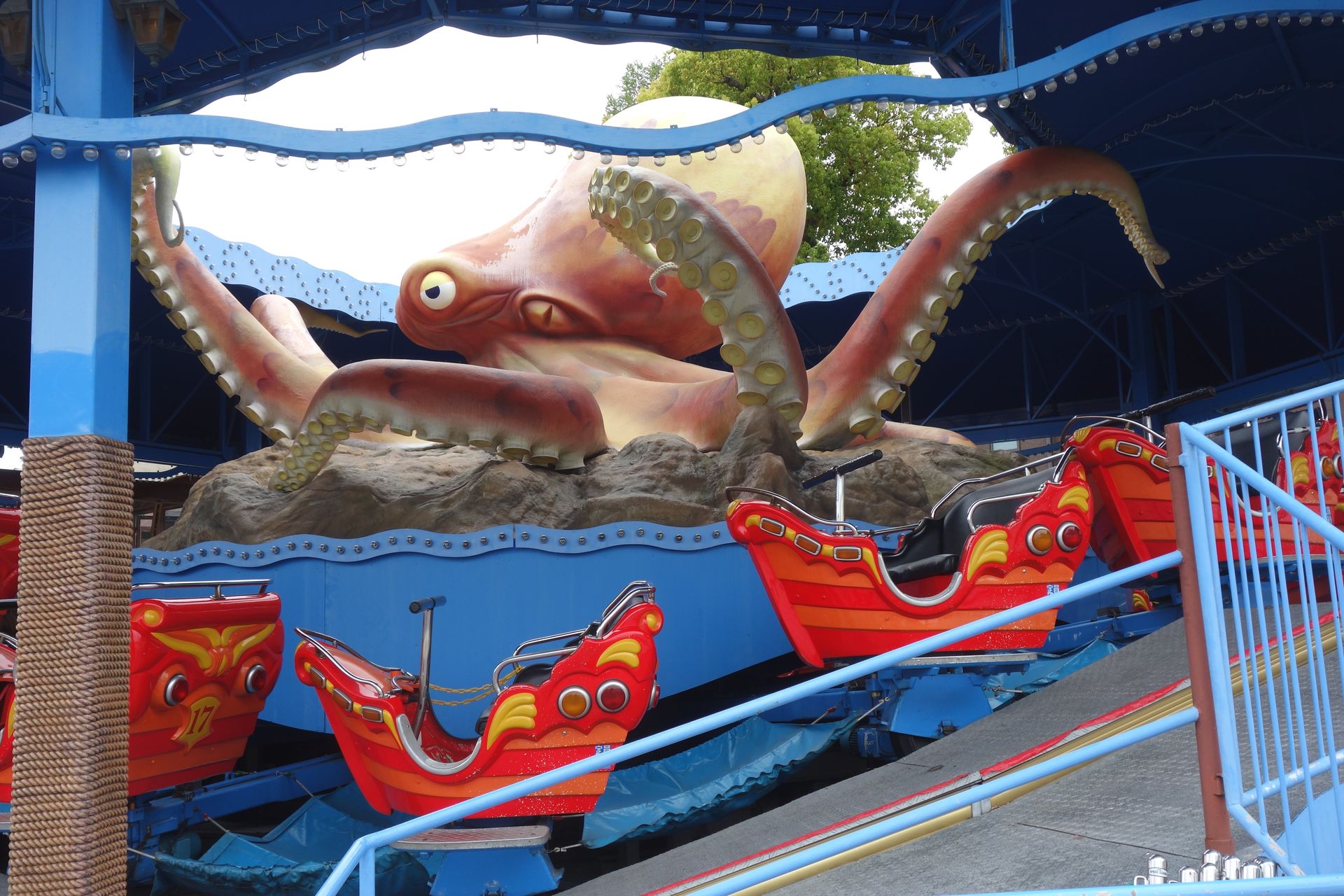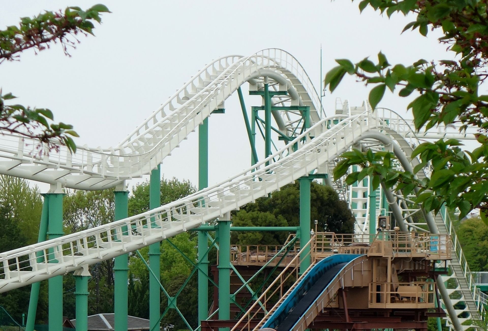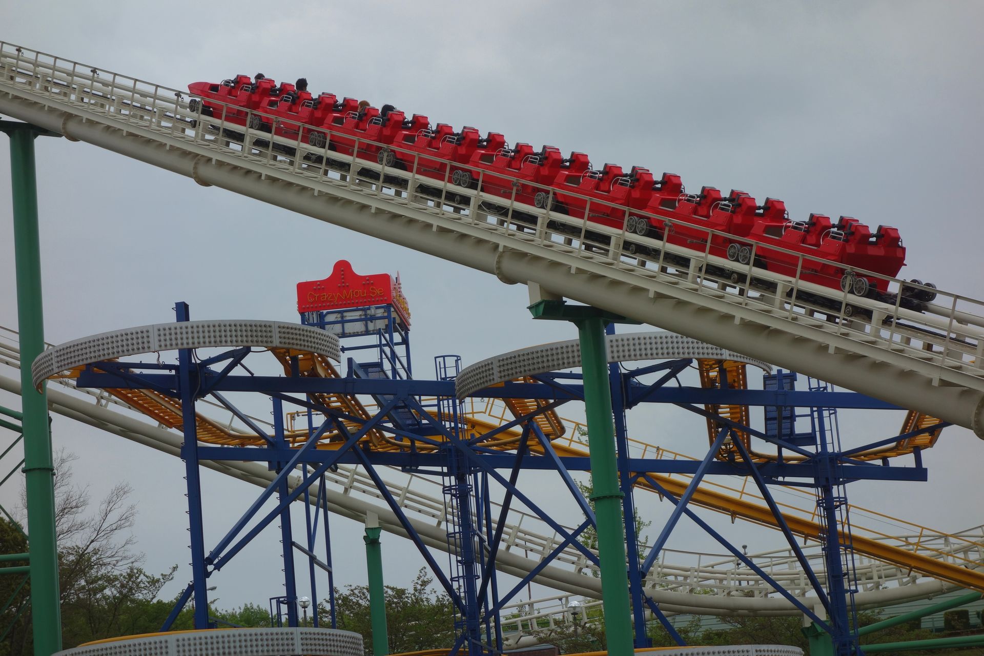 Dieser wurde ebenfalls von Senyo Kogyo erbaut, ist aber mit (von rcdb vermuteter) Eröffnung 2003 die jüngste Achterbahn im Hirakata Park. Ein Kind brauchten wir glücklicherweise nicht, der Origami-Faltkurs Klasse 1 reichte aus, damit wir uns in die Wägelchen hineinfalten konnten (ok, im Vergleich zu den hinteren Reihen des Red Falon war das Platzangebot hier doch schon fast üppig). Der Lifthill bugsierte uns mit aller ihm zur Verfügung stehender Kraft die paar Meter nach oben, dann ging es doch recht zügig durch die Kurven.