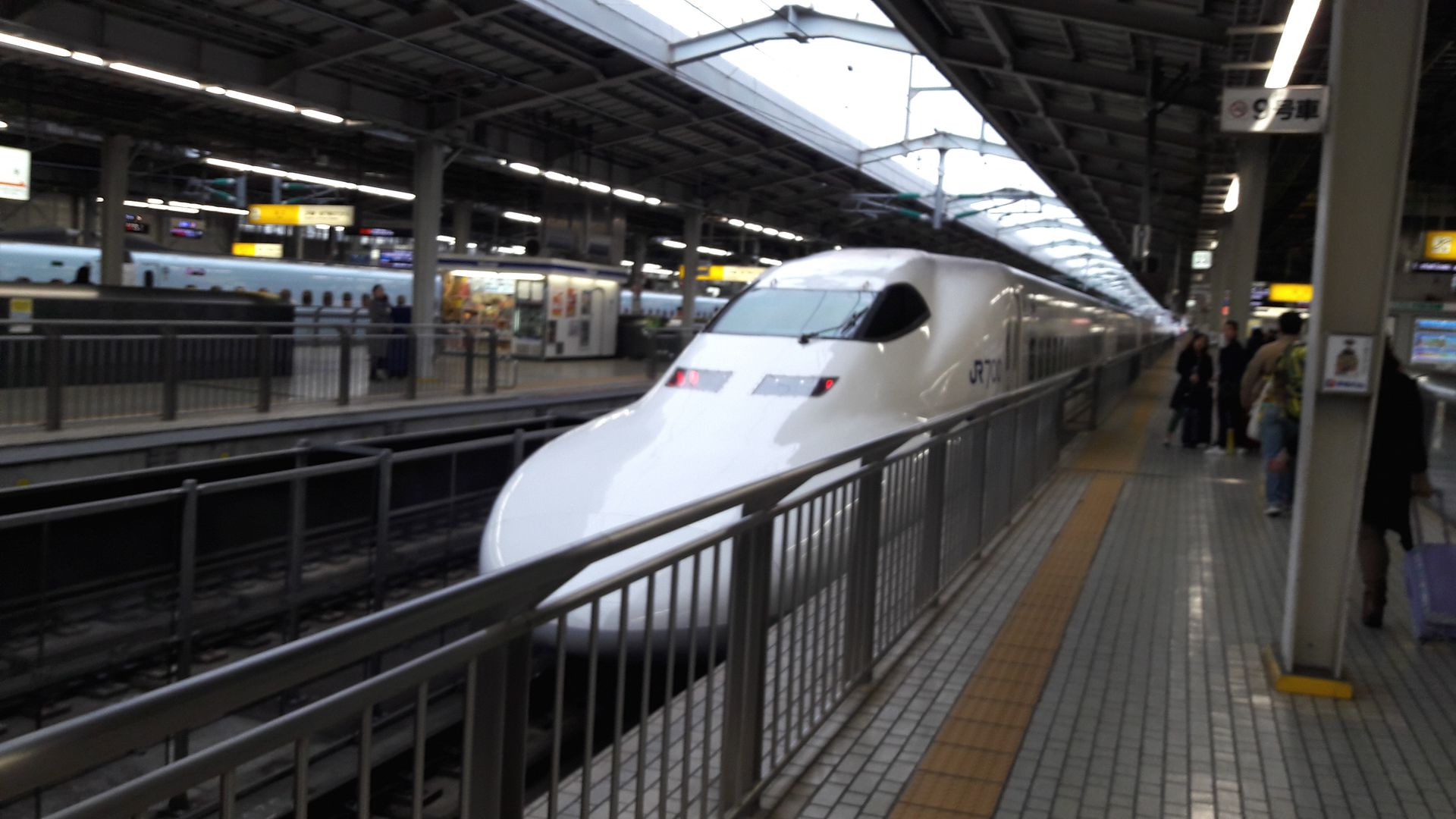 Loop Line. Nach ein paar Stationen merkte mico jedoch an, dass wir wohl die falsche Richtung erwischt hatten. Also zählten wir auf die Schnelle die Stationen ab (die Bahn fährt ja im Kreis, die Richtung war also letztlich nur eine Zeitfrage) und entschieden uns, an der nächsten Station in den Gegenzug umzusteigen. Ein letztes Mal mussten wir in der Osaka Station umsteigen, dann ging es von Shin-Osaka nochmal zum Hotel, um die Koffer abzuholen. Für die diversen Fahrten in Osaka wäre ein Hotel am anderen Bahnhof Osaka sicherlich praktischer gewesen, dann hätten wir uns zumindest einen Umstieg gespart. Aber der Aufenthalt hier war ja nicht von allzu langer Dauer. Dafür brauchten wir nun mit den Koffern nicht mehr Umsteigen, denn zur Weiterreise nutzten wir den Stolz der japanischen Eisenbahn, den Shinkansen. Und der fährt eben vom Bahnhof Shin-Osaka ab.