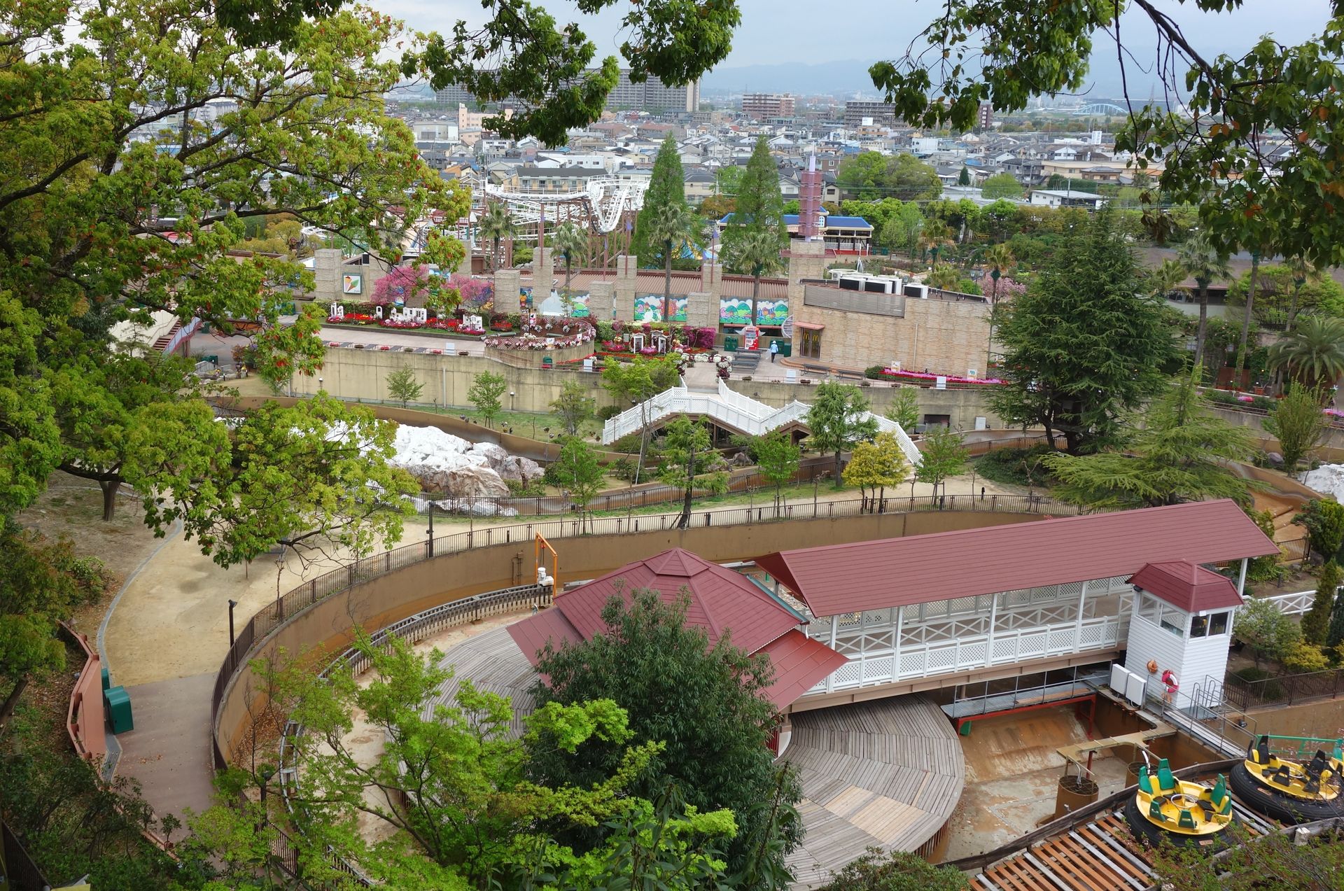 Der im nordöstlich von Osaka gelegenen Vorort Hirakata beheimatete Park wird nämlich ganz klassisch von den Betreibern der angrenzenden Bahnlinie betrieben, die zusammen mit dem Park im Jahre 1910 eröffnet wurde. Allerdings trug der Park damals den Namen Kaori Park und befand sich in Neyagawa. Dort fanden die beiden ersten "Kikuningyo-ten" statt, also Ausstellungen, bei denen mit Chrysanthemen verzierte Figuren und Szenen gezeigt wurden. Allerdings sollte das Gelände für ein neues Wohngebiet genutzt werden, weshalb die Ausstellung ab 1912 in Hirakata stattfand und damit den Grundstein für den heutigen Hirakata Park legte. Zu einem richtigen Freizeitpark wurde er allerdings erst 1926, als die ersten Fahrgeschäfte einzogen. Keihan bewirbt den Park zwar als ältesten in Japan, dieser Titel gebührt jedoch dem bereits 1853 eröffneten Hanayashiki. Der war allerdings im Zuge des Pazifikkrieges geräumt worden und erst 1949 neu aufgebaut worden. Der Hirakata Park ist dagegen wohl der älteste durchgehend geöffnete Park Japans und hatte 1952 vermutlich auch die zweite Achterbahn in Japan eröffnet. Die gibt es heute aber leider nicht mehr.