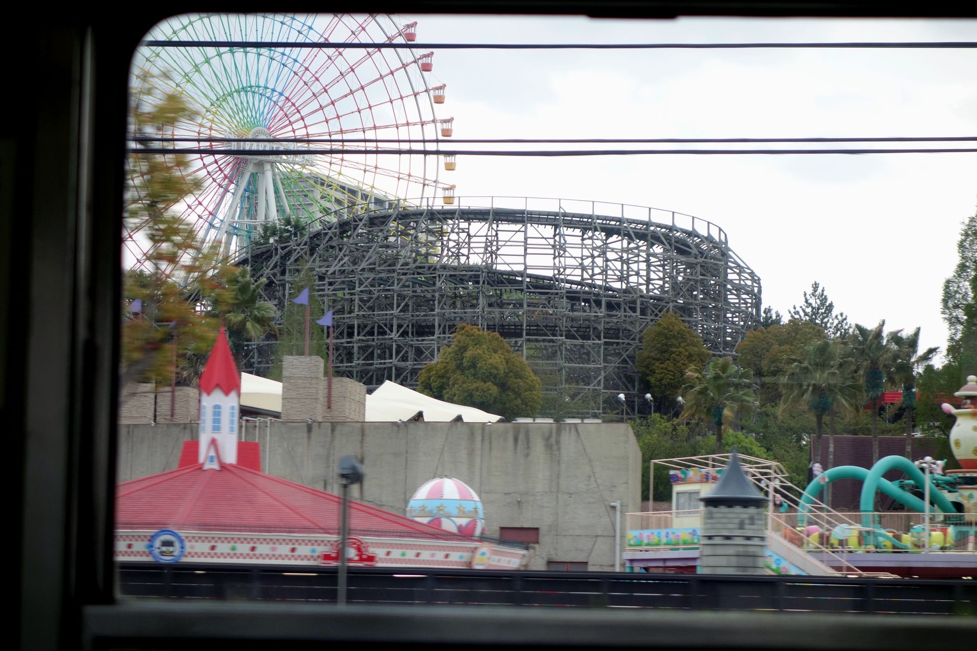 vom Ebisu Tower Ferris Wheel abgewimmelt worden waren, sollte uns der dritte Tag also endlich in den ersten original japanischen Park führen. Gleichzeitig war dies aber auch unser letzter Tag im Raum Osaka. Am Abend wollten wir in die nächste Stadt weiterreisen. Nach dem Frühstück checkten wir daher aus und gaben unsere Koffer ab, die solange in einem separaten Raum verwahrt wurden. Wir fuhren dann wie gewohnt zunächst wieder zum anderen Bahnhof Osaka und von dort zur Station Kyobashi. Dort wechselten wir nochmals zu Keihan Main Line, die uns bis zur Station Hirakata-koen brachte, wobei wir auch schon direkt am Park vorbeifuhren. Und damit hätten wir auch schon Ort und Betreiber des Parks kennengelernt.