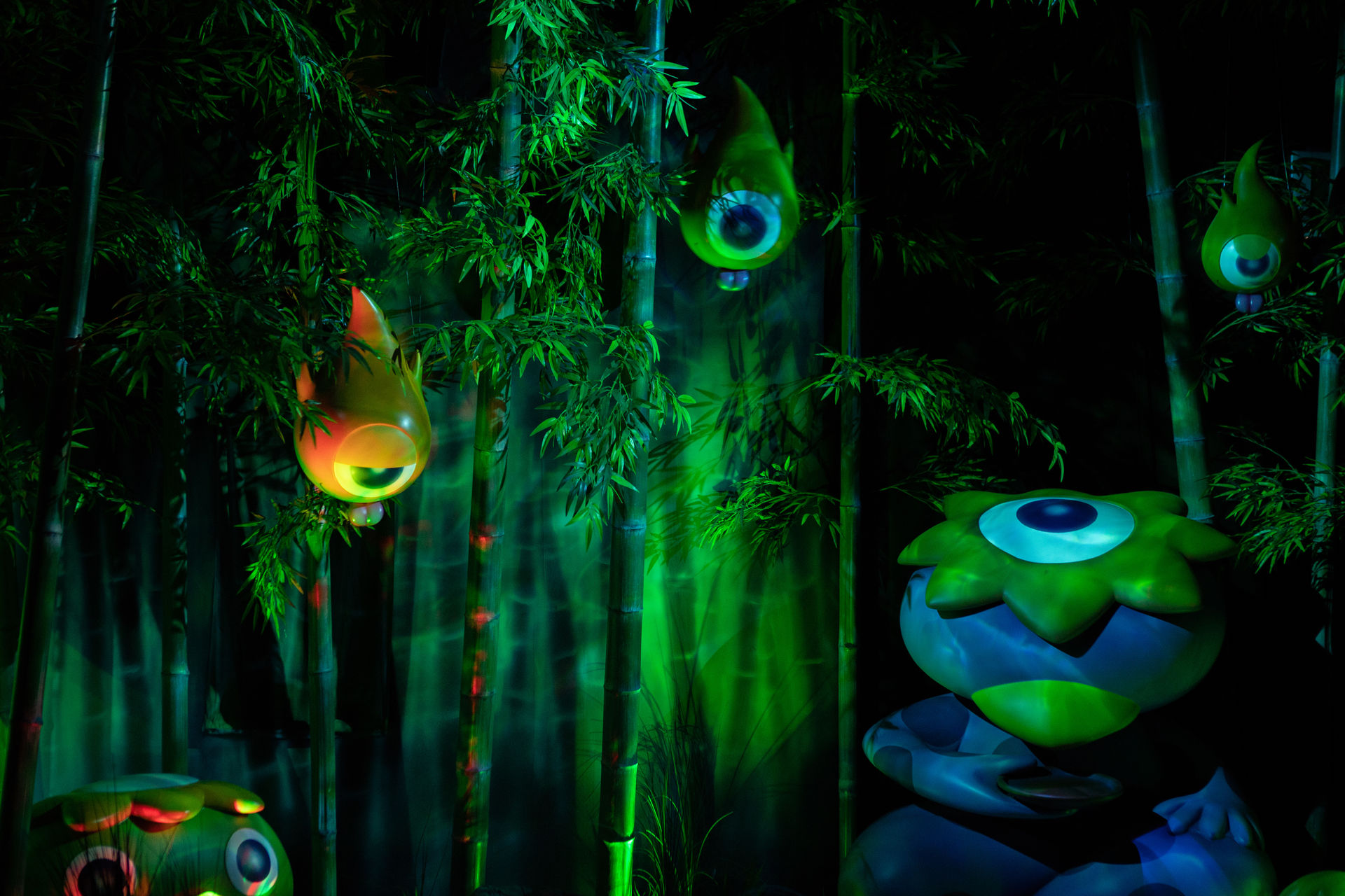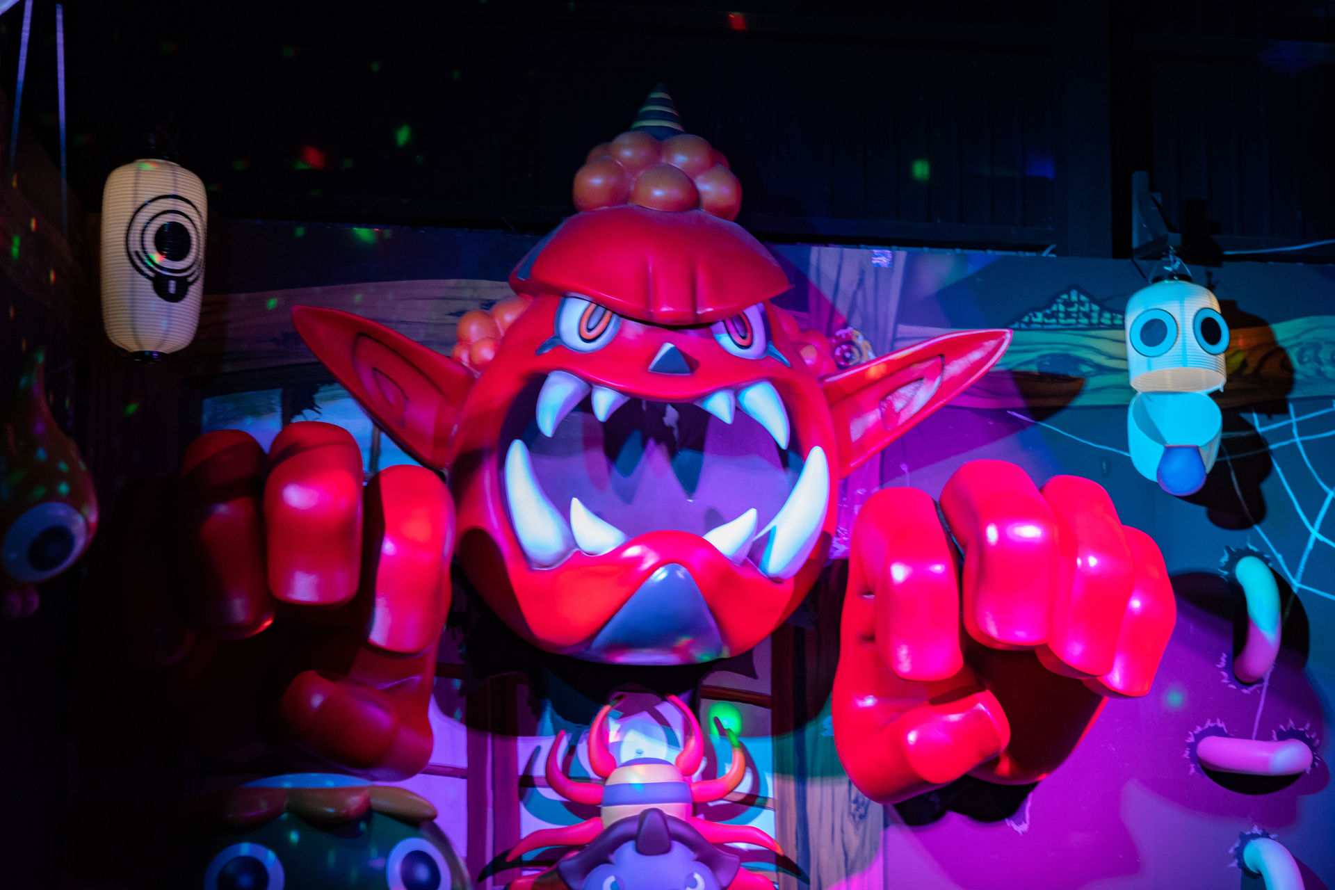 Eine Geisterbahn, bei der man mit Dororon Travel an allerlei seltsamen Figuren vorbeifährt. (© Alron)