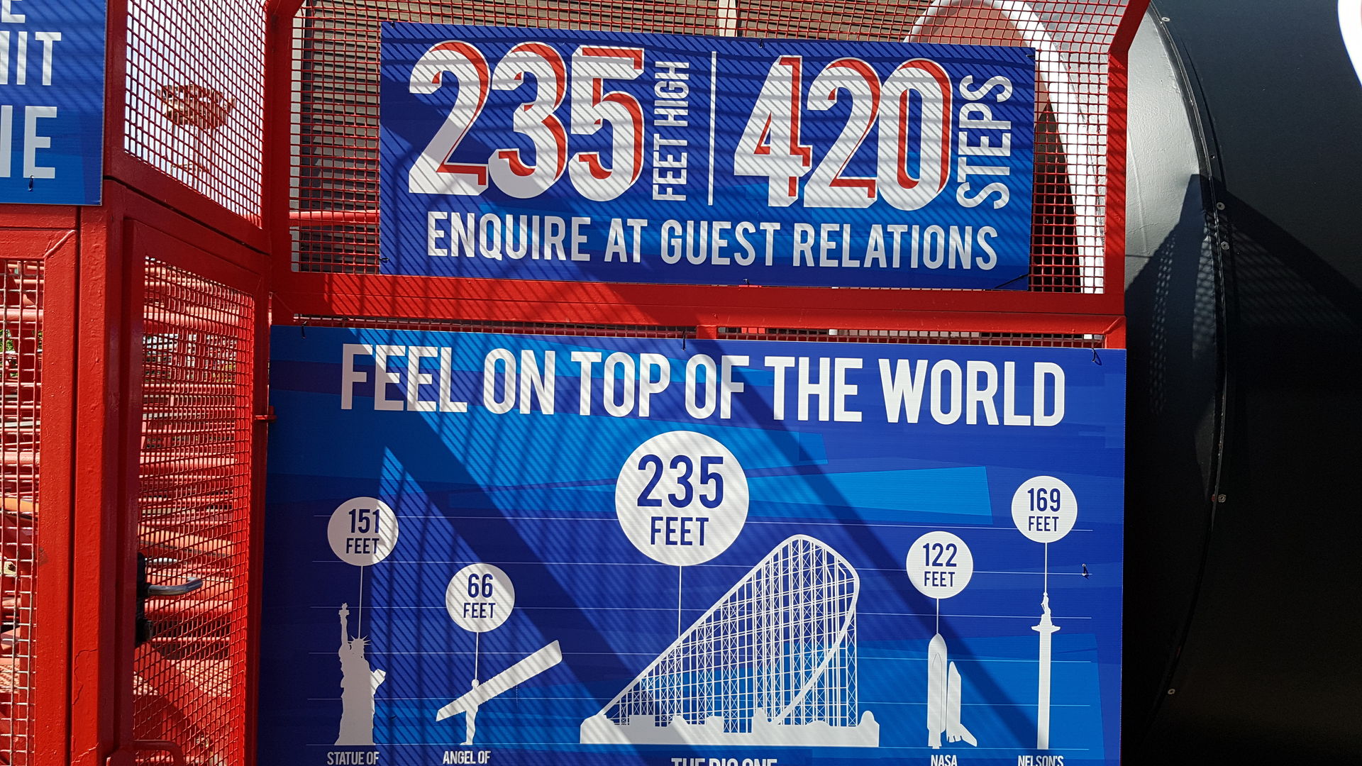 Am nächsten Tag sind wir noch gleich 2 Mal den Turm hoch gekraxelt (oben warten war leider nicht gestattet), um zunächst die Front Row als leider weniger Airtime-reich zu bewerten und dann nochmal den Airtime-Kick in der Last-Row einzufordern.