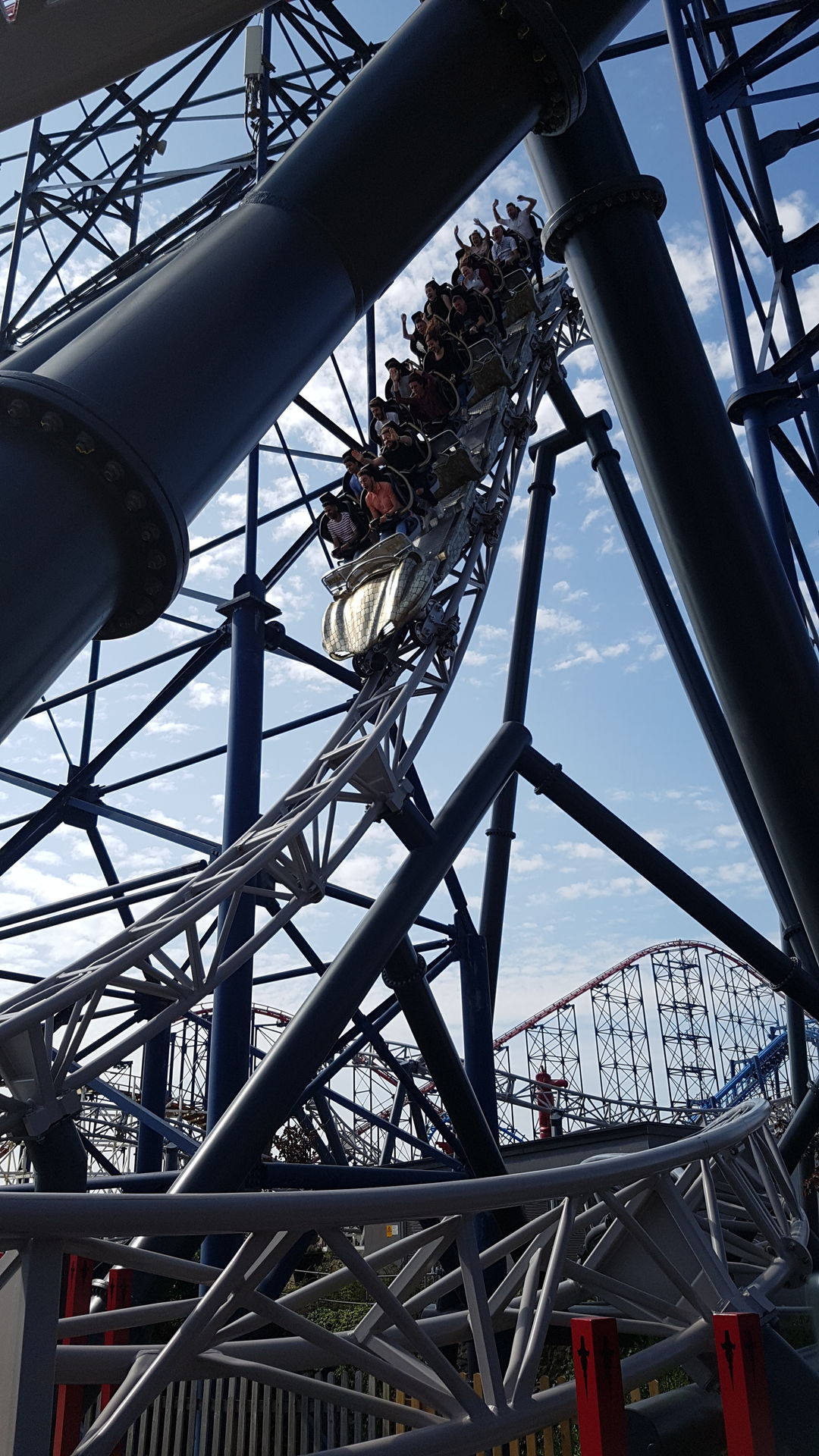 Nach guten 2 Stunden Fahrt erreichten wir nach unserer Stippvisite in Lightwater Valley also das Seebad Blackpool. Nach einer kurzen Parkplatz-Sucherei und dem Check-In ging es auch gleich die 2 Minuten Fußweg rüber zum Haupteingang des Parks, damit die restlichen knapp 2,5 Stunden auch gut genutzt werden. Schließlich ist hier eines der Count-Capitals of Europe! Ganze zwölf Bahnen gibt es hier zu fahren!